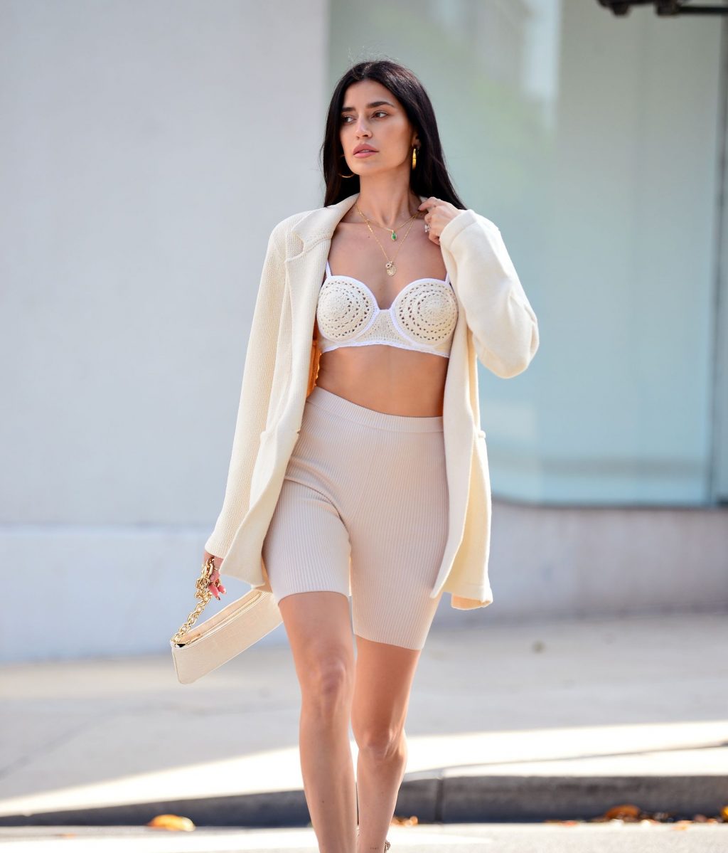 La star des WAGS aux longues jambes, Nicole Williams English, arrête la circulation lors d’une séance photo de mode street style à Beverly Hills, 21/05/2021.