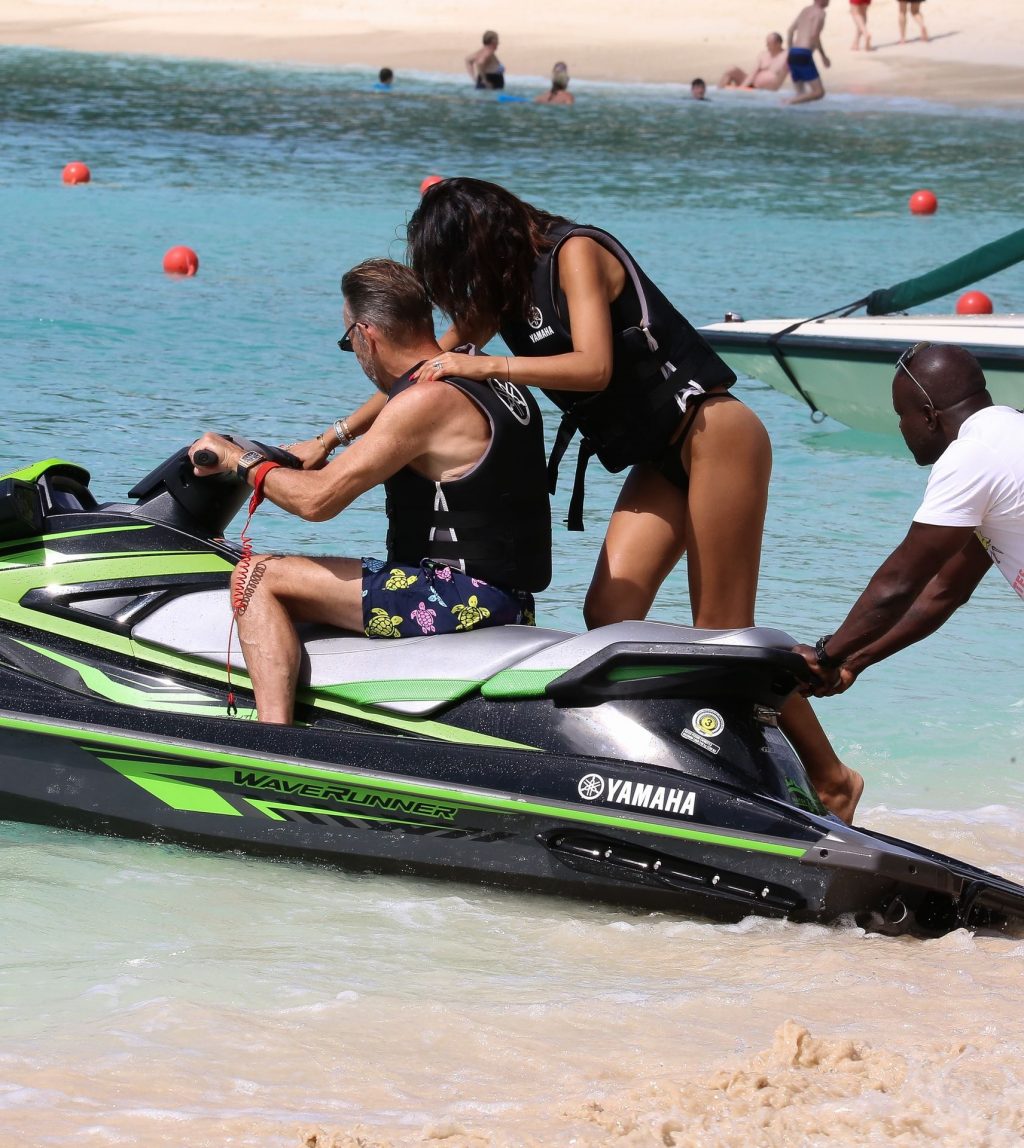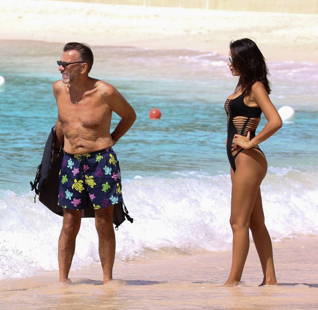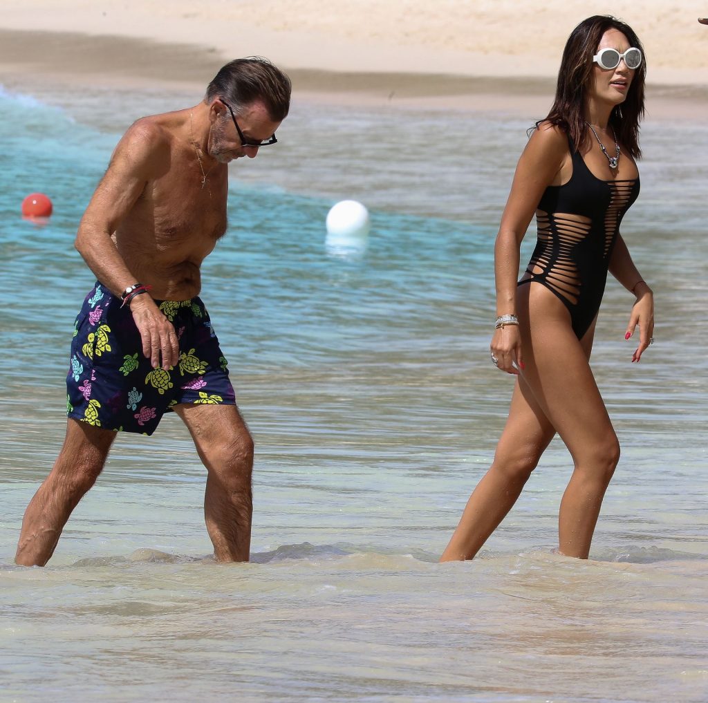 L’entrepreneur écossais Duncan Bannatyne et son épouse Nigora Bannatyne ont été photographiés en train de profiter de la plage à la Barbade, le 28/12/2019. Nigora a mis en valeur son corps magnifique en portant un maillot de bain une pièce noir avec des découpes intéressantes.