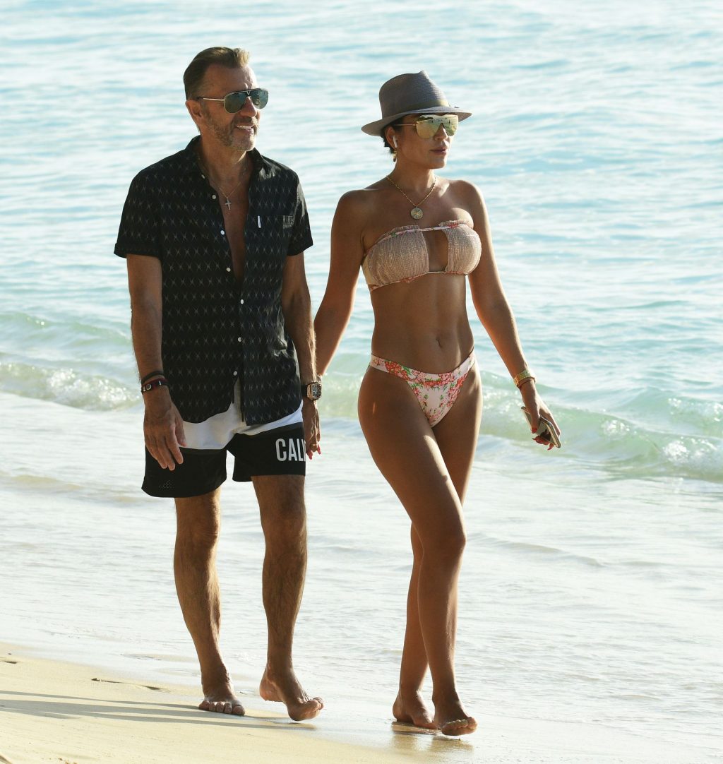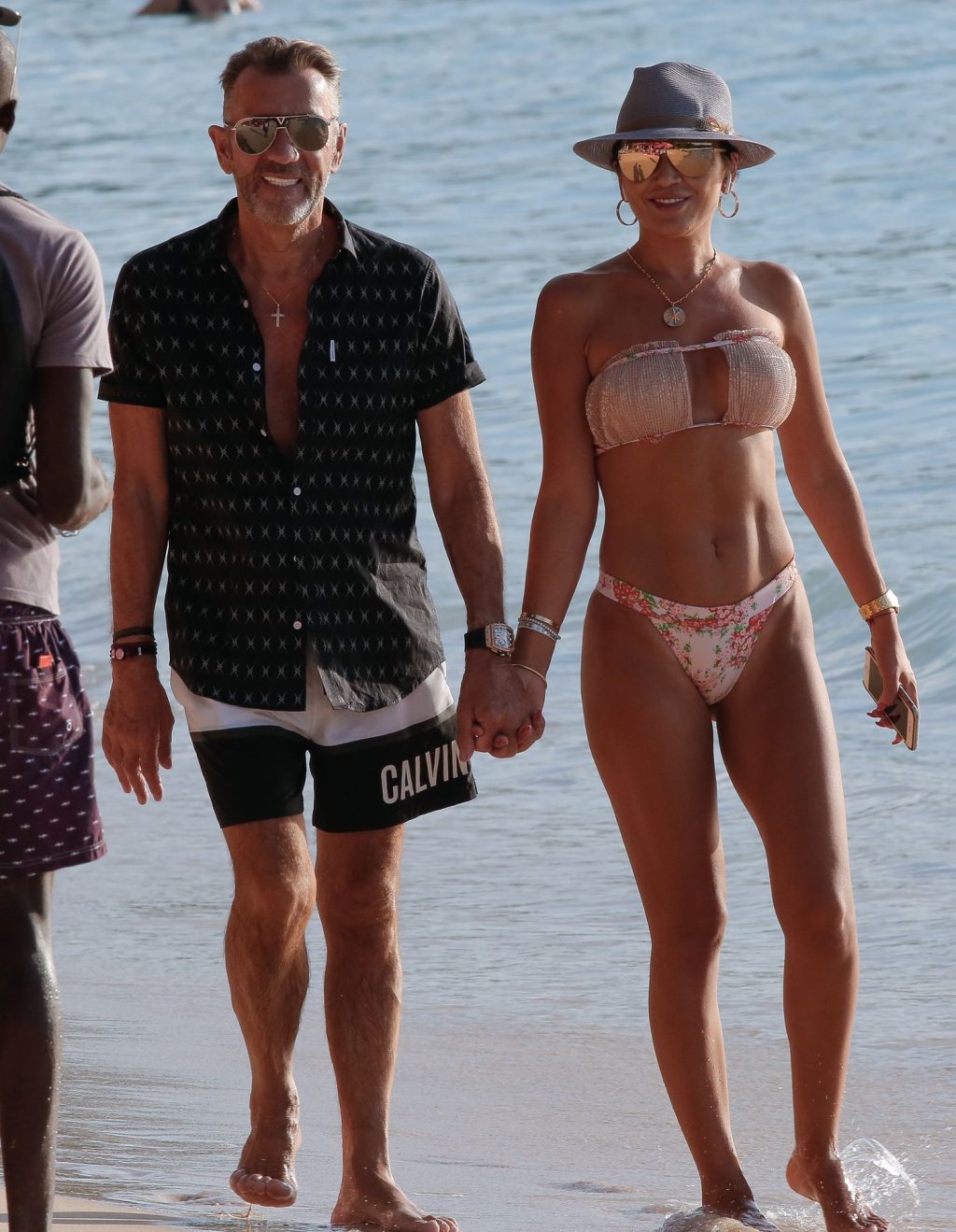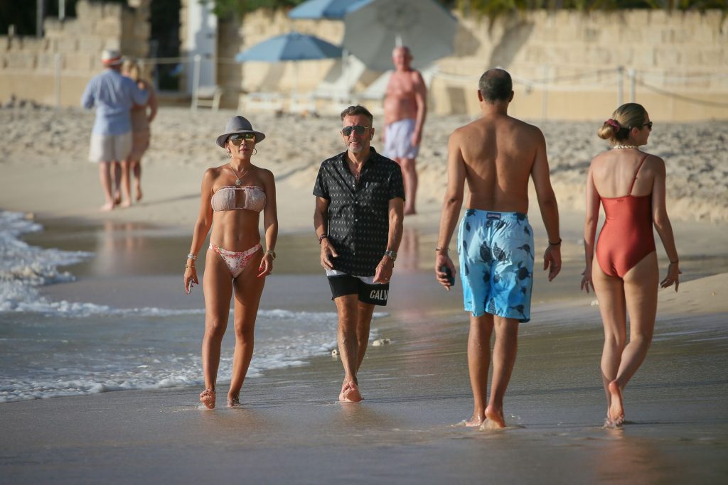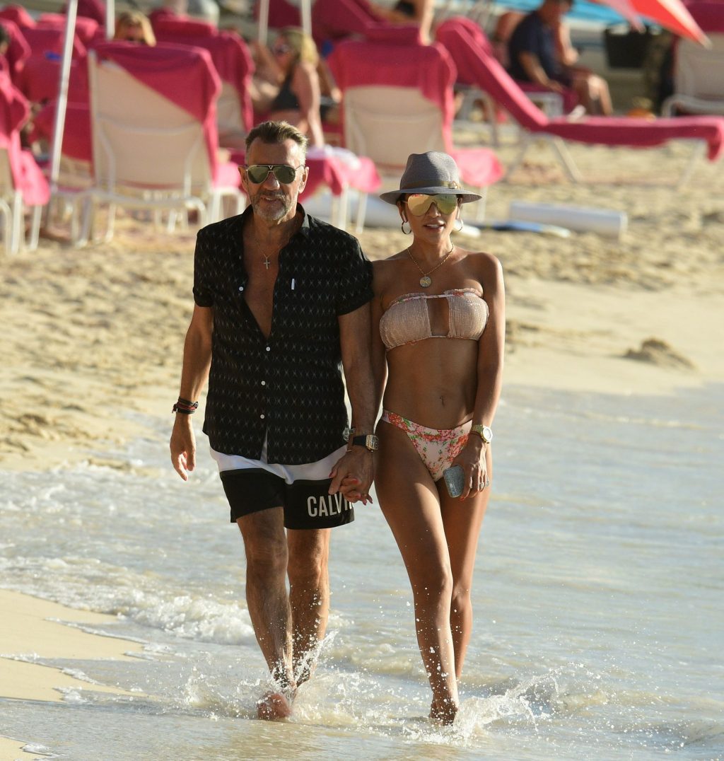 L’entrepreneur écossais Duncan Bannatyne et son épouse Nigora Bannatyne ont été photographiés en train de profiter de la plage à la Barbade, le 27/12/2019.