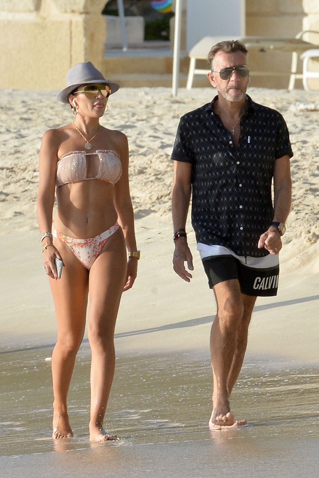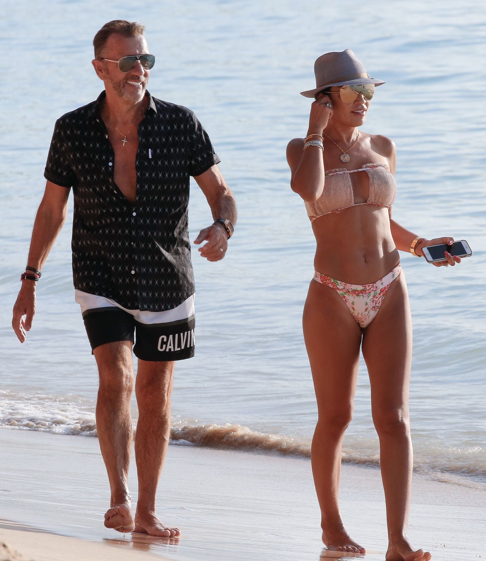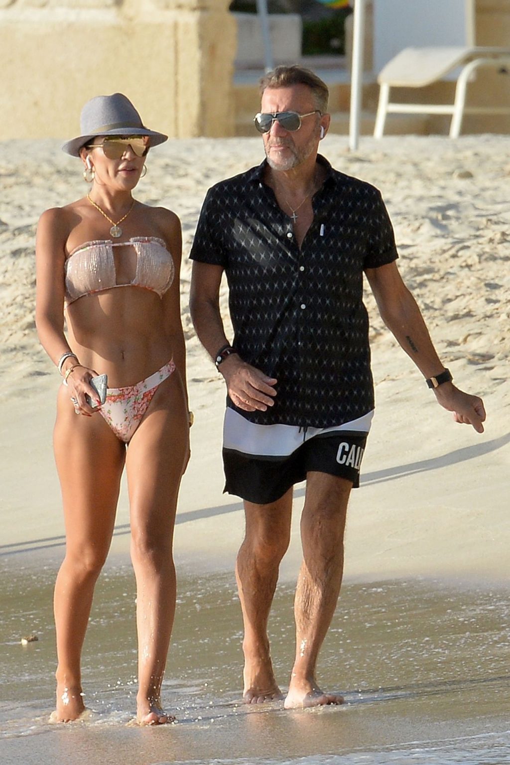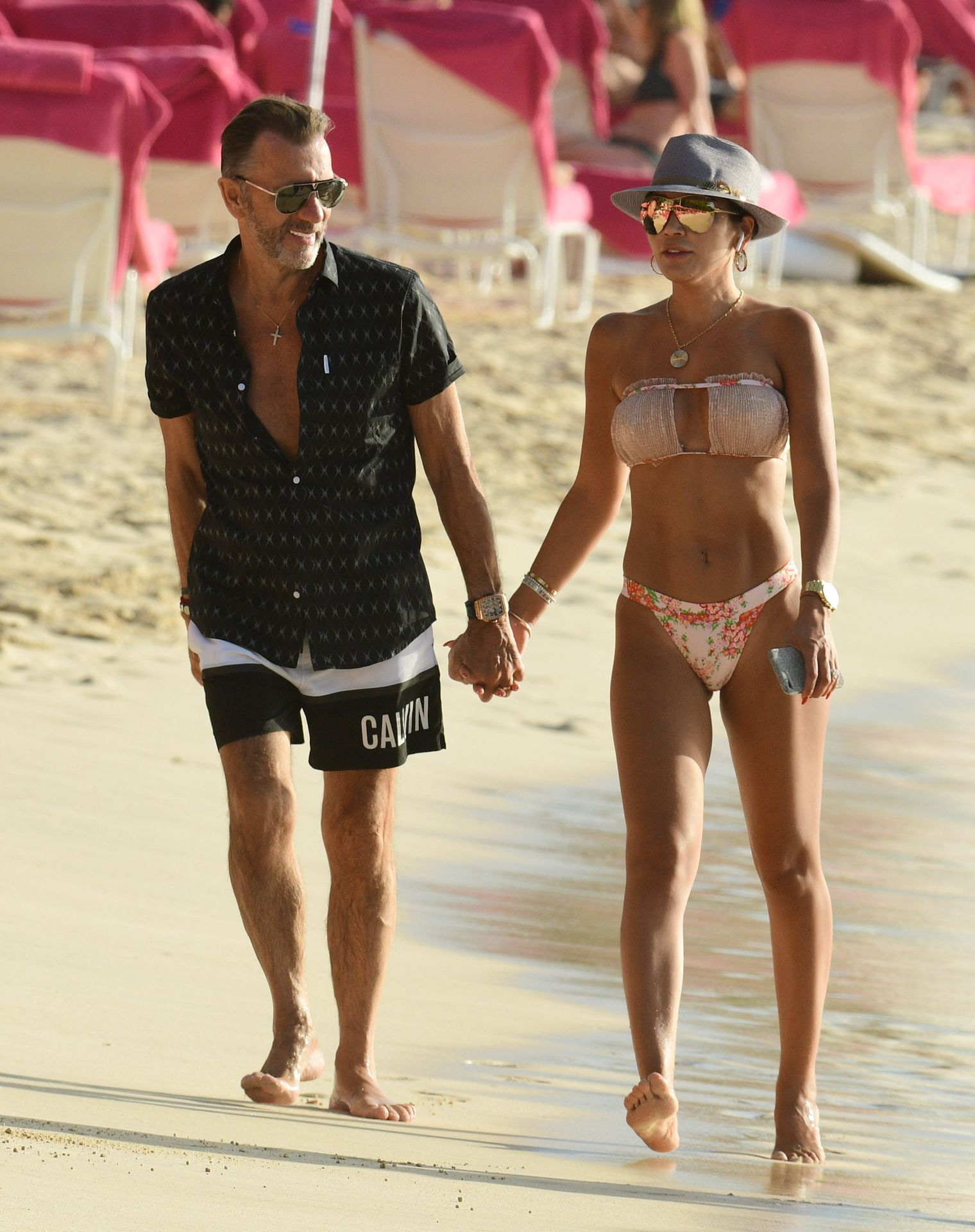 L’entrepreneur écossais Duncan Bannatyne et son épouse Nigora Bannatyne ont été photographiés en train de profiter de la plage à la Barbade, le 27/12/2019.