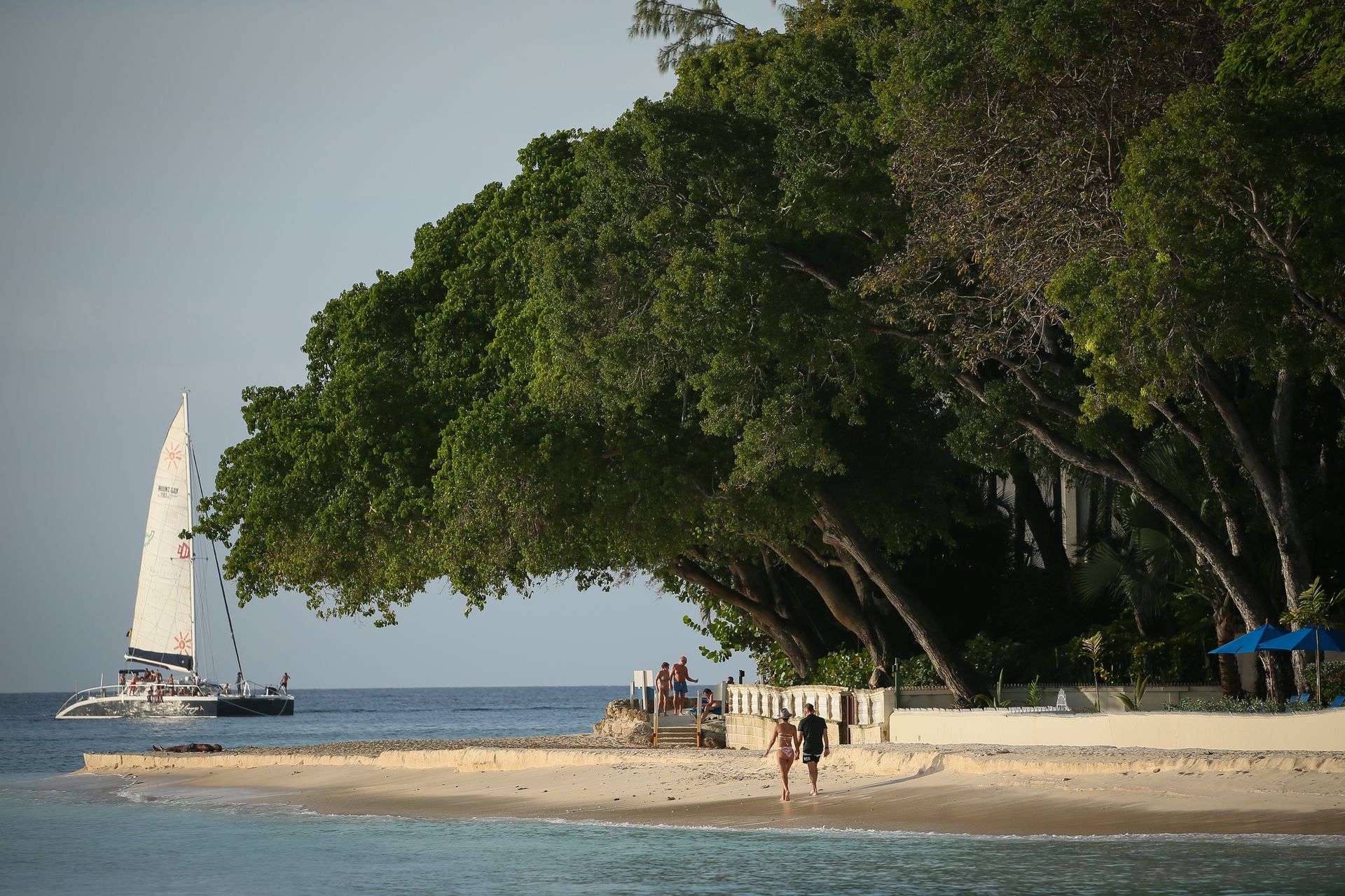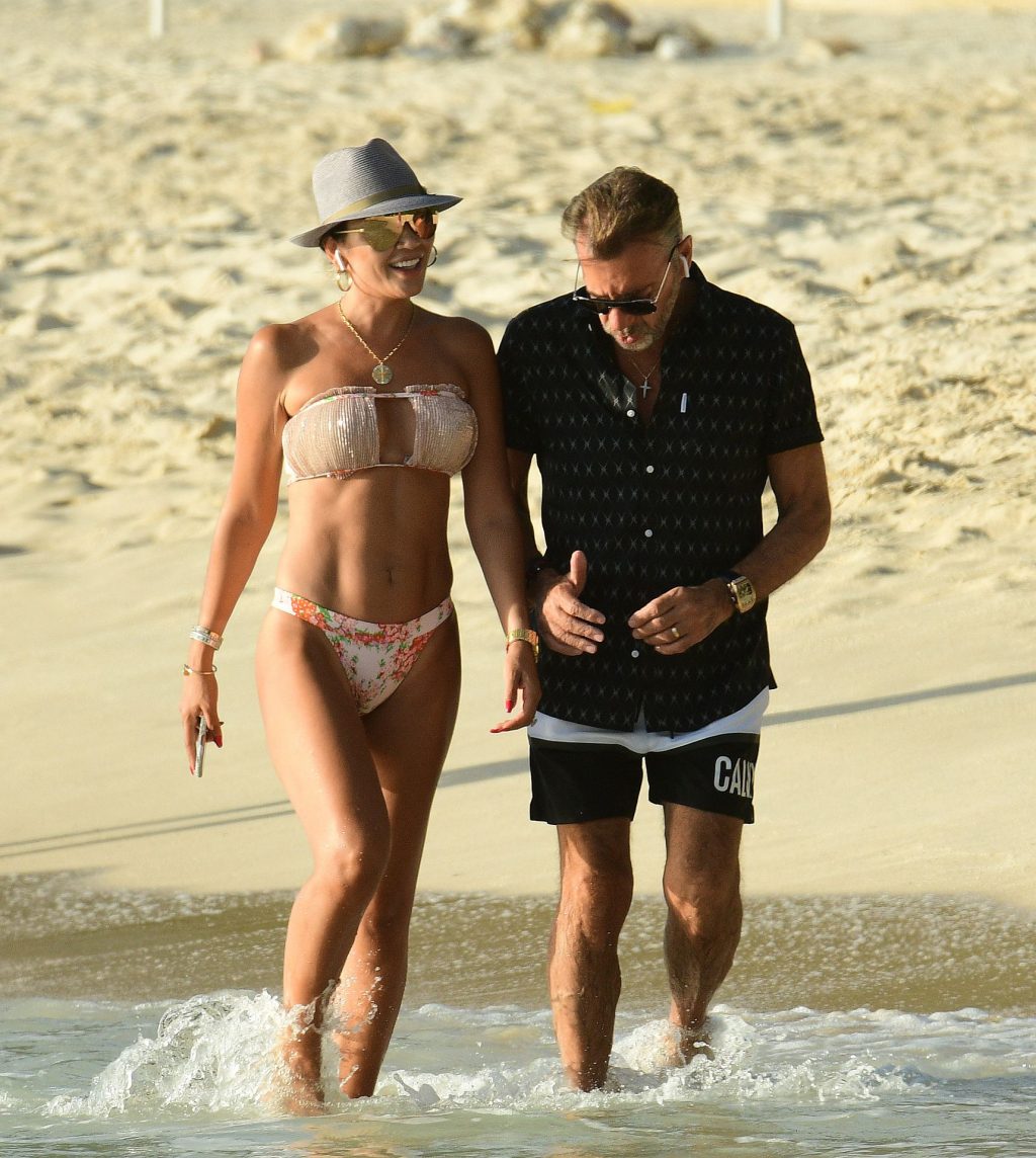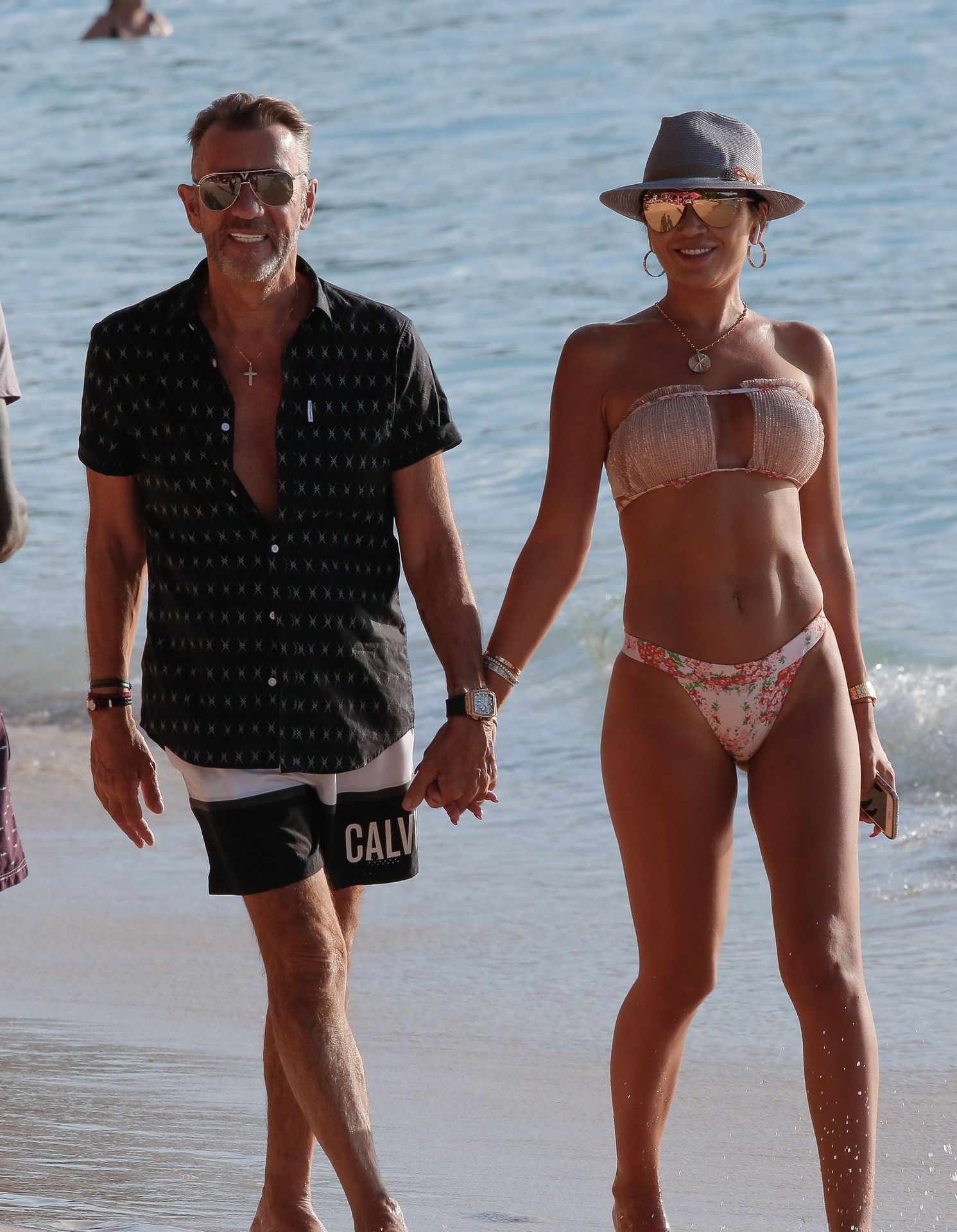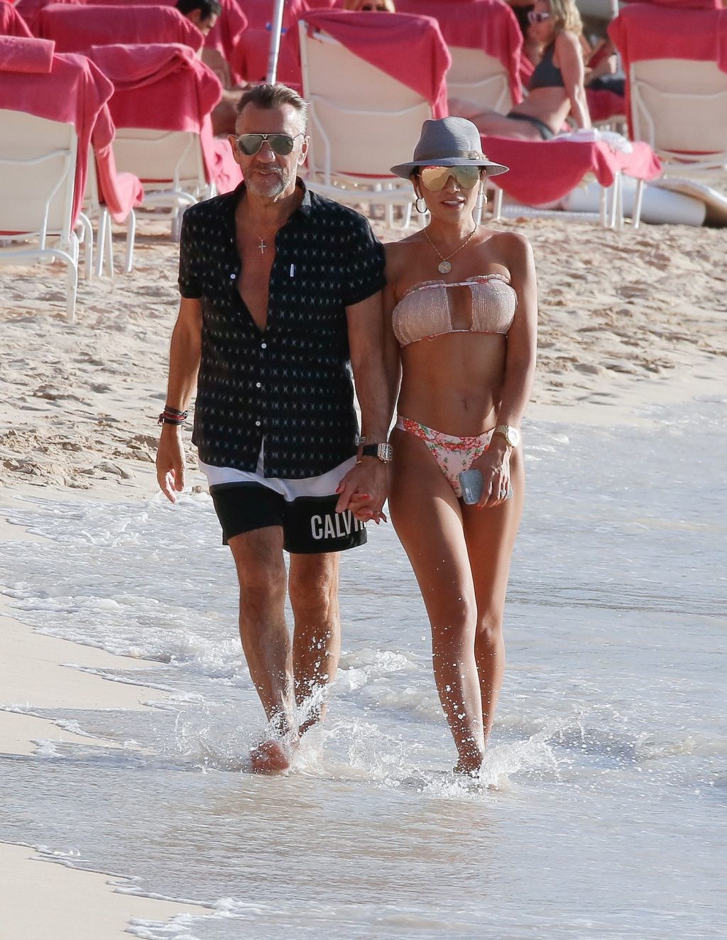 L’entrepreneur écossais Duncan Bannatyne et son épouse Nigora Bannatyne ont été photographiés en train de profiter de la plage à la Barbade, le 27/12/2019.