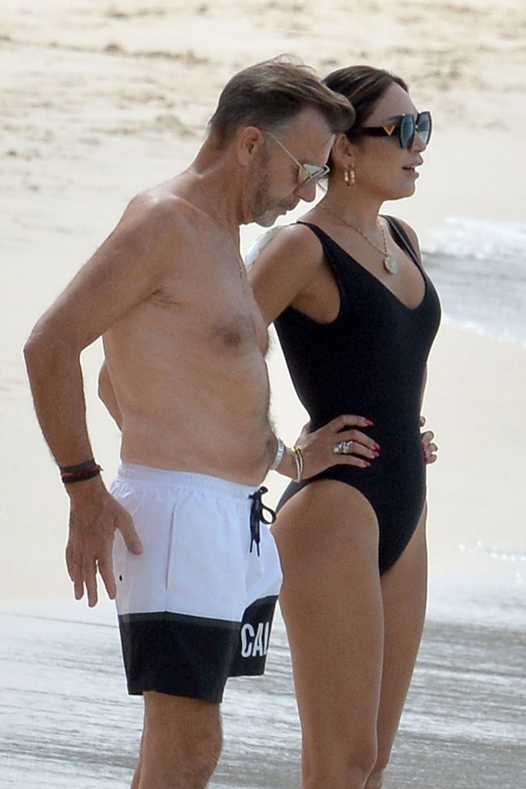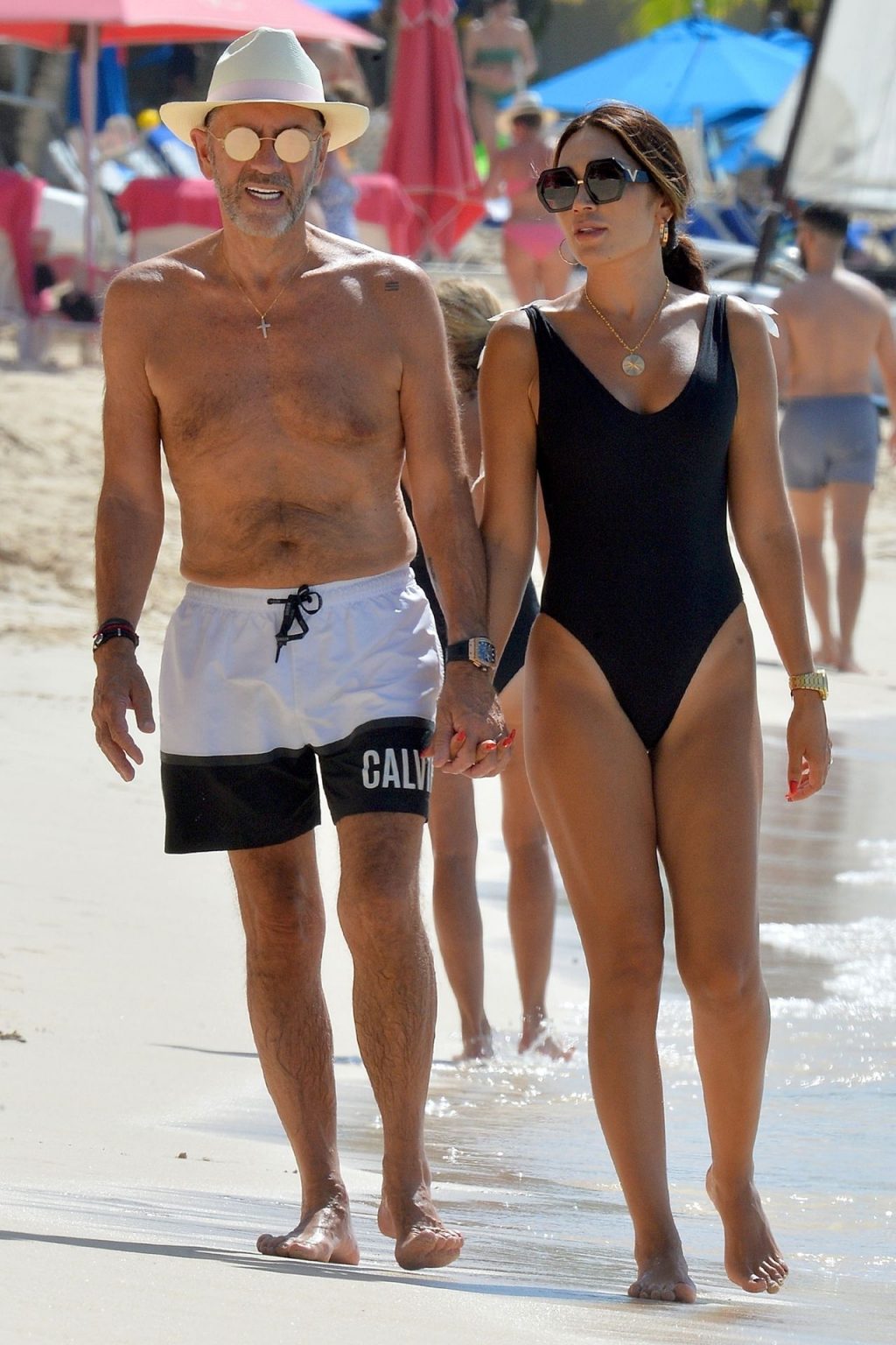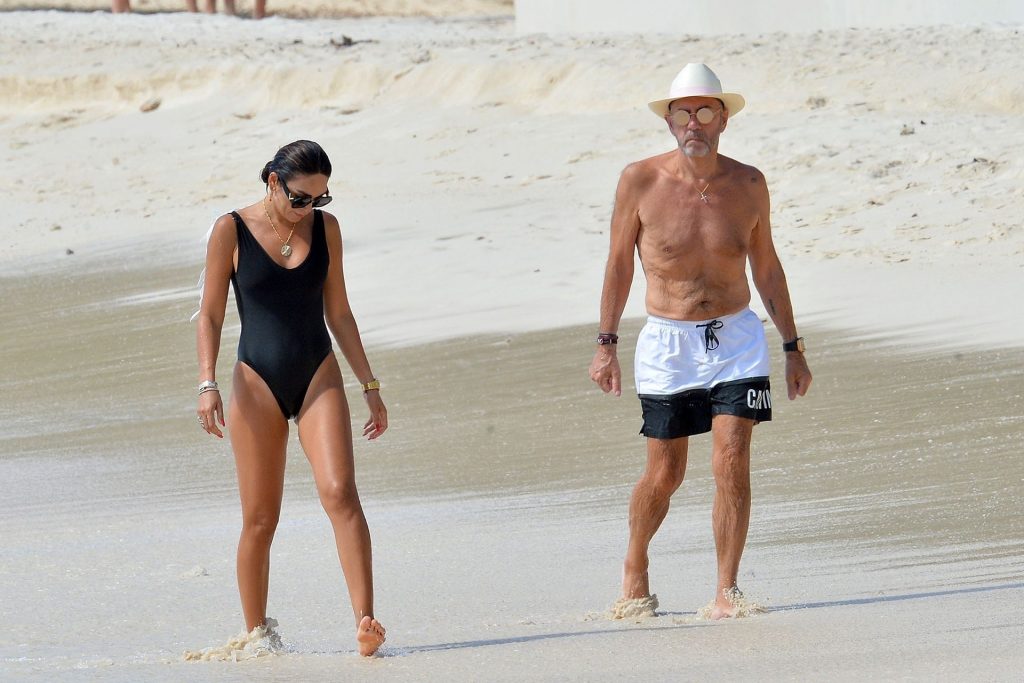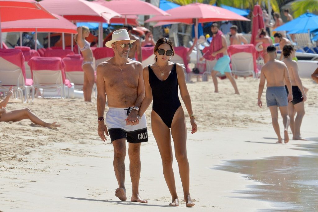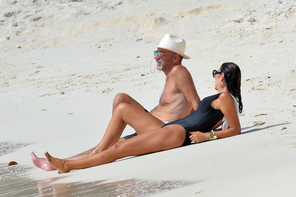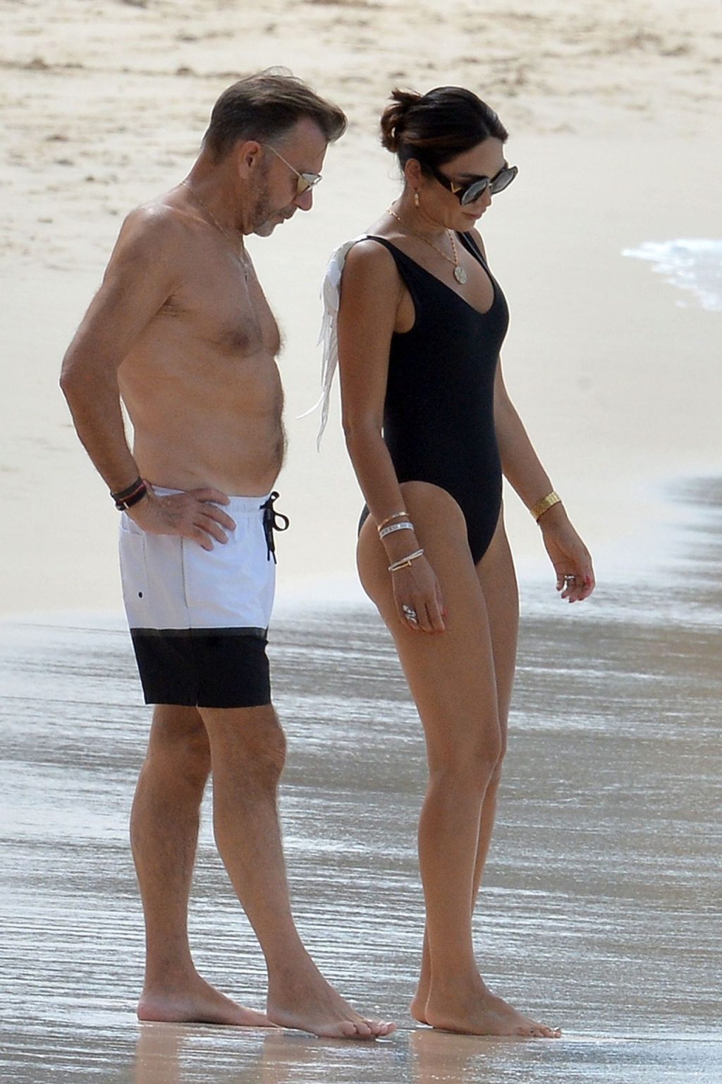 Duncan Bannatyne et Nigora Bannatyne ont été photographiés à la plage à la Barbade, le 27/12/2019. Nigora a montré sa silhouette, portant un maillot de bain une pièce noir.