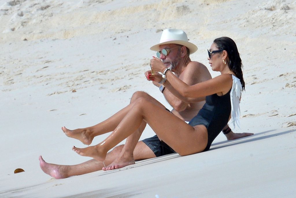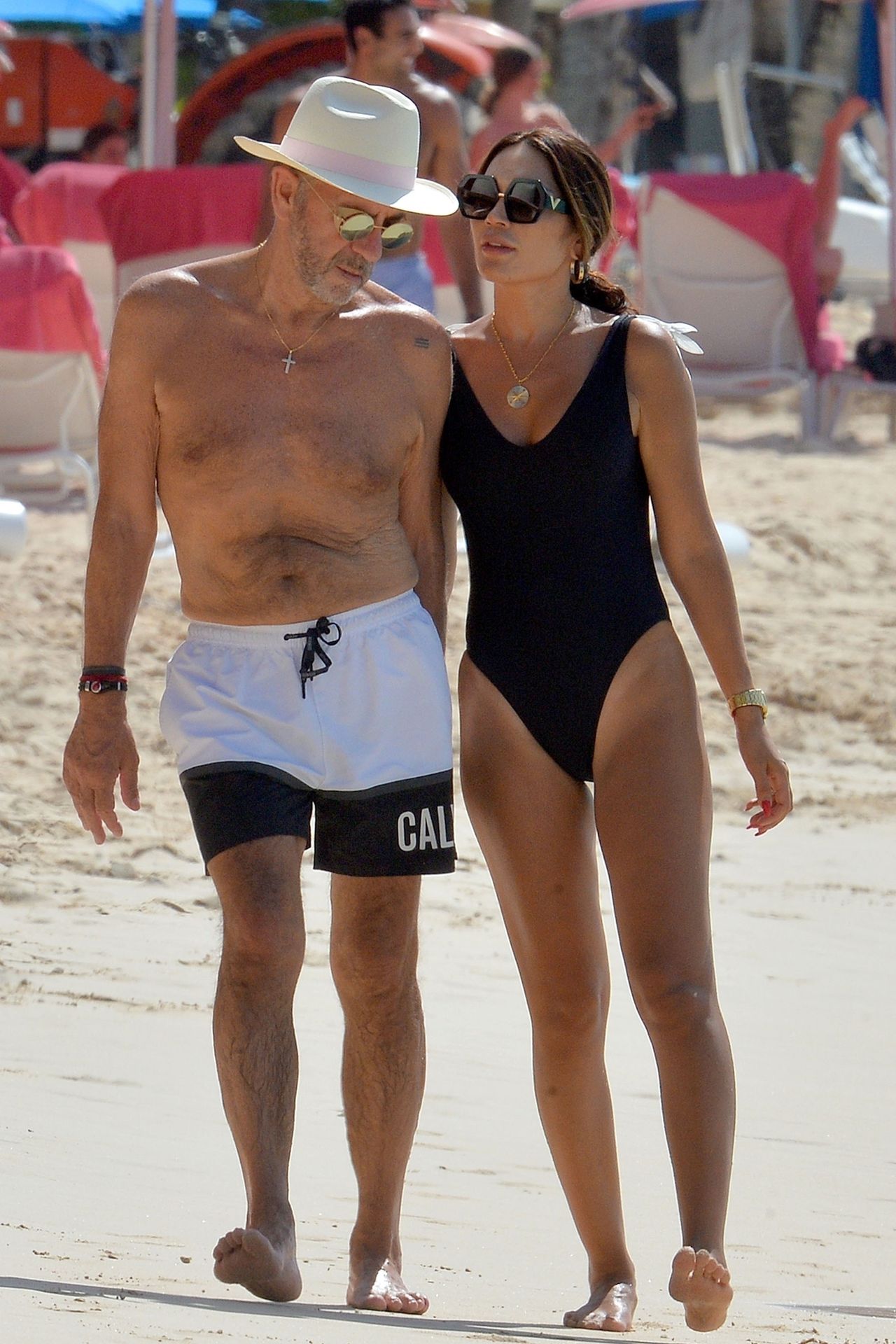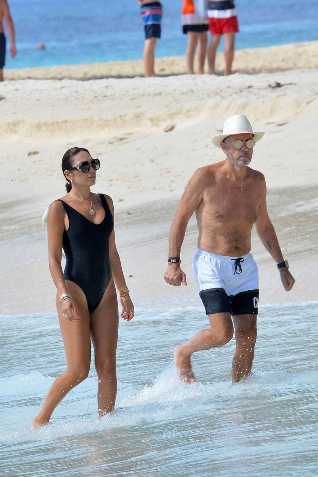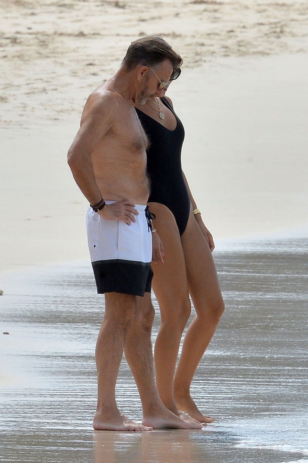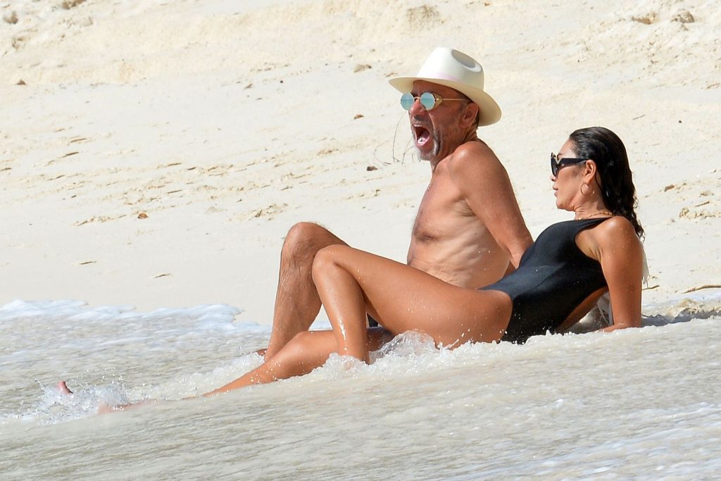 Duncan Bannatyne et Nigora Bannatyne ont été photographiés à la plage à la Barbade, le 27/12/2019. Nigora a montré sa silhouette, portant un maillot de bain une pièce noir.