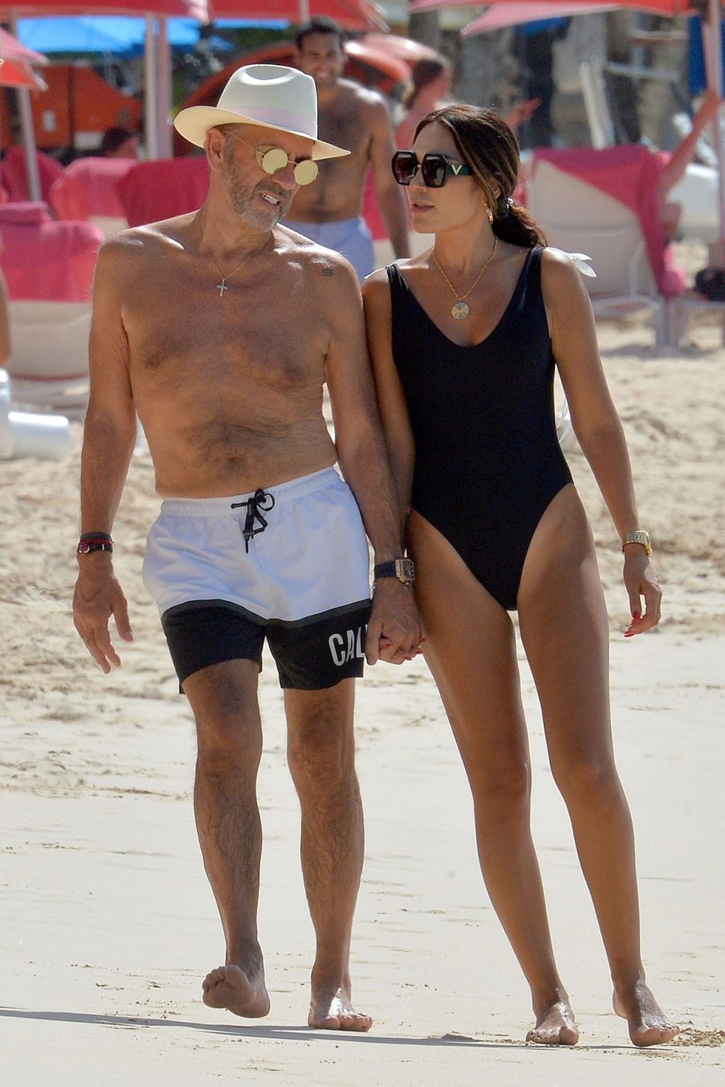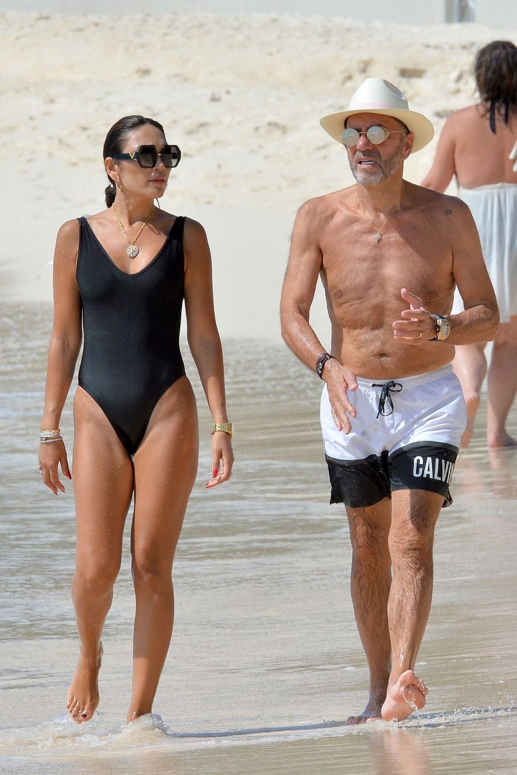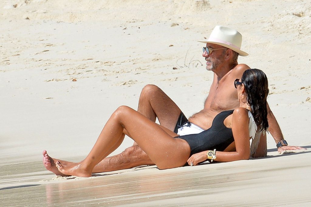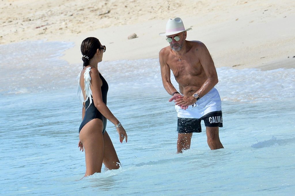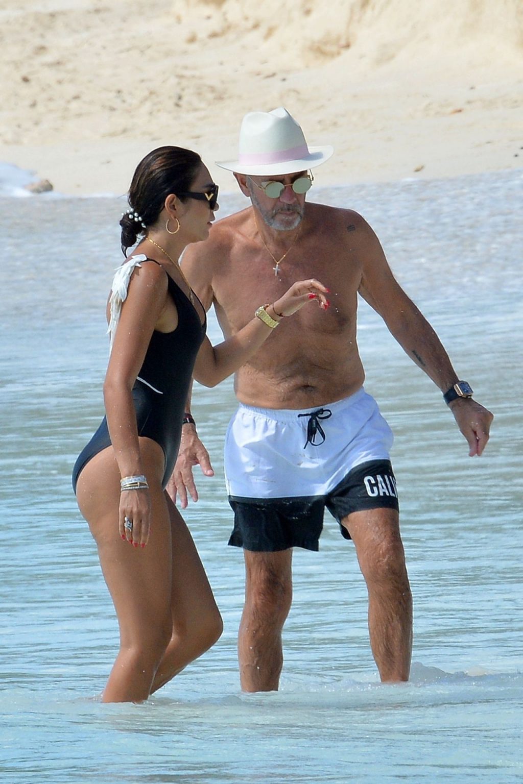 Duncan Bannatyne et Nigora Bannatyne ont été photographiés à la plage à la Barbade, le 27/12/2019. Nigora a montré sa silhouette, portant un maillot de bain une pièce noir.
