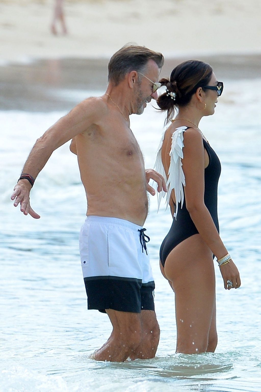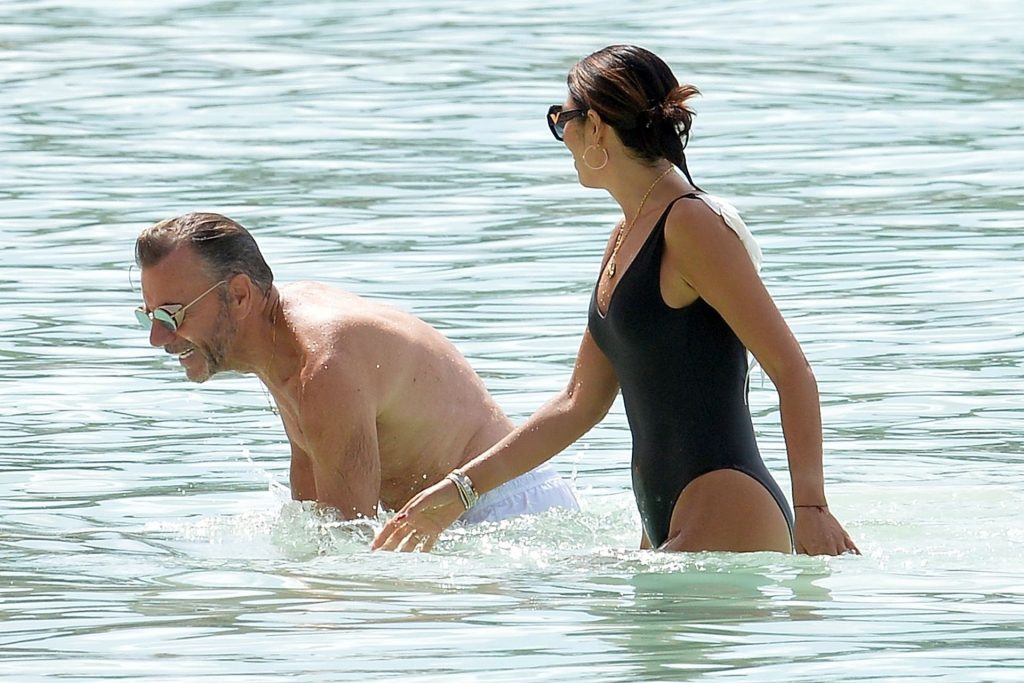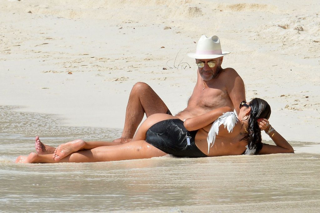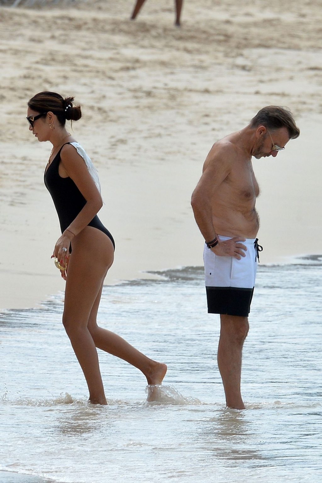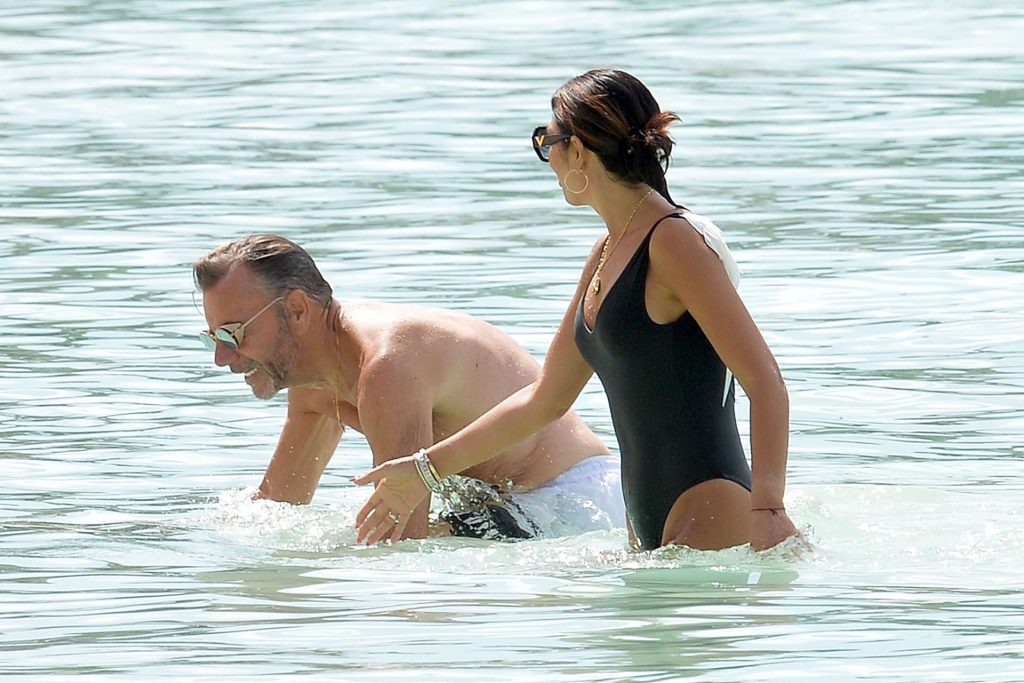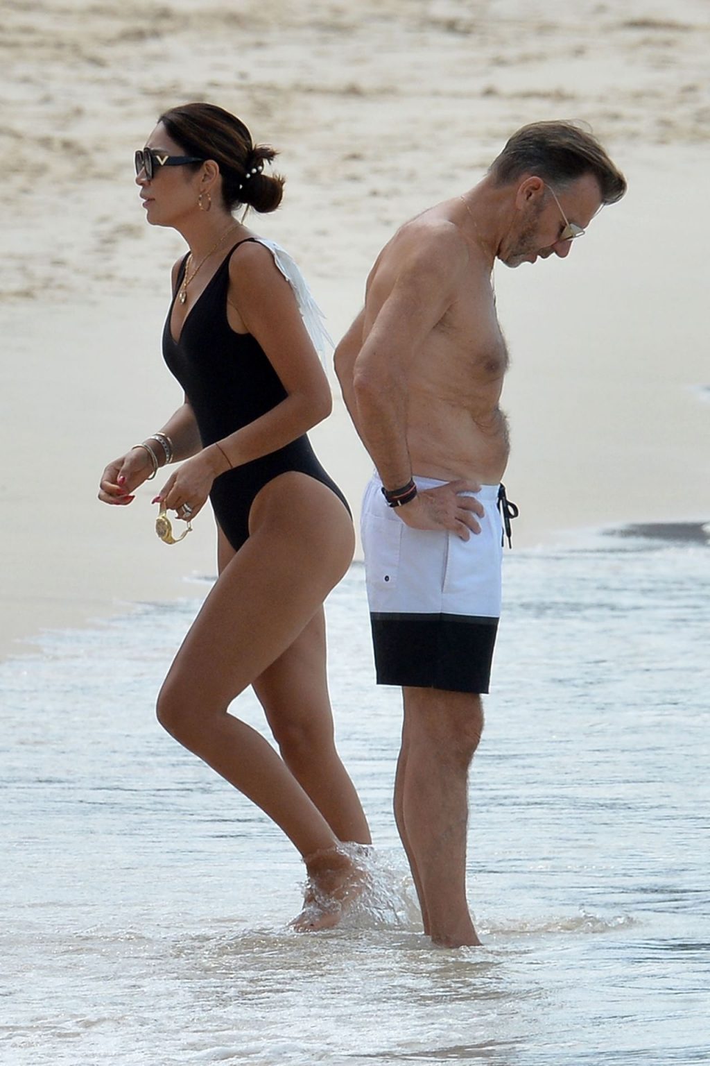 Duncan Bannatyne et Nigora Bannatyne ont été photographiés à la plage à la Barbade, le 27/12/2019. Nigora a montré sa silhouette, portant un maillot de bain une pièce noir.