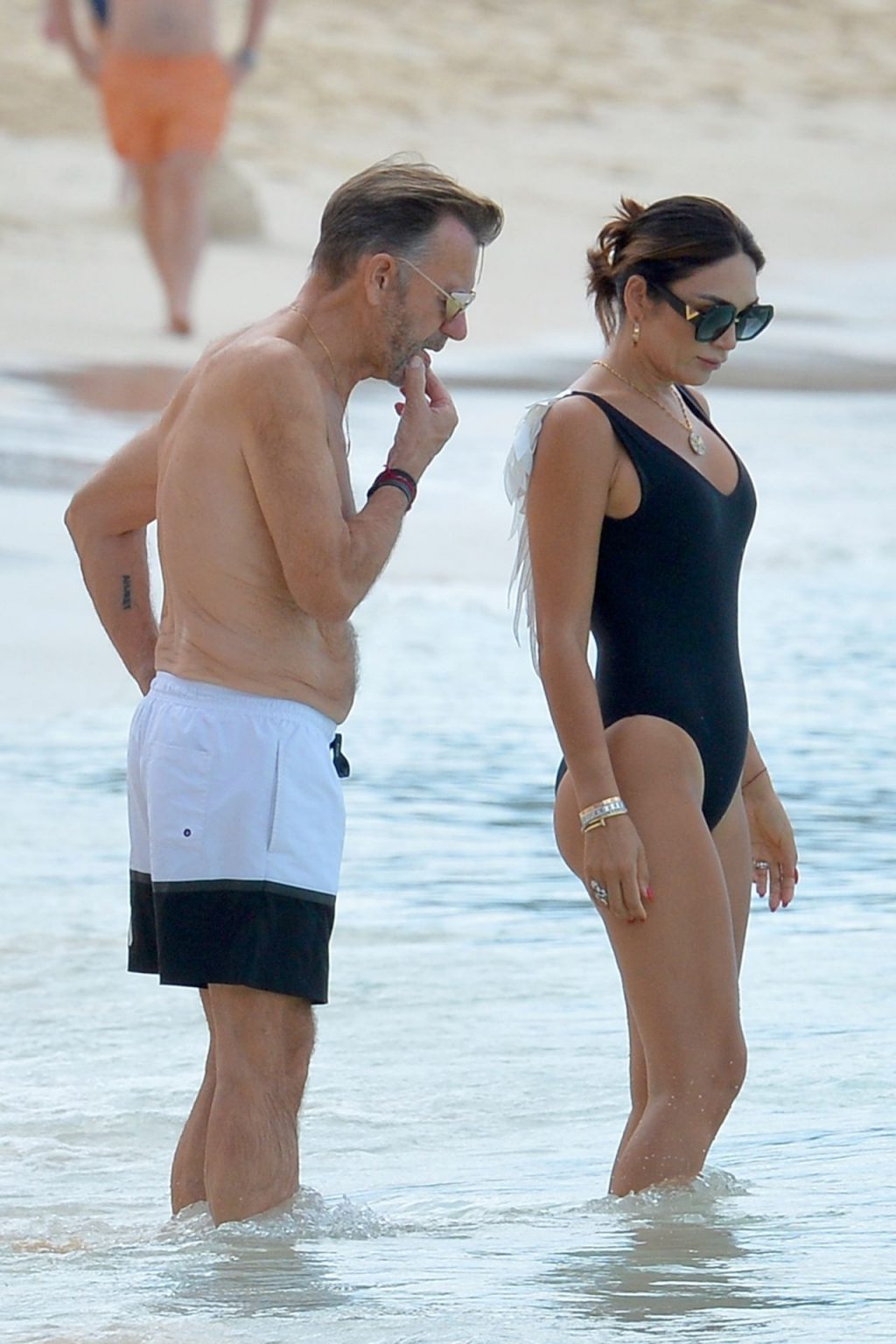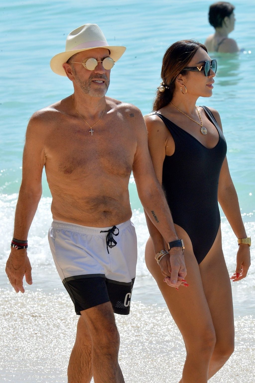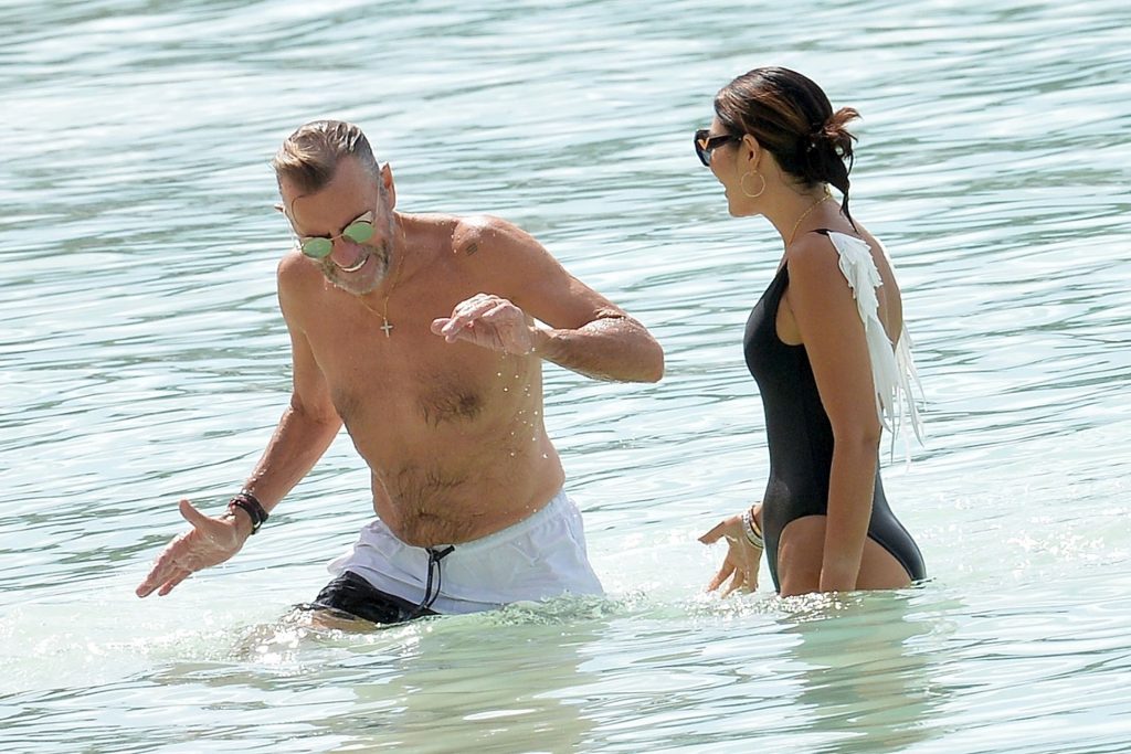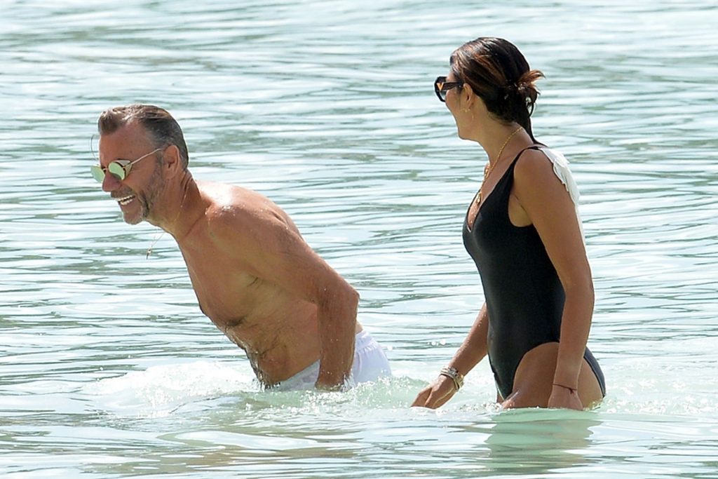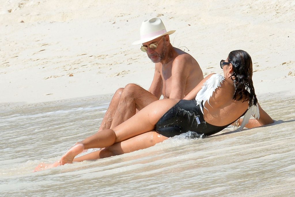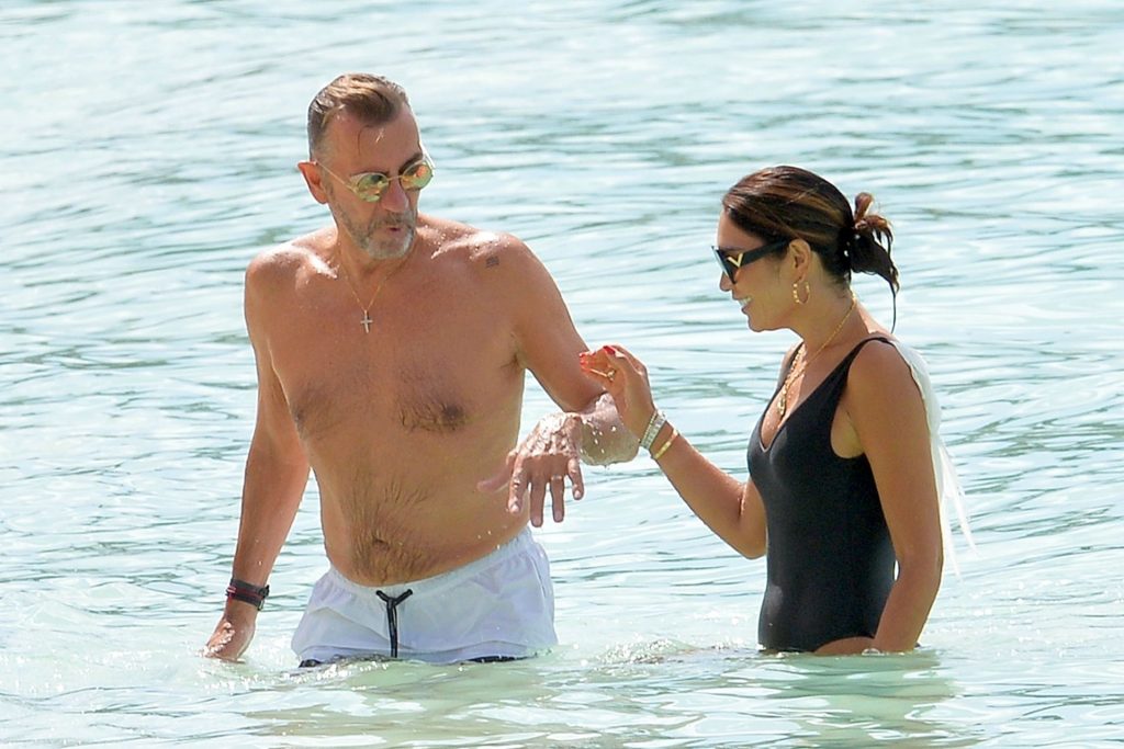 Duncan Bannatyne et Nigora Bannatyne ont été photographiés à la plage à la Barbade, le 27/12/2019. Nigora a montré sa silhouette, portant un maillot de bain une pièce noir.