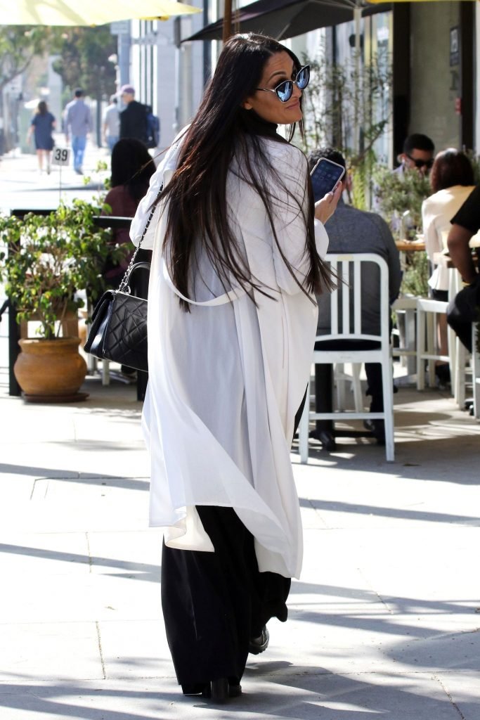 La catcheuse professionnelle Nikki Bella, 34 ans, était assez occupée à discuter au téléphone, élégante dans une combinaison noire à Beverly Hills, le 02/05/2018.