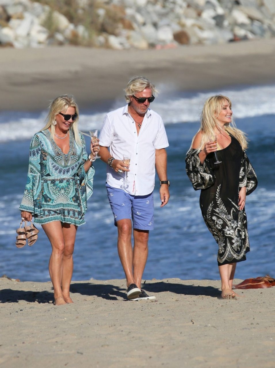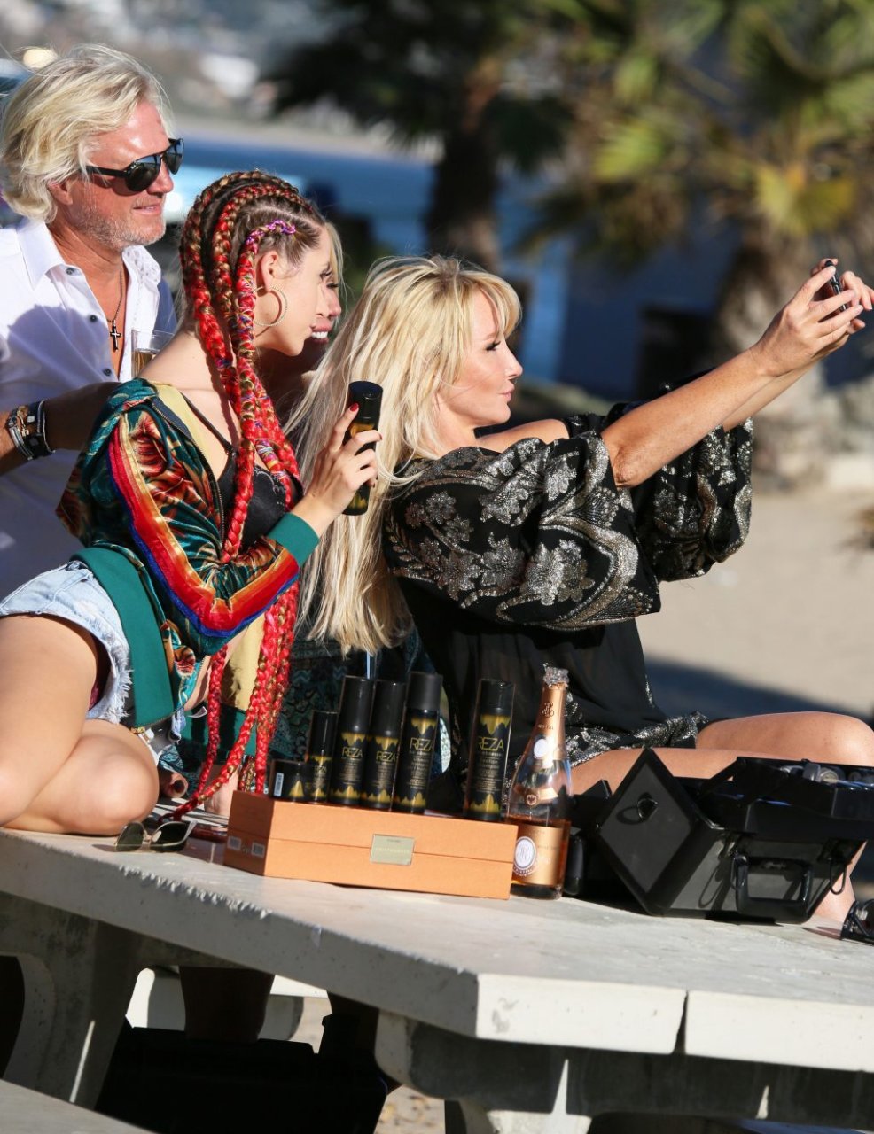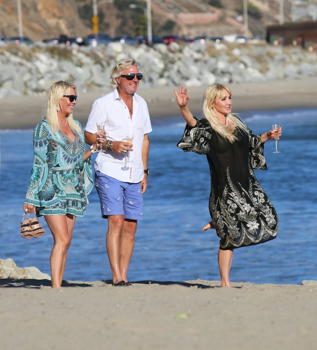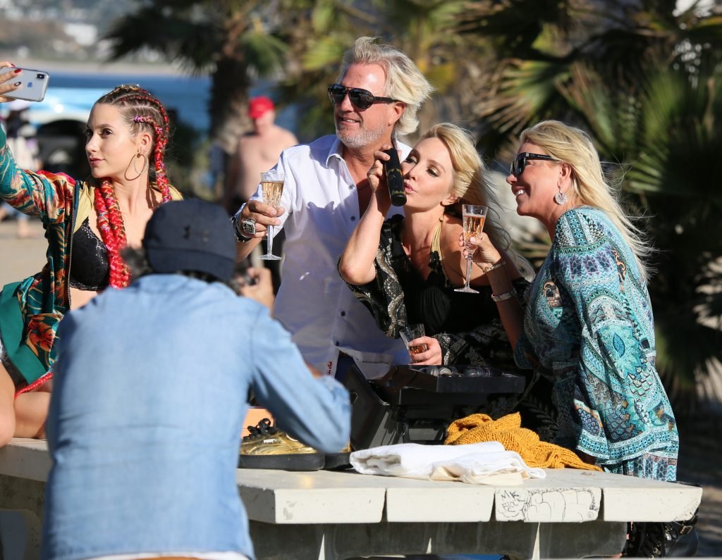 Chanteuse/créatrice de mode Nikki Lund (36 ans) passe du temps avec les magnats des cheveux et des parfums Sheree LaDove Funsch et Dan Funsch ainsi que leur fille Ashley Brighton sur le plateau d’une séance photo à la plage, où elle a exhibé son corps sexy en bikini lors du shooting pour la ligne de cheveux “Be Obsessed” de Reza Farahan de “Shahs of Sunset” – Malibu, 16/10/2018.