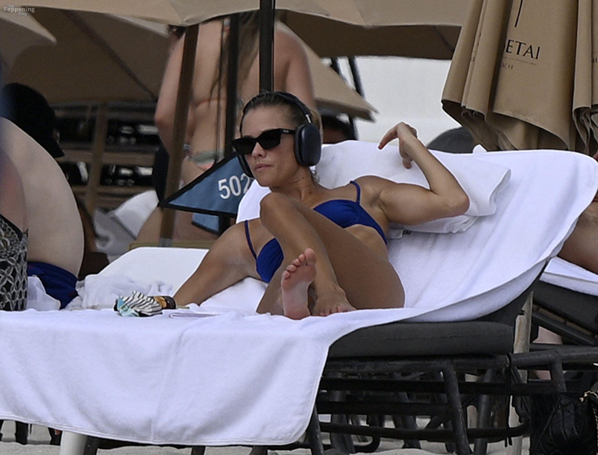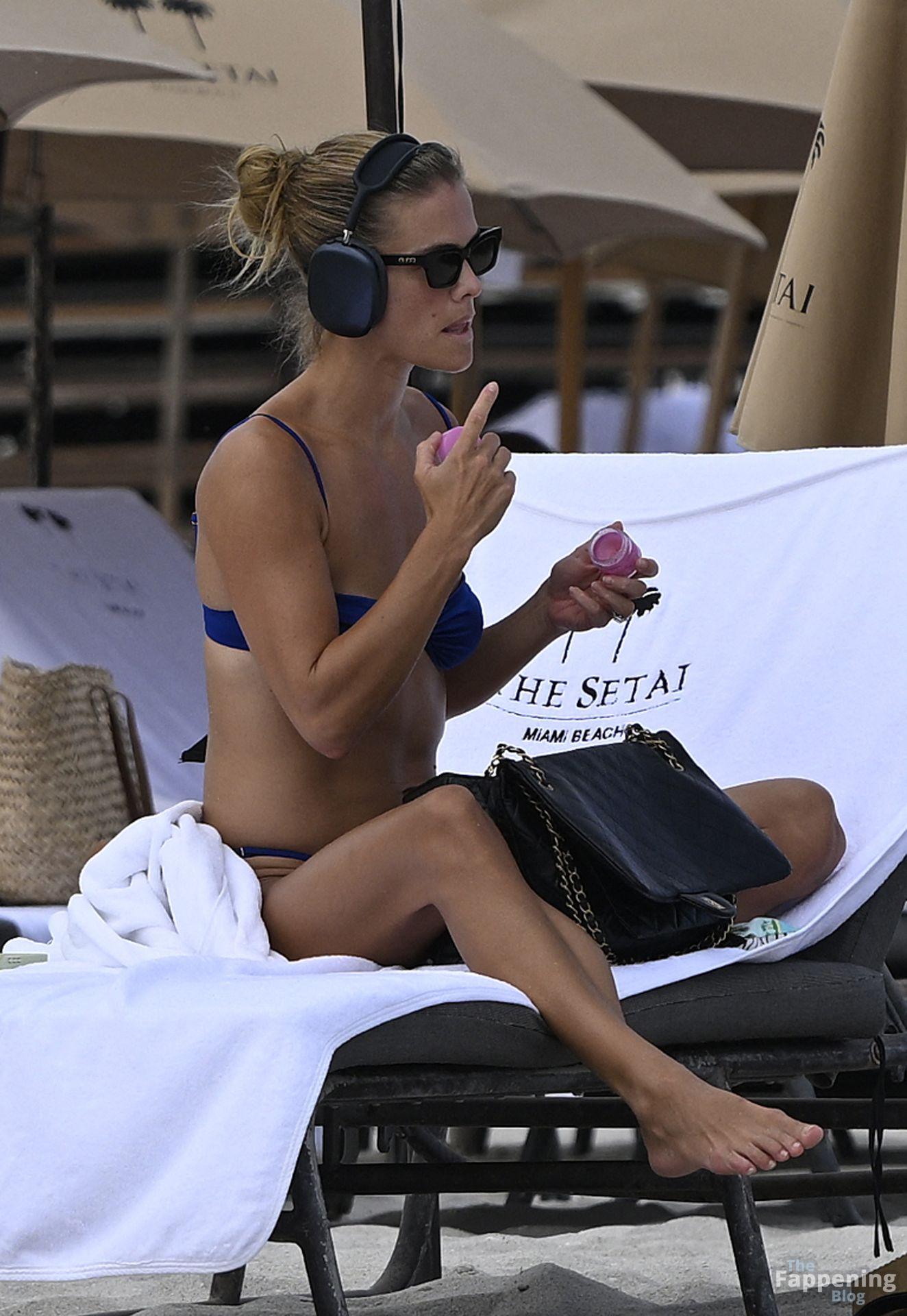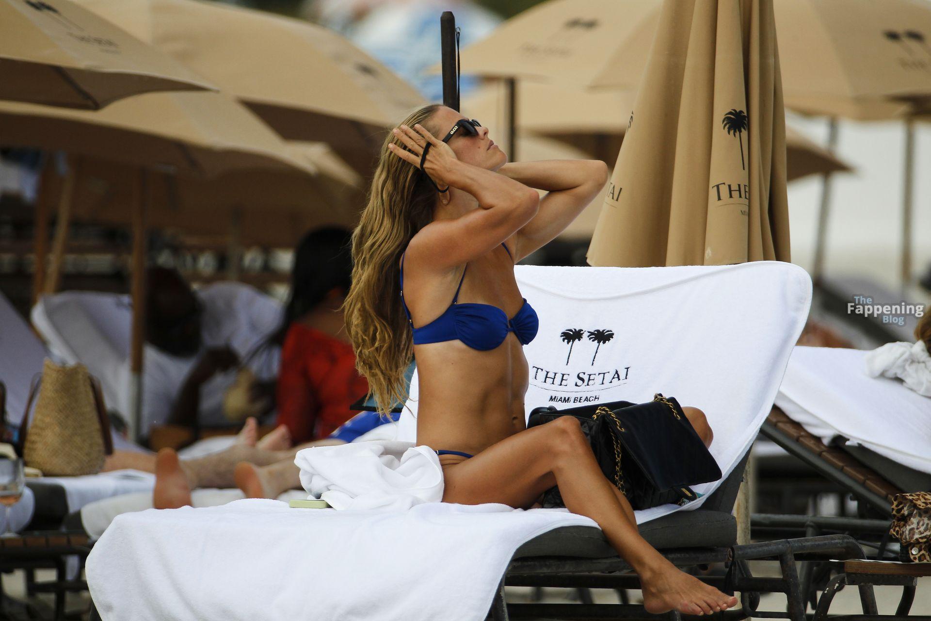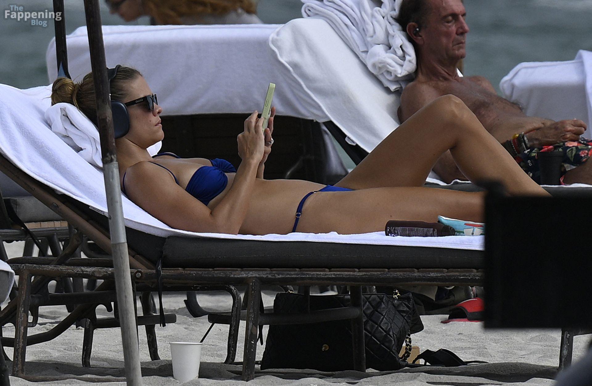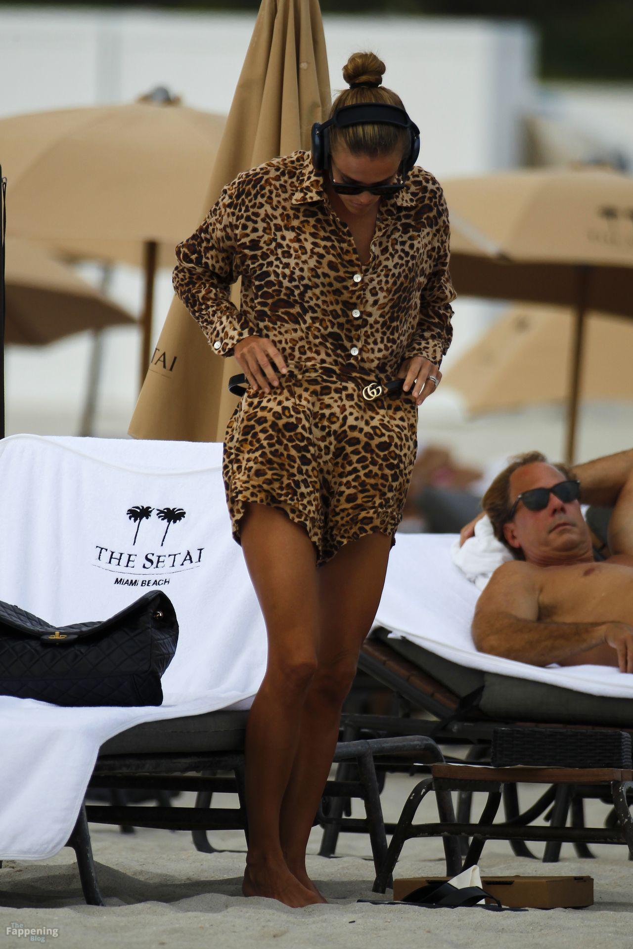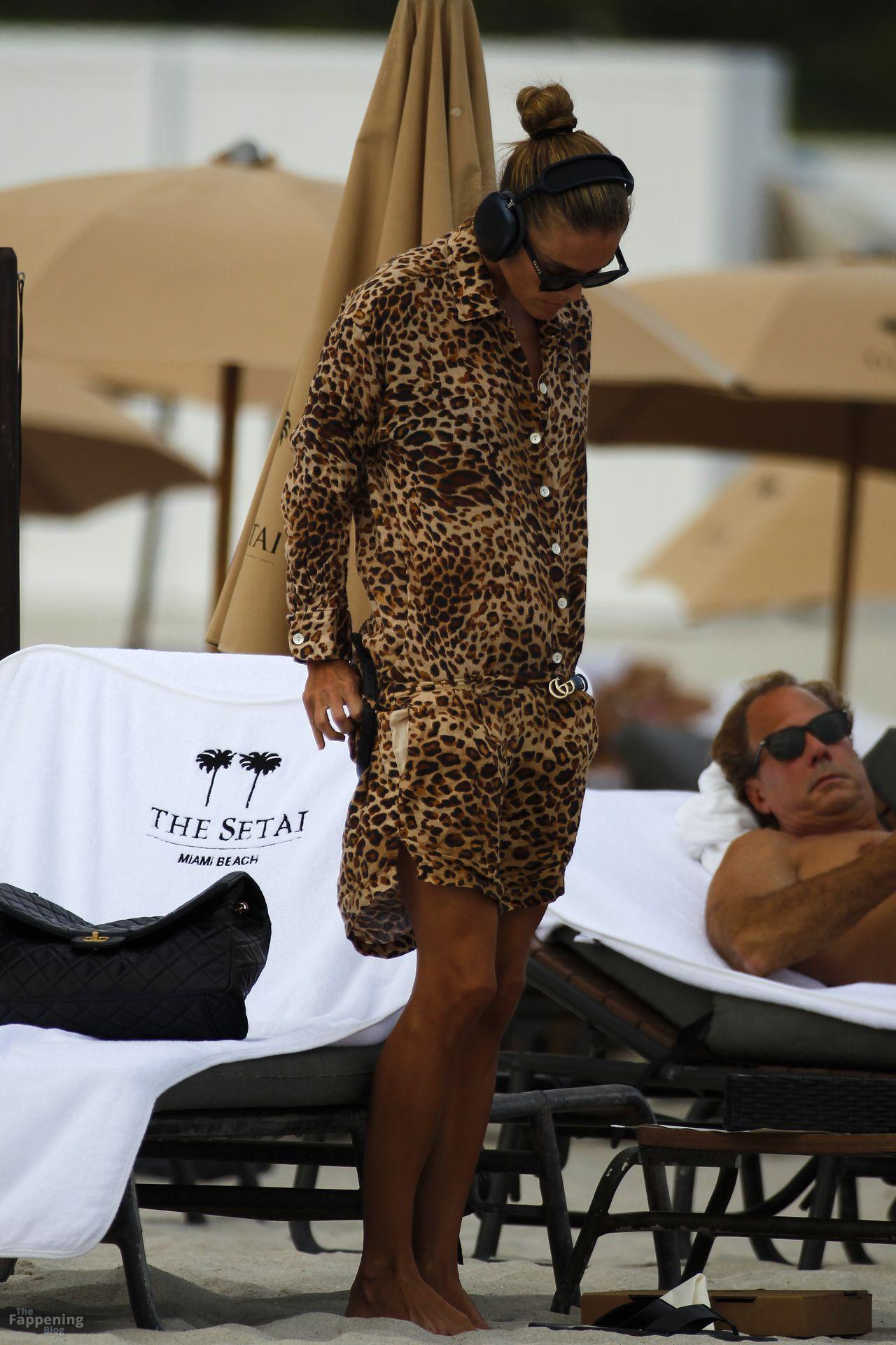 Le mannequin danois Nina Agdal a été aperçue en train de profiter du soleil sur Miami Beach, portant un bikini bleu avant de changer pour une tenue chic à imprimé léopard.
