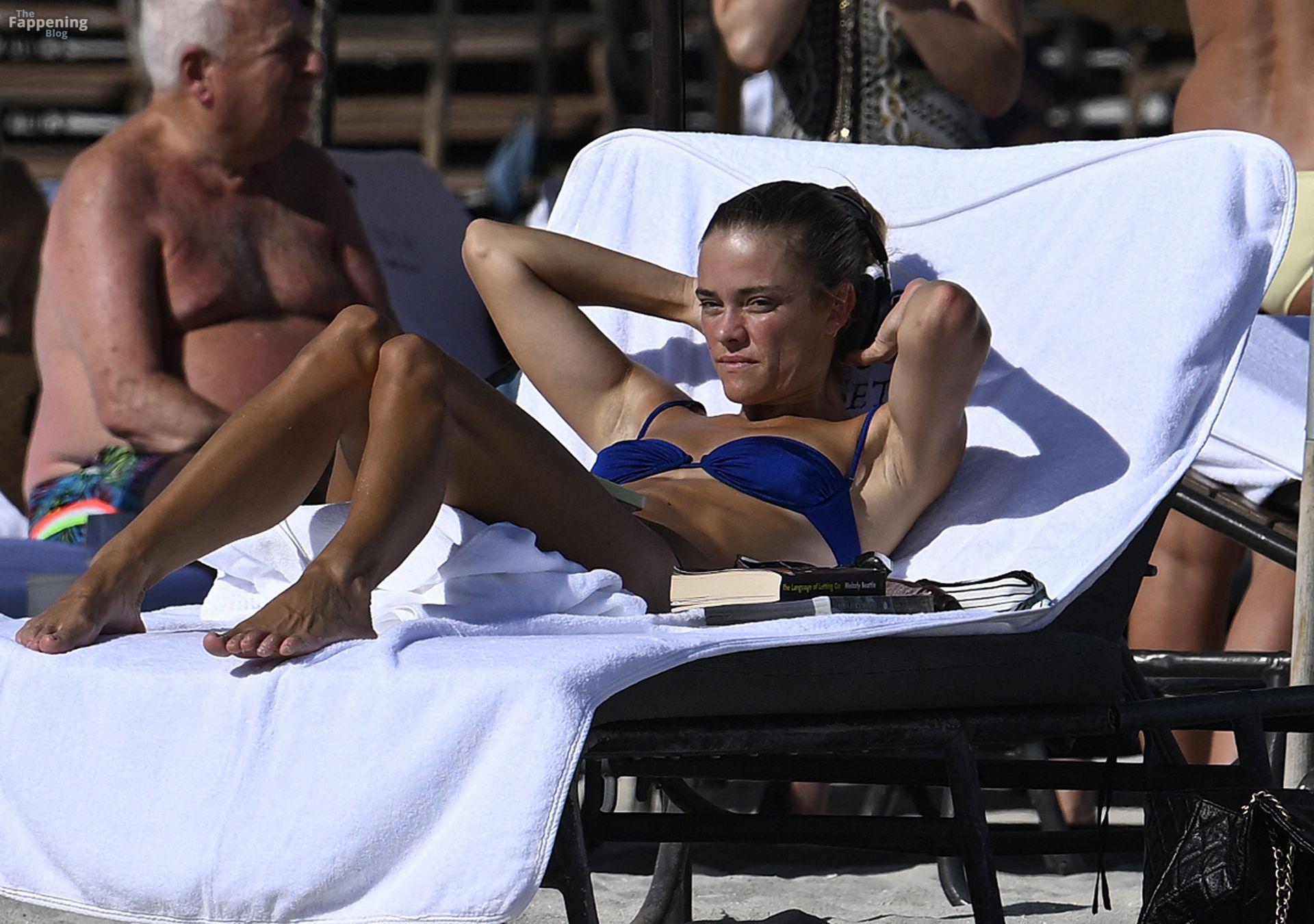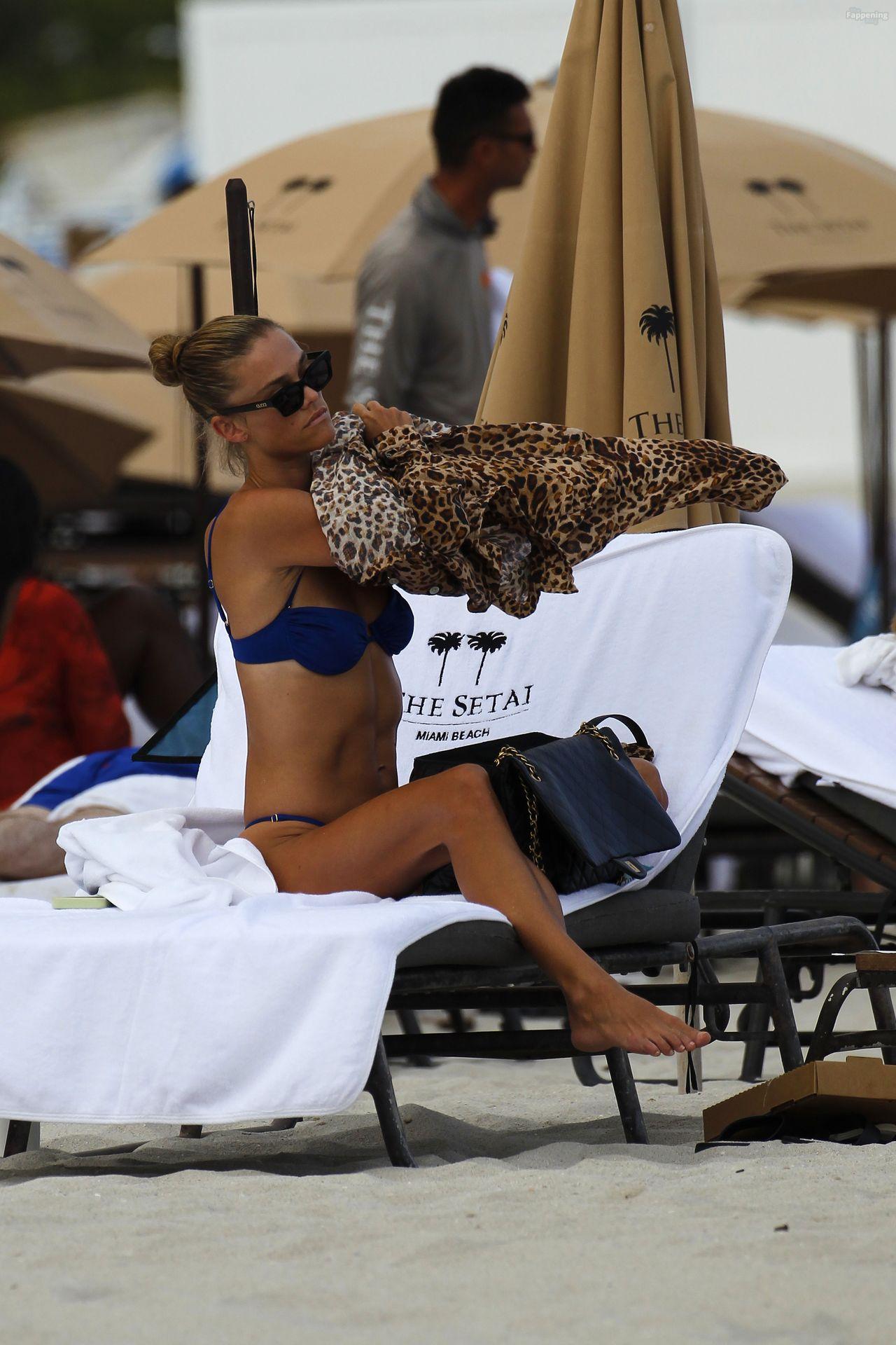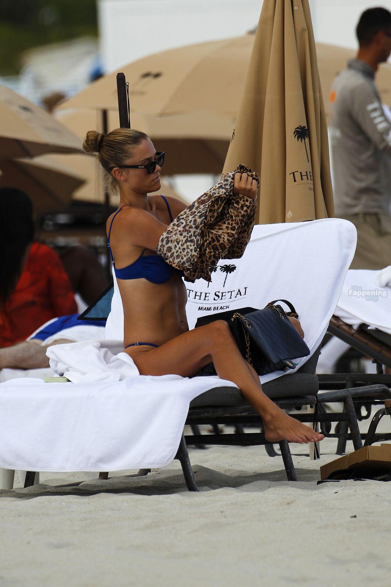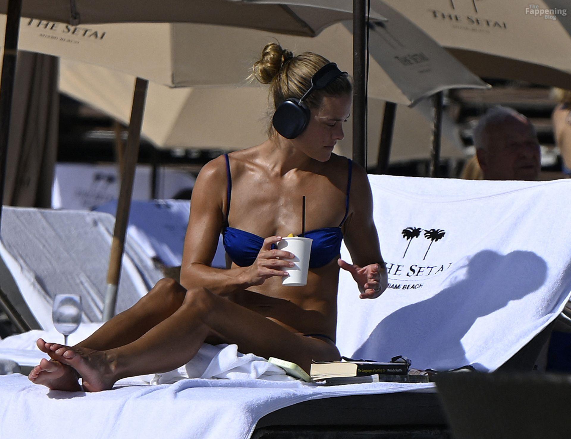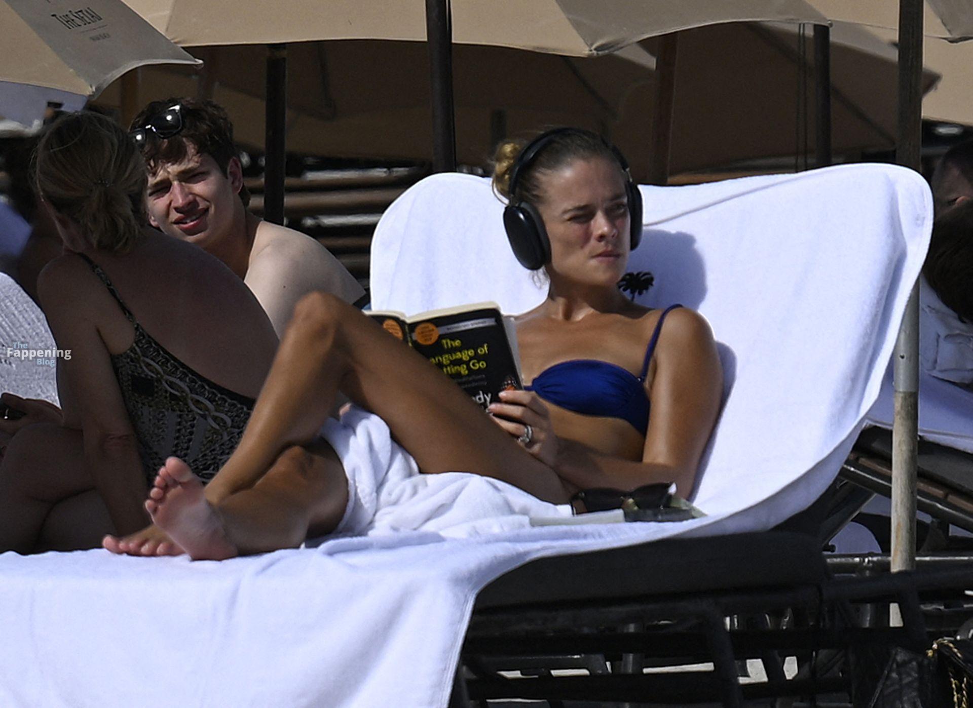 Le mannequin danois Nina Agdal a été aperçue en train de profiter du soleil sur Miami Beach, portant un bikini bleu avant de changer pour une tenue chic à imprimé léopard.