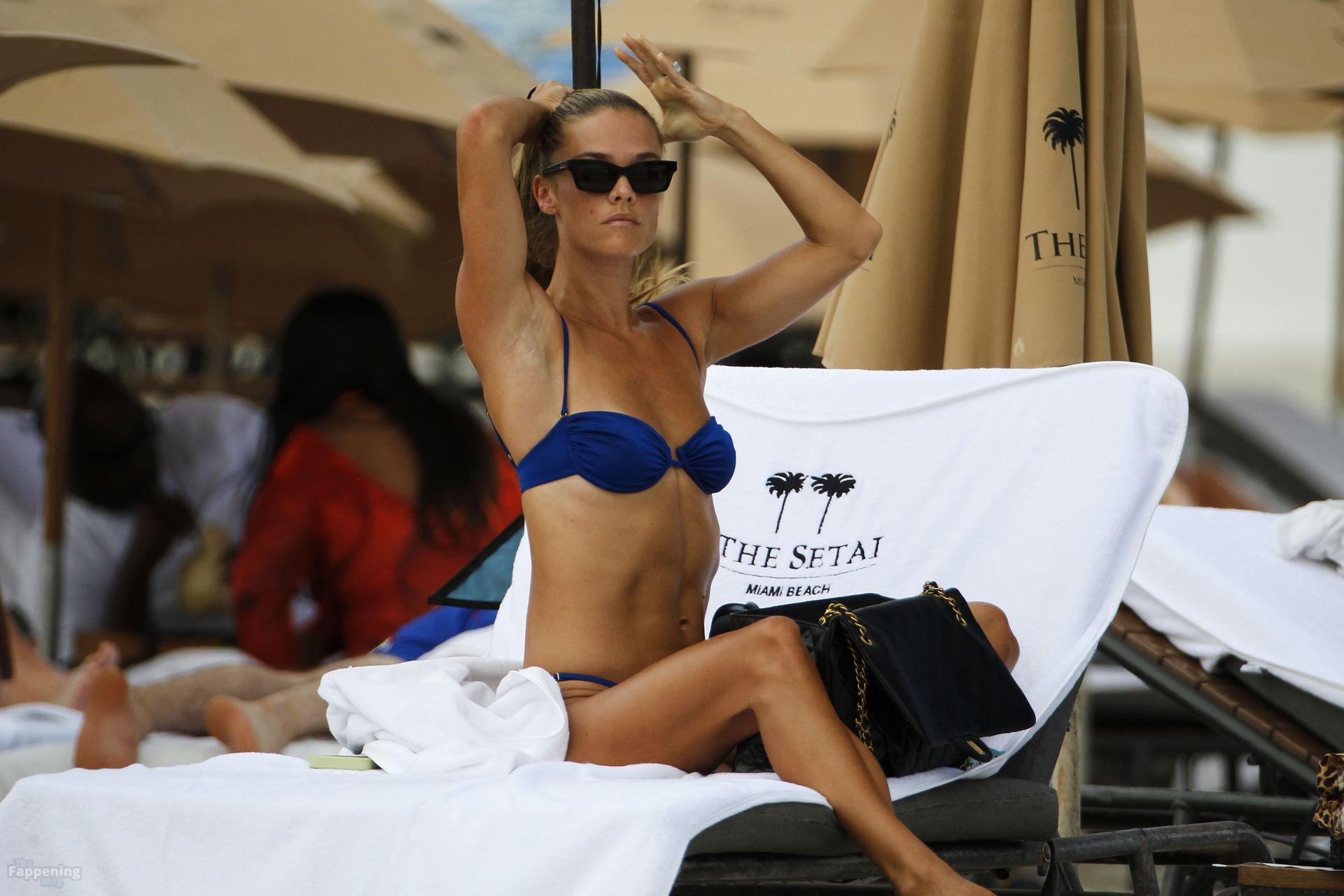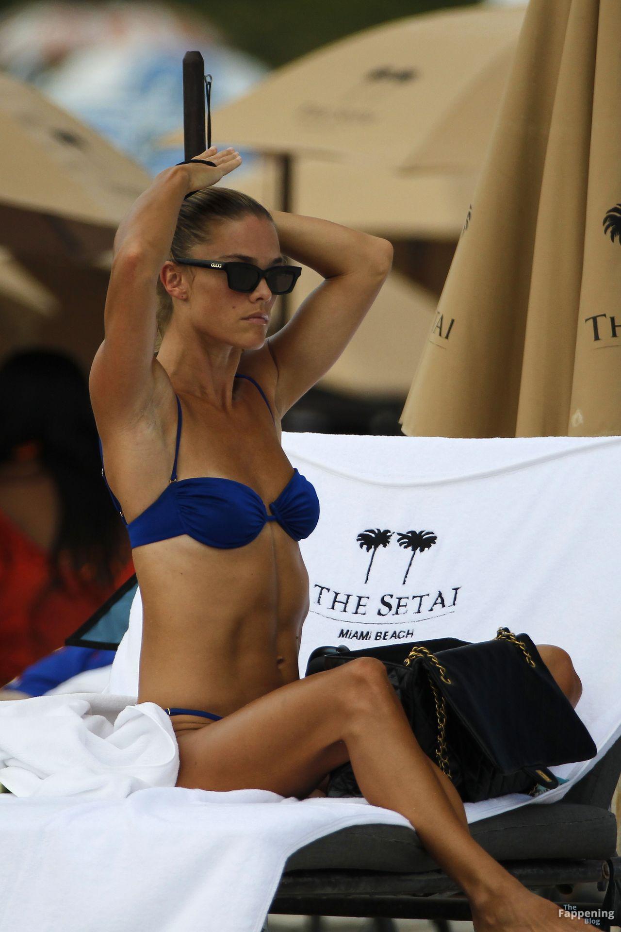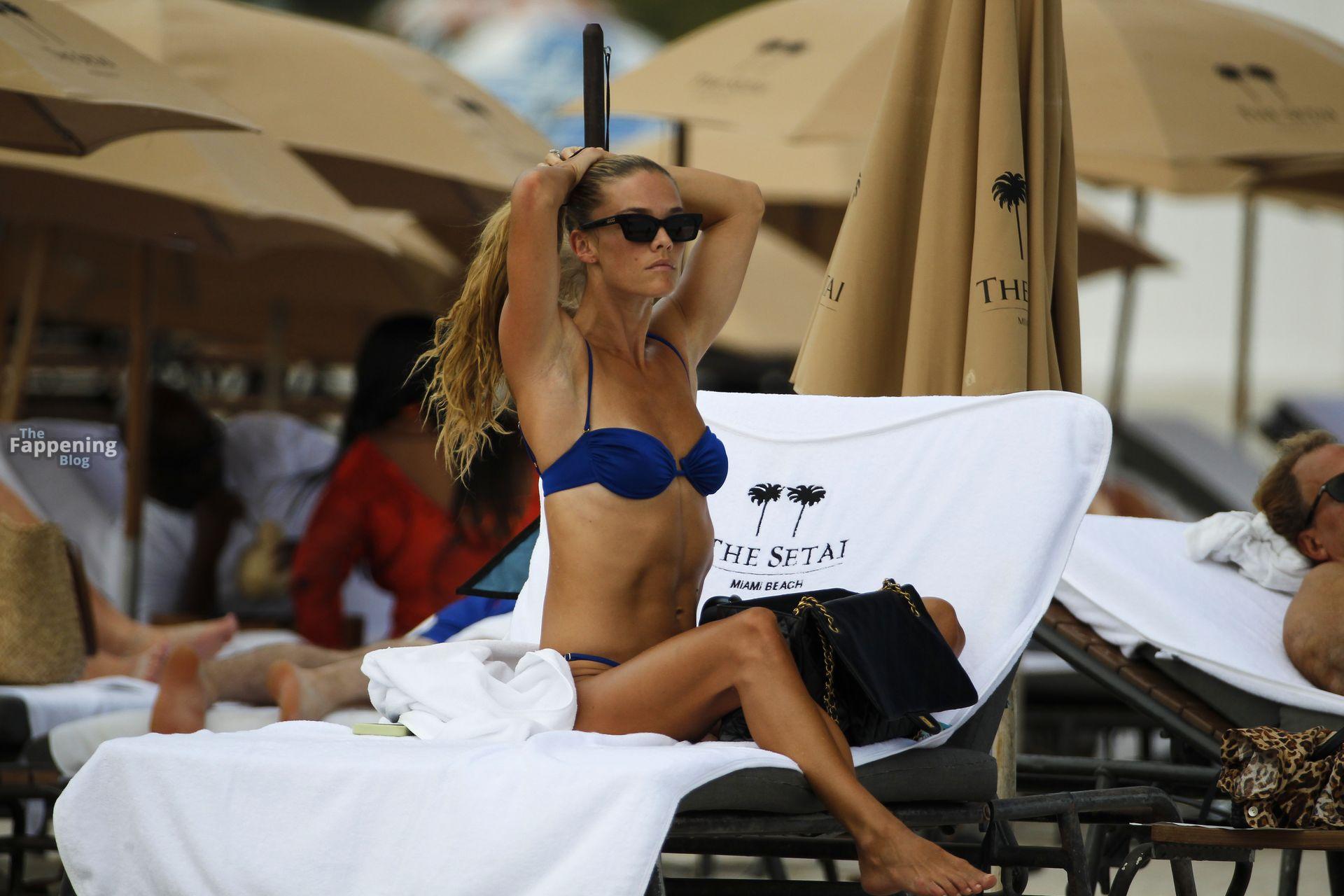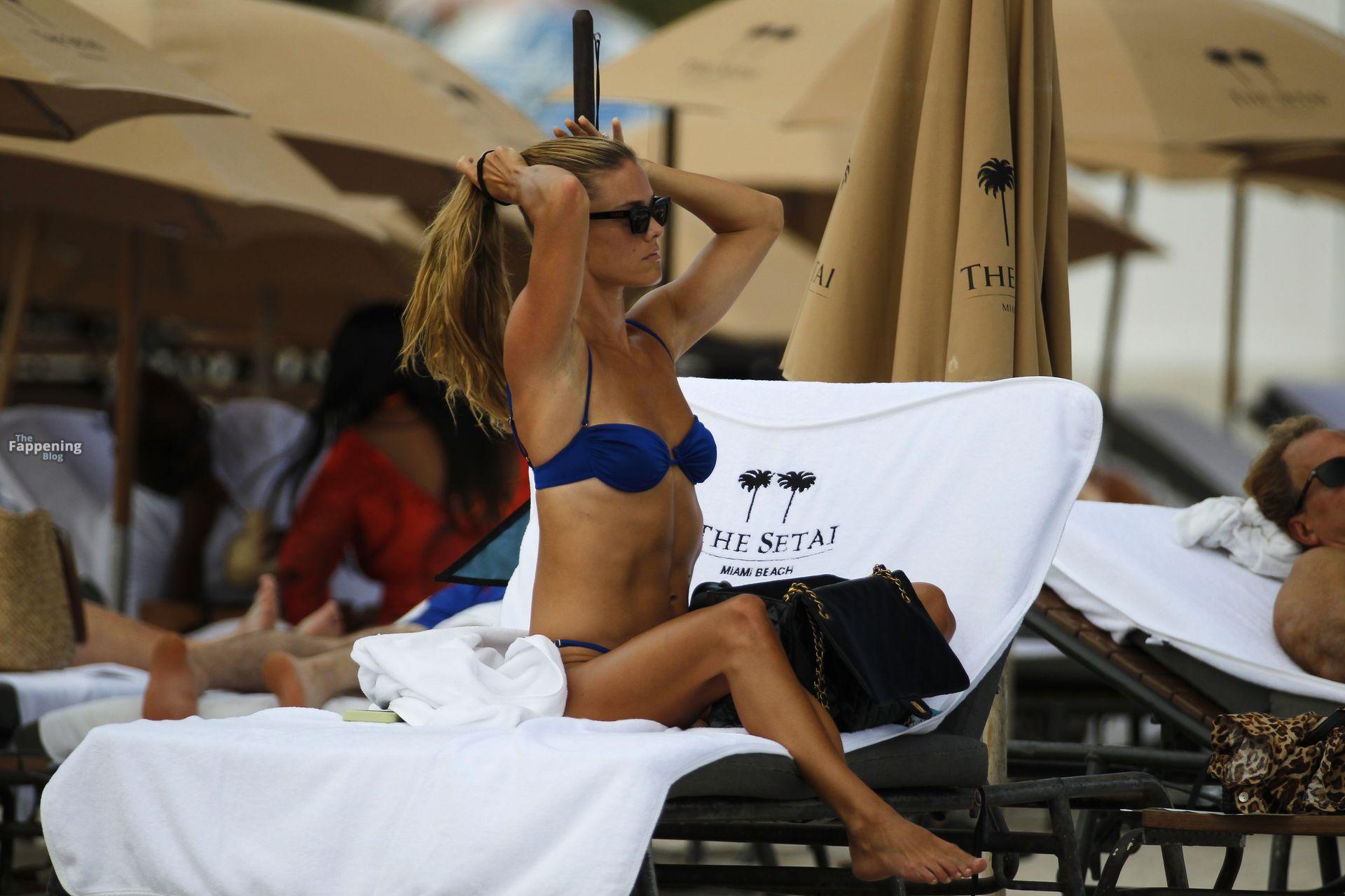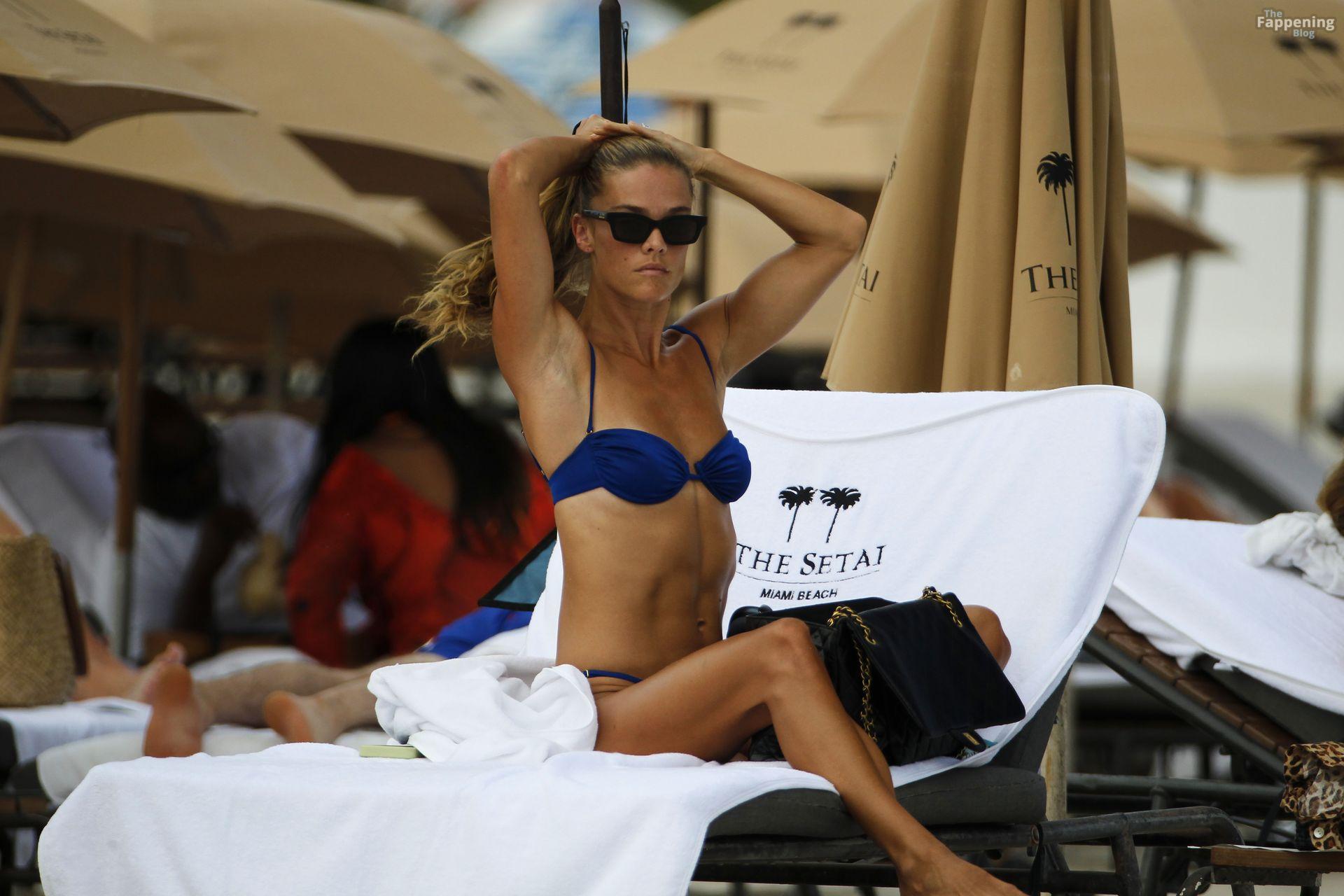 Le mannequin danois Nina Agdal a été aperçue en train de profiter du soleil sur Miami Beach, portant un bikini bleu avant de changer pour une tenue chic à imprimé léopard.