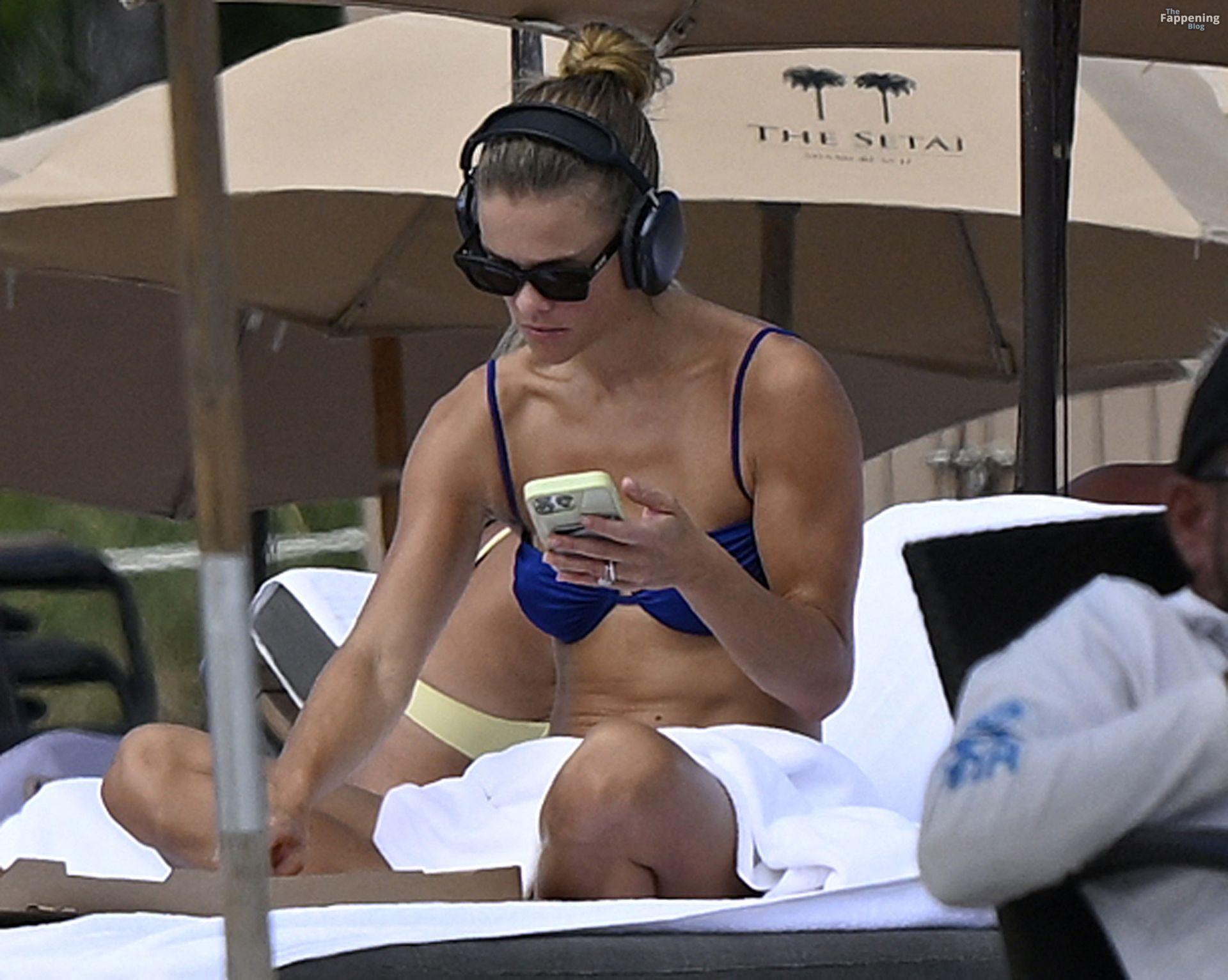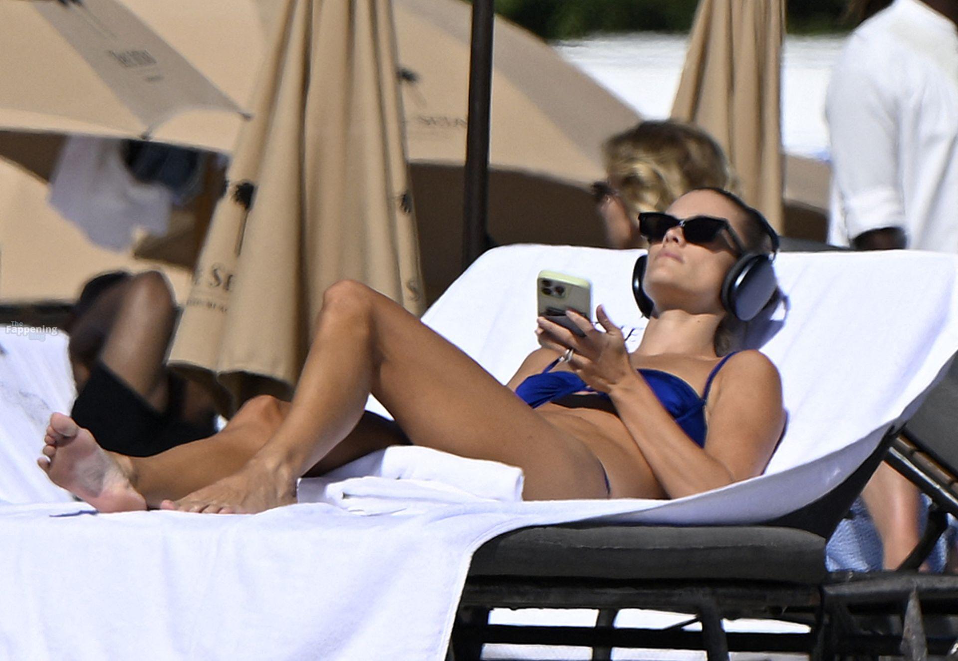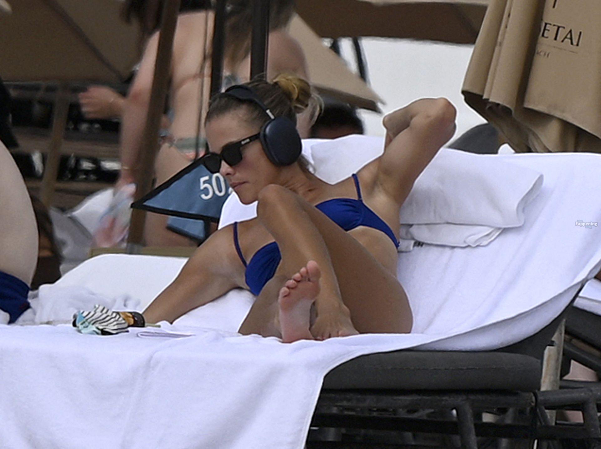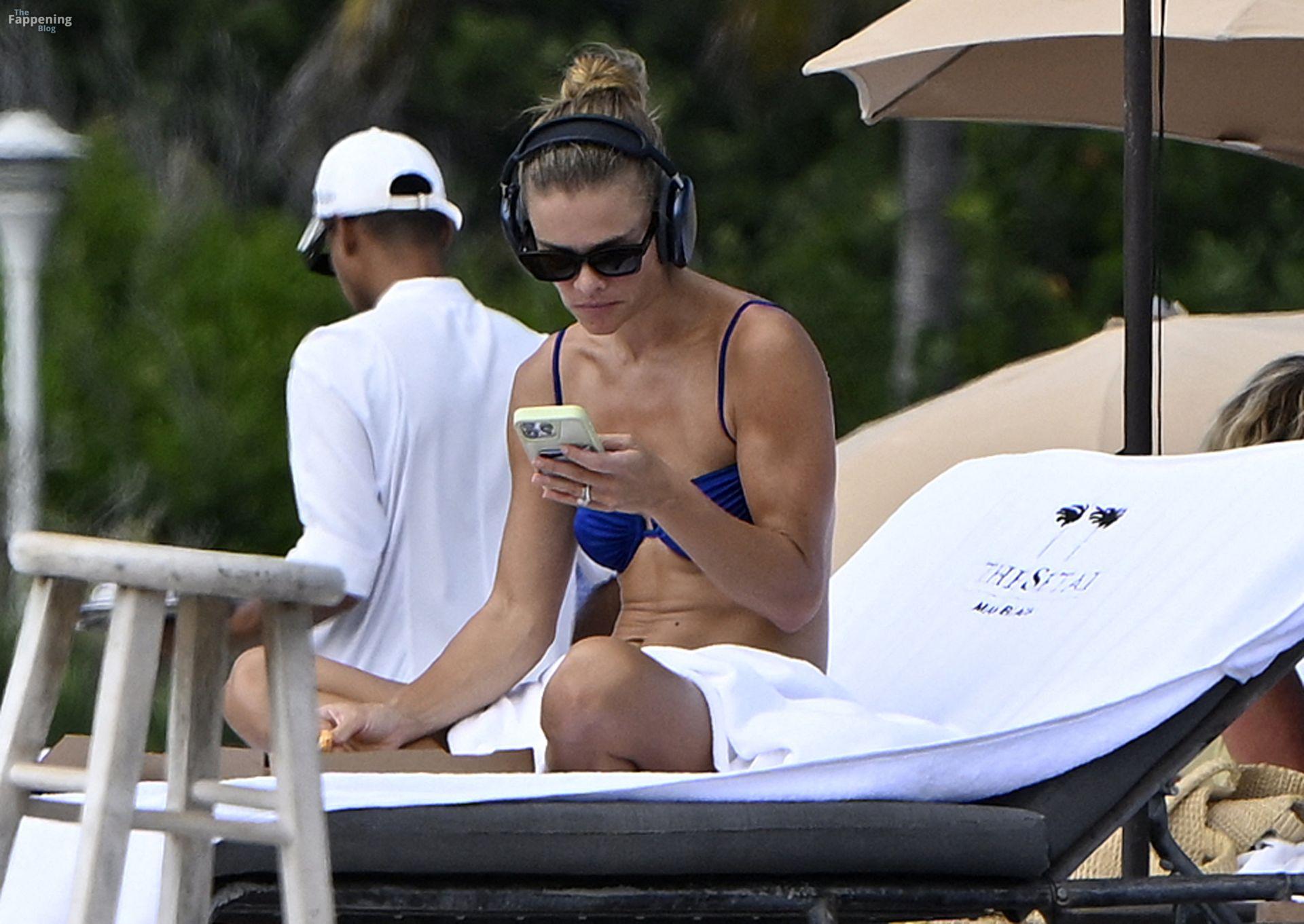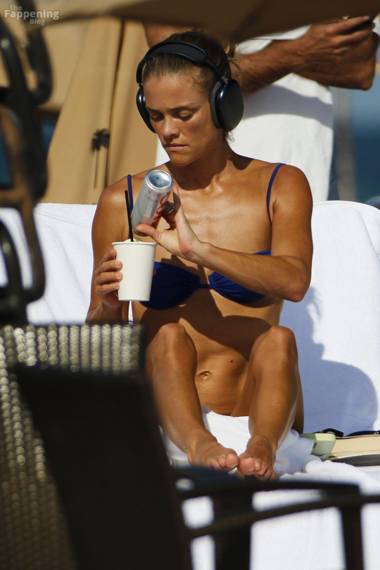 Le mannequin danois Nina Agdal a été aperçue en train de profiter du soleil sur Miami Beach, portant un bikini bleu avant de changer pour une tenue chic à imprimé léopard.