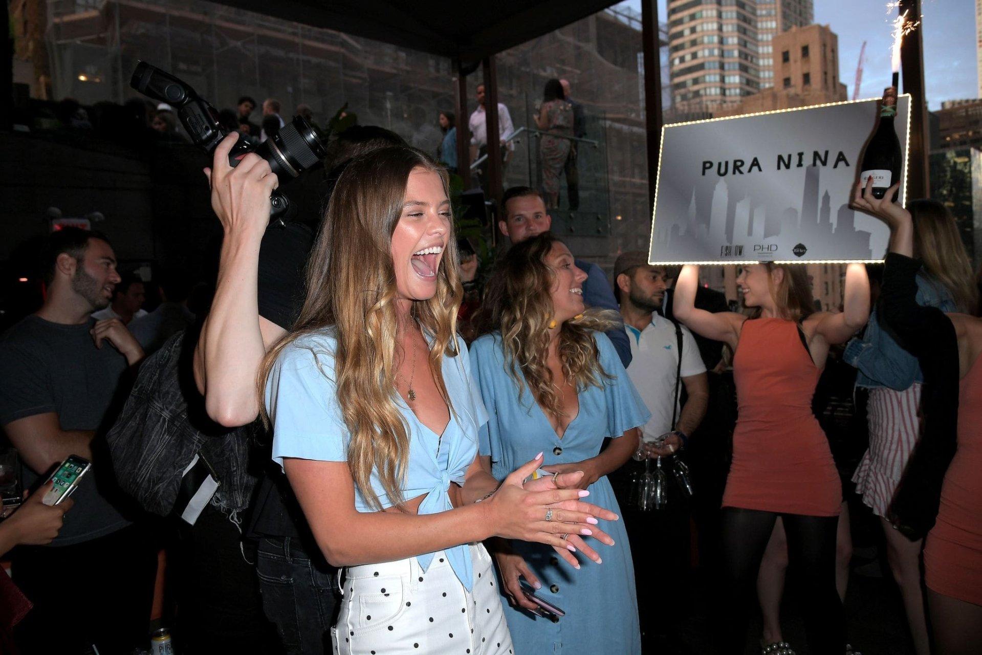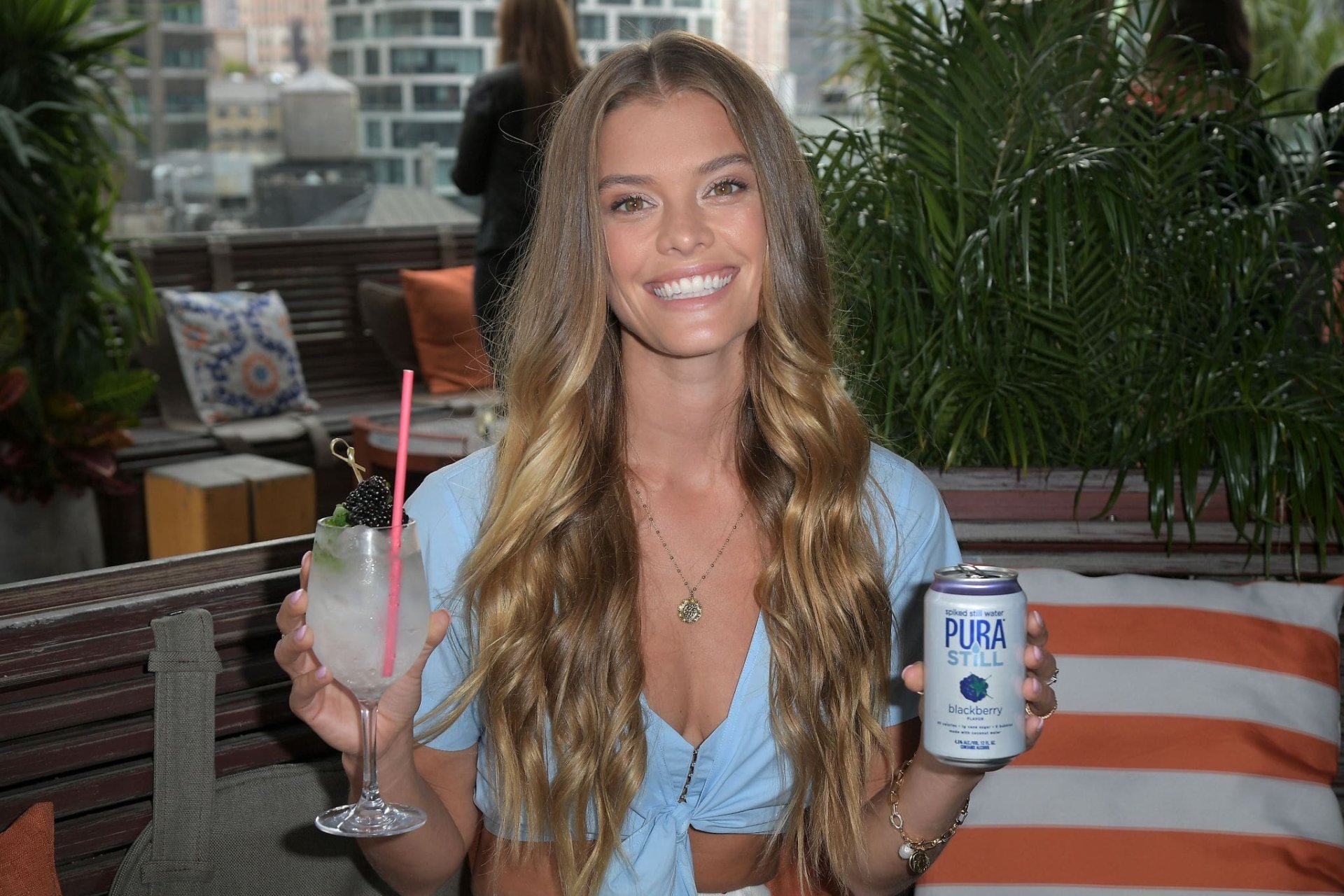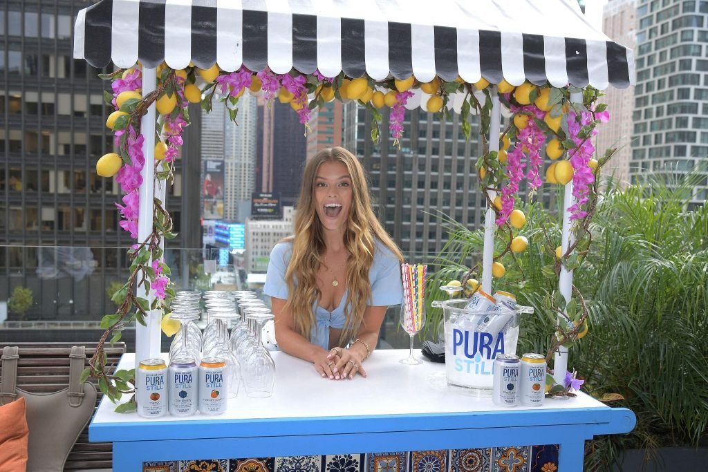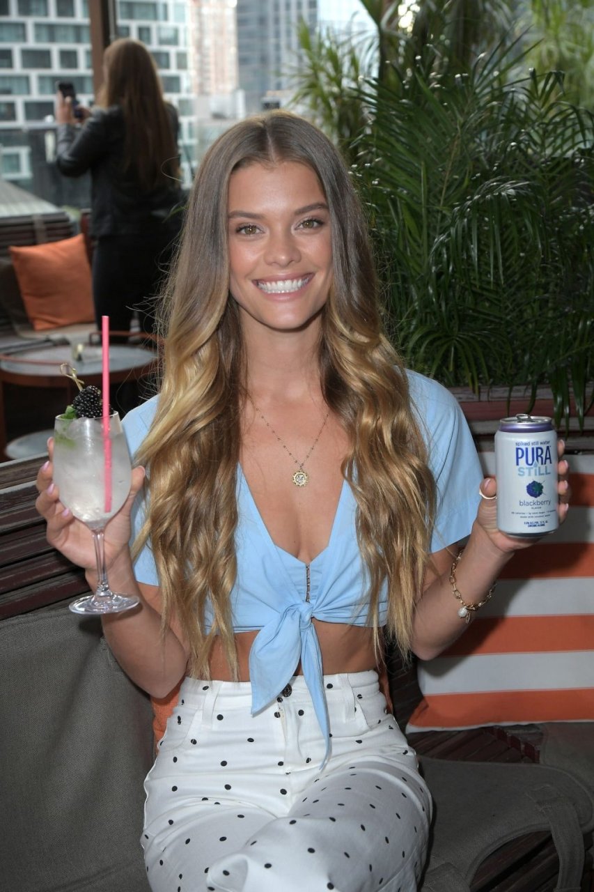 Nina Agdal a été vue au Sip on Summer avec Pura Still à New York, le 27/08/2019. La célèbre mannequin a mis en valeur son décolleté, posant dans un haut bleu.