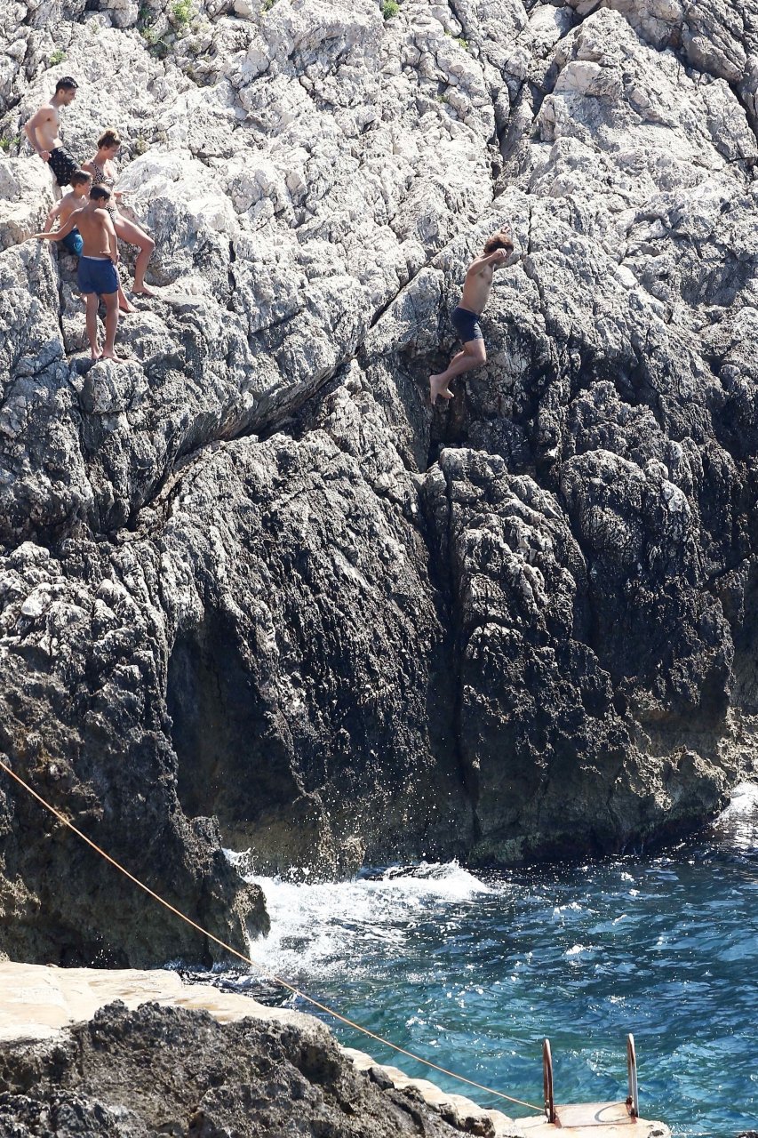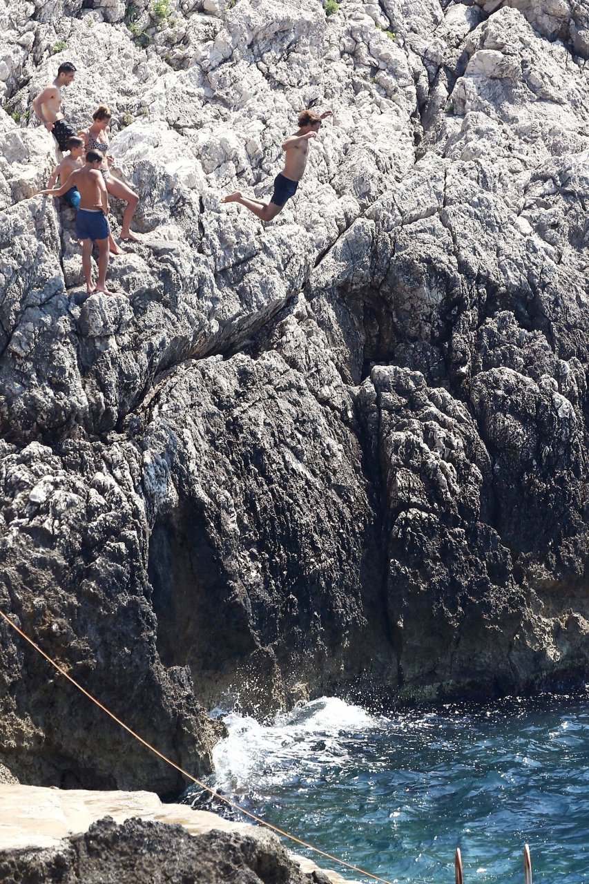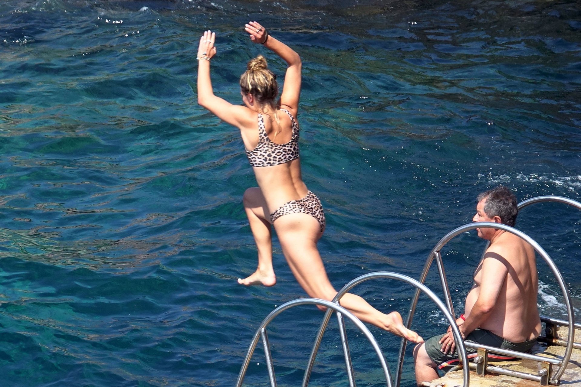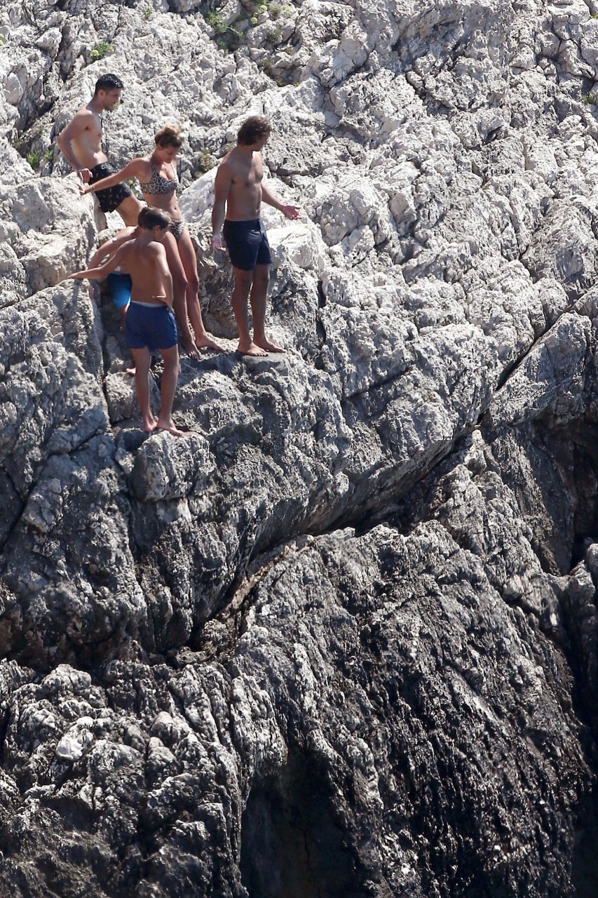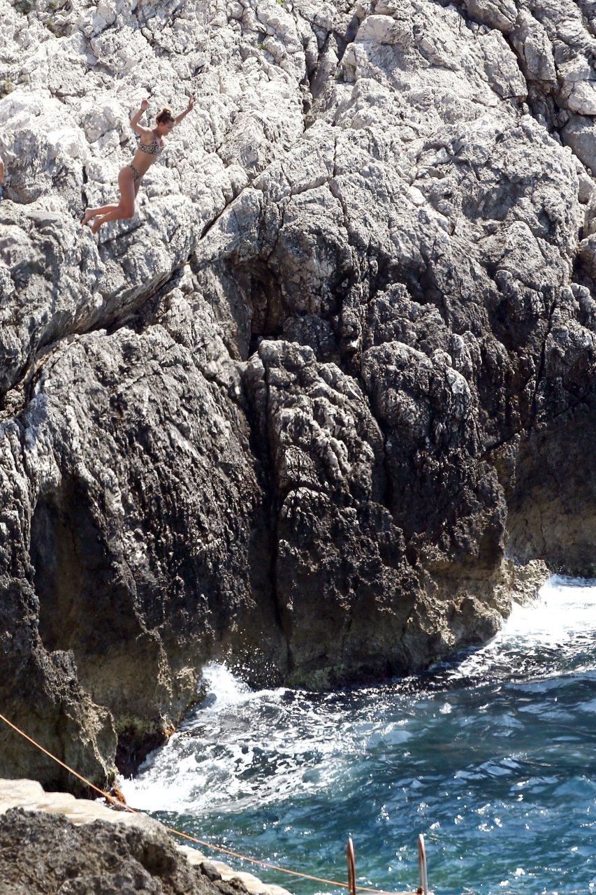 Le mannequin danois Nina Agdal (26 ans) et son petit ami Jack Brinkley-Cook (23 ans) profitent de leurs vacances à Capri, en Italie, le 31/07/2018. Nina portait un bikini imprimé léopard en prenant le soleil et a été photographiée en train d’avoir une séance de démonstration d’affection publique avec Jack. Nina et Jack ont été vus sur les rochers avant de sauter dans la mer pour nager.