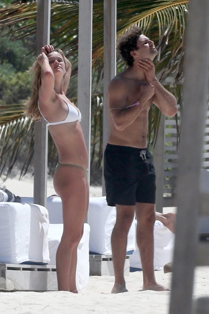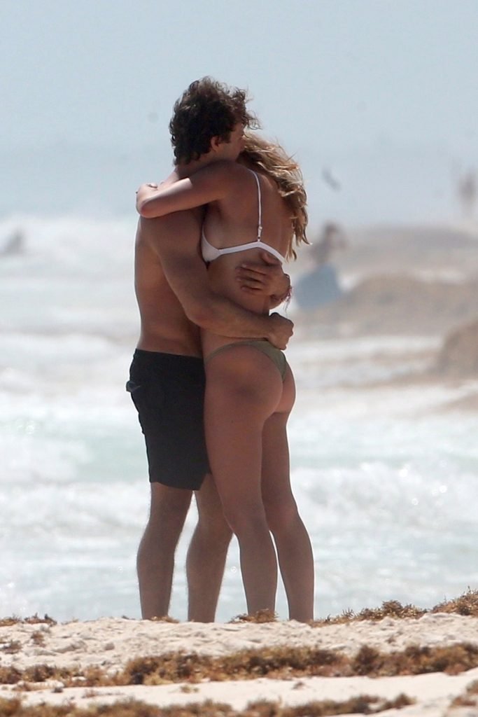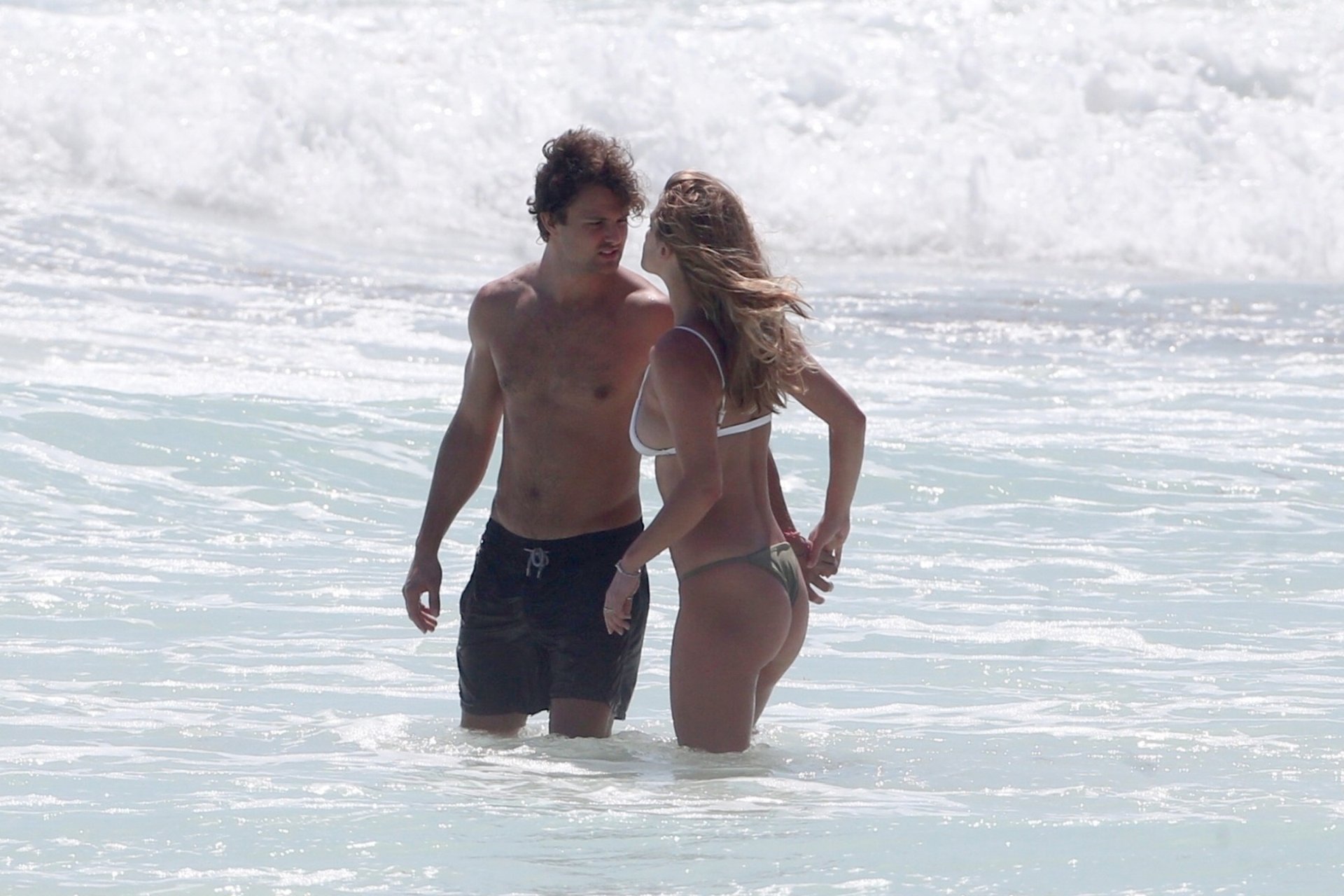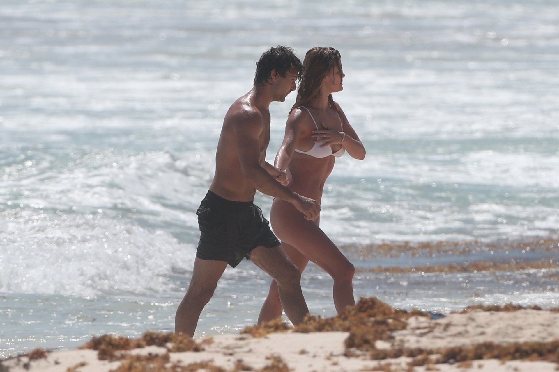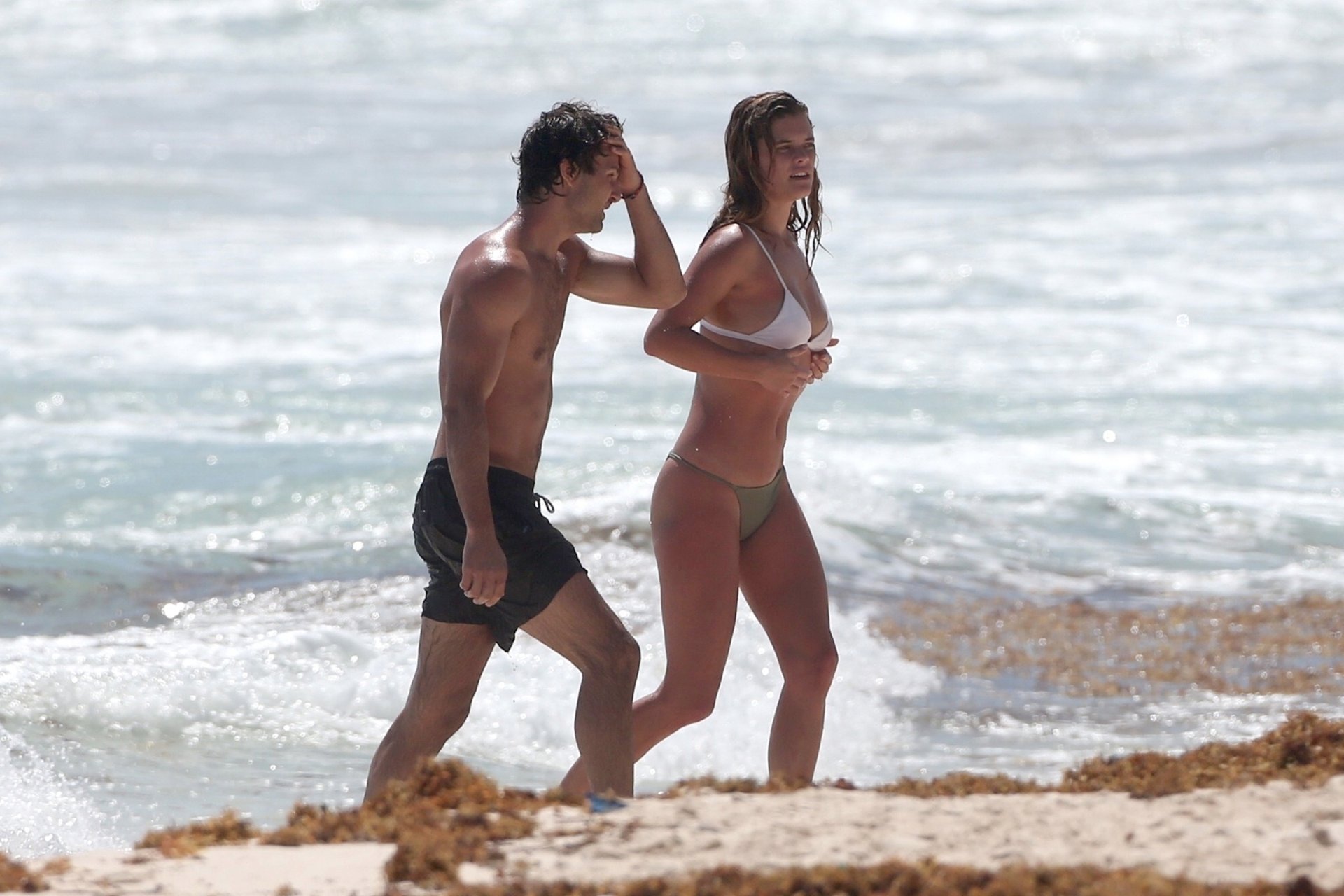 Le mannequin et actrice Nina Agdal, 25 ans, profite d’une journée avec son homme sur la plage de Tulum, 22/02/2018.