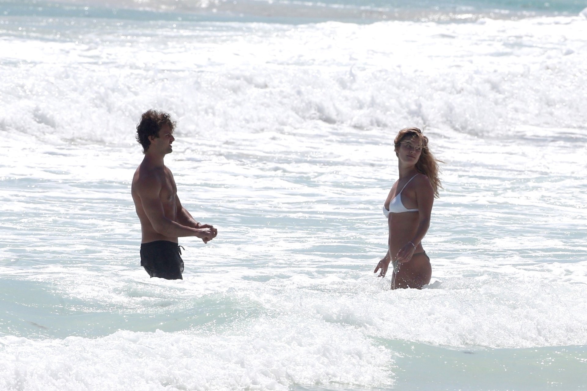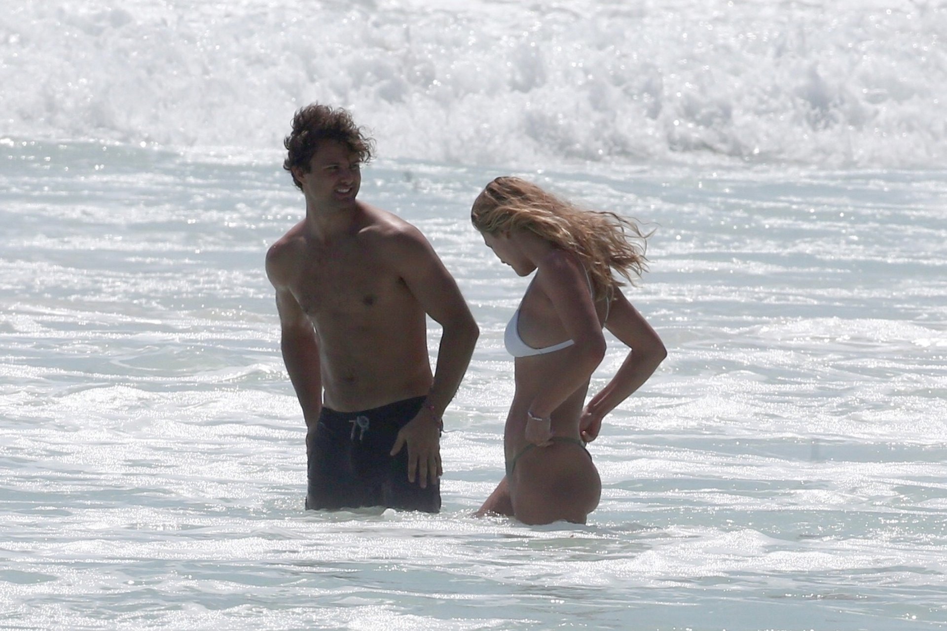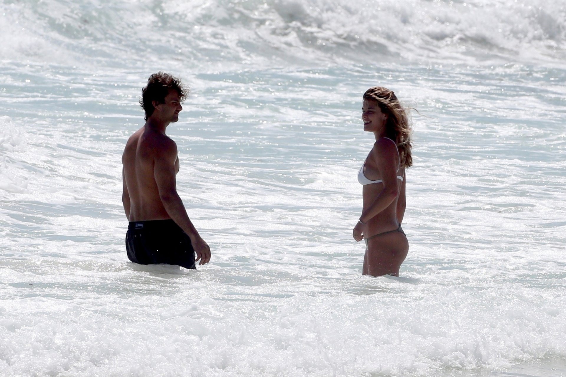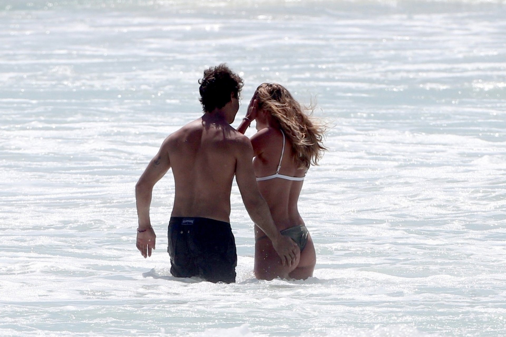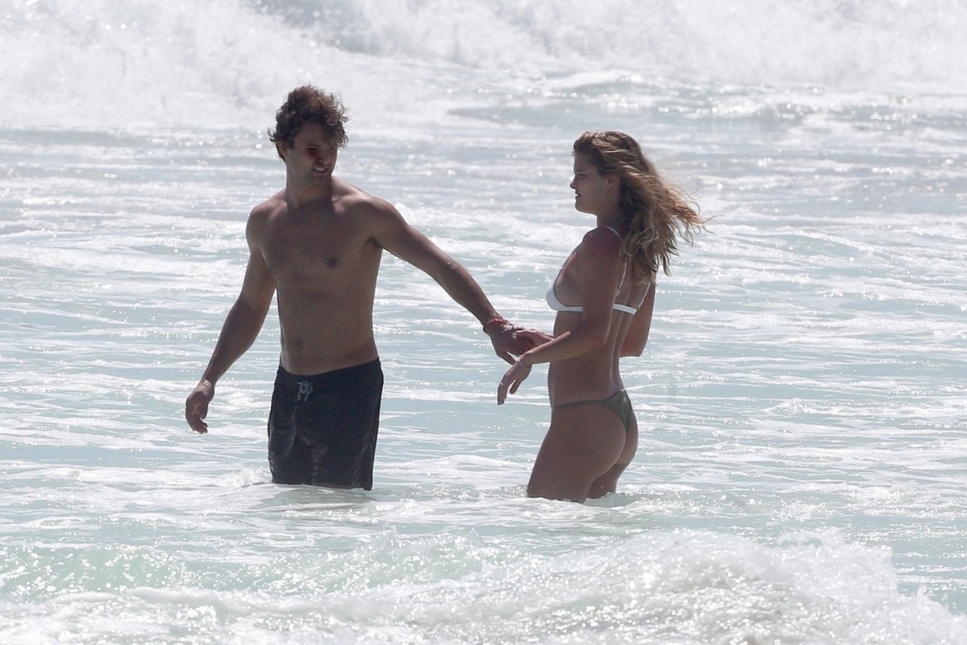 Le mannequin et actrice Nina Agdal, 25 ans, profite d’une journée avec son homme sur la plage de Tulum, 22/02/2018.