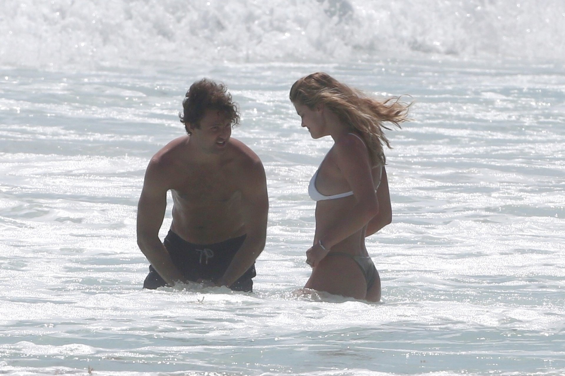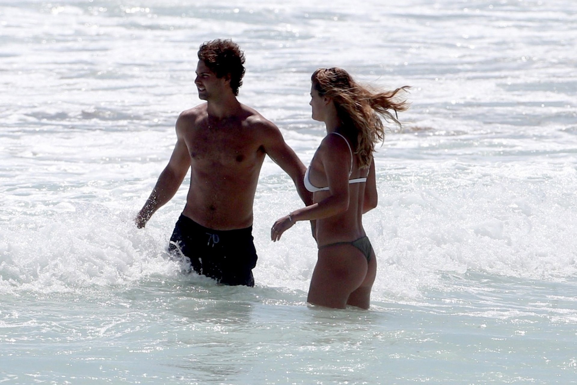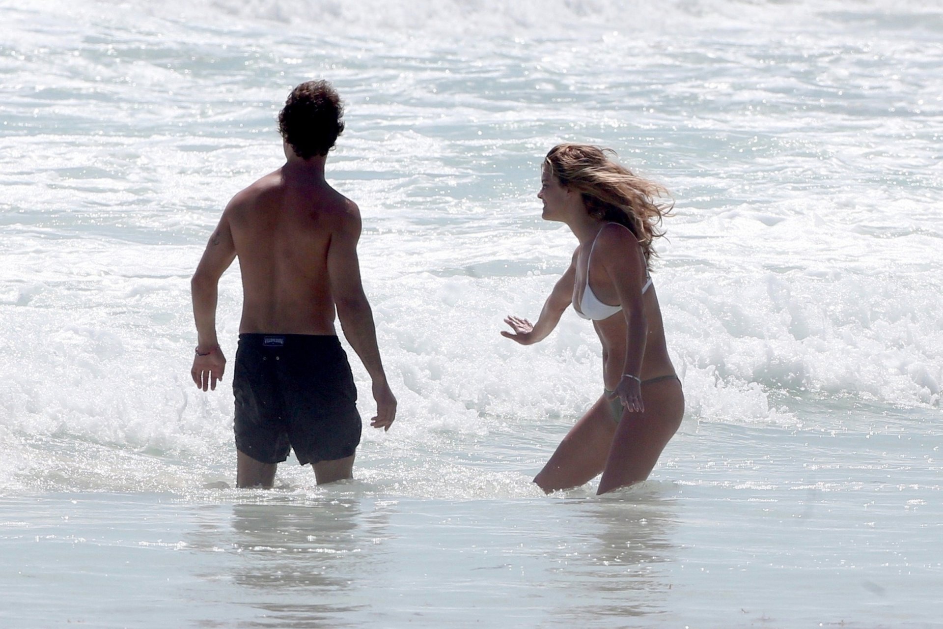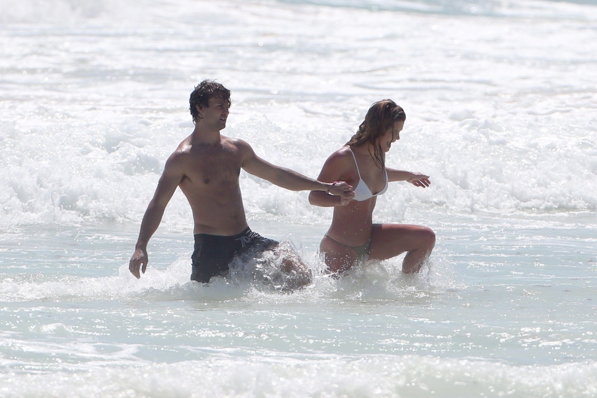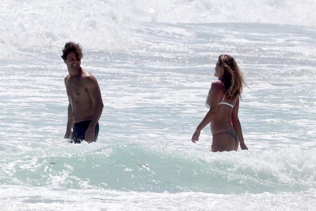 Le mannequin et actrice Nina Agdal, 25 ans, profite d’une journée avec son homme sur la plage de Tulum, 22/02/2018.
