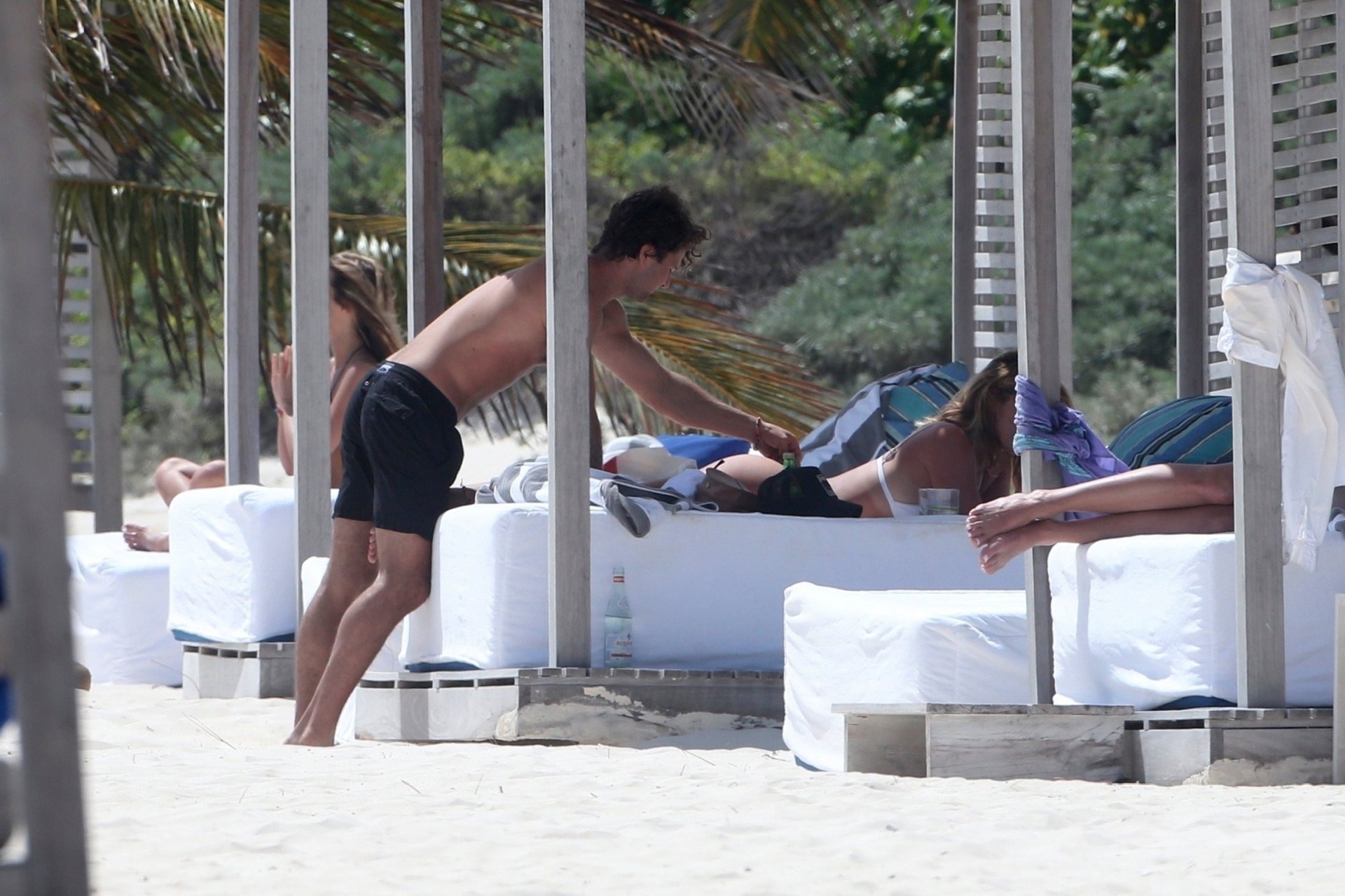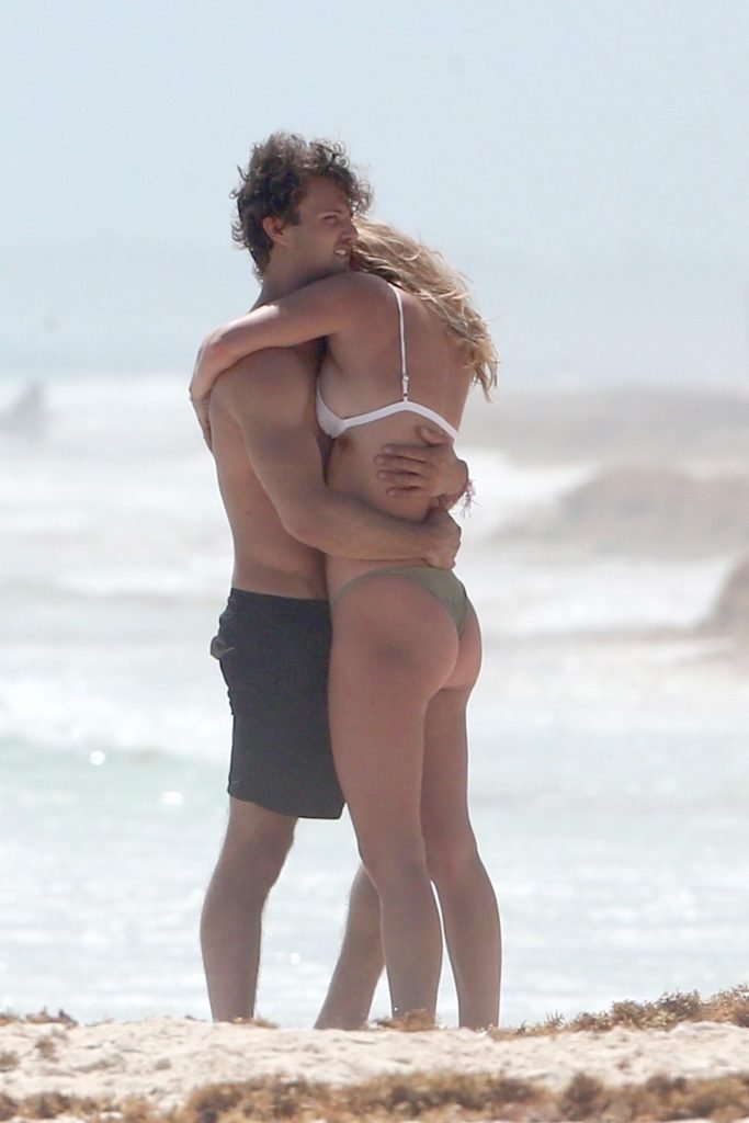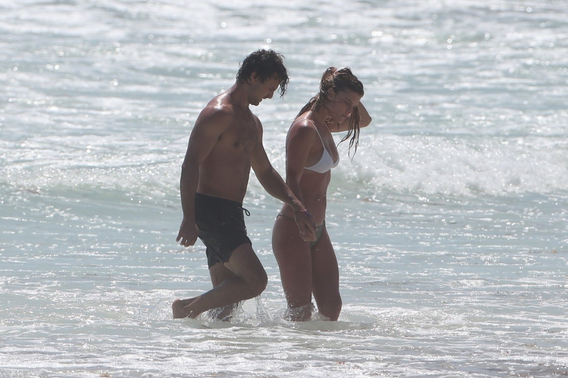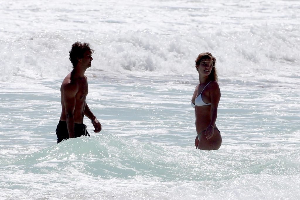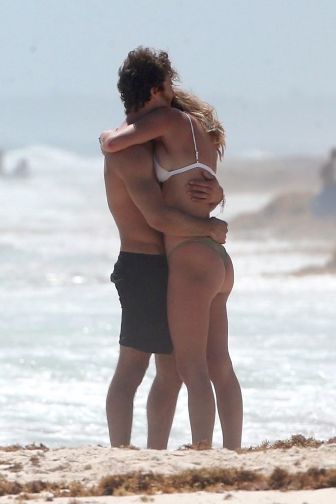 Le mannequin et actrice Nina Agdal, 25 ans, profite d’une journée avec son homme sur la plage de Tulum, 22/02/2018.