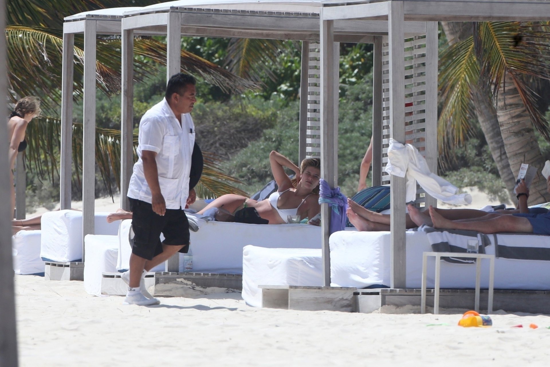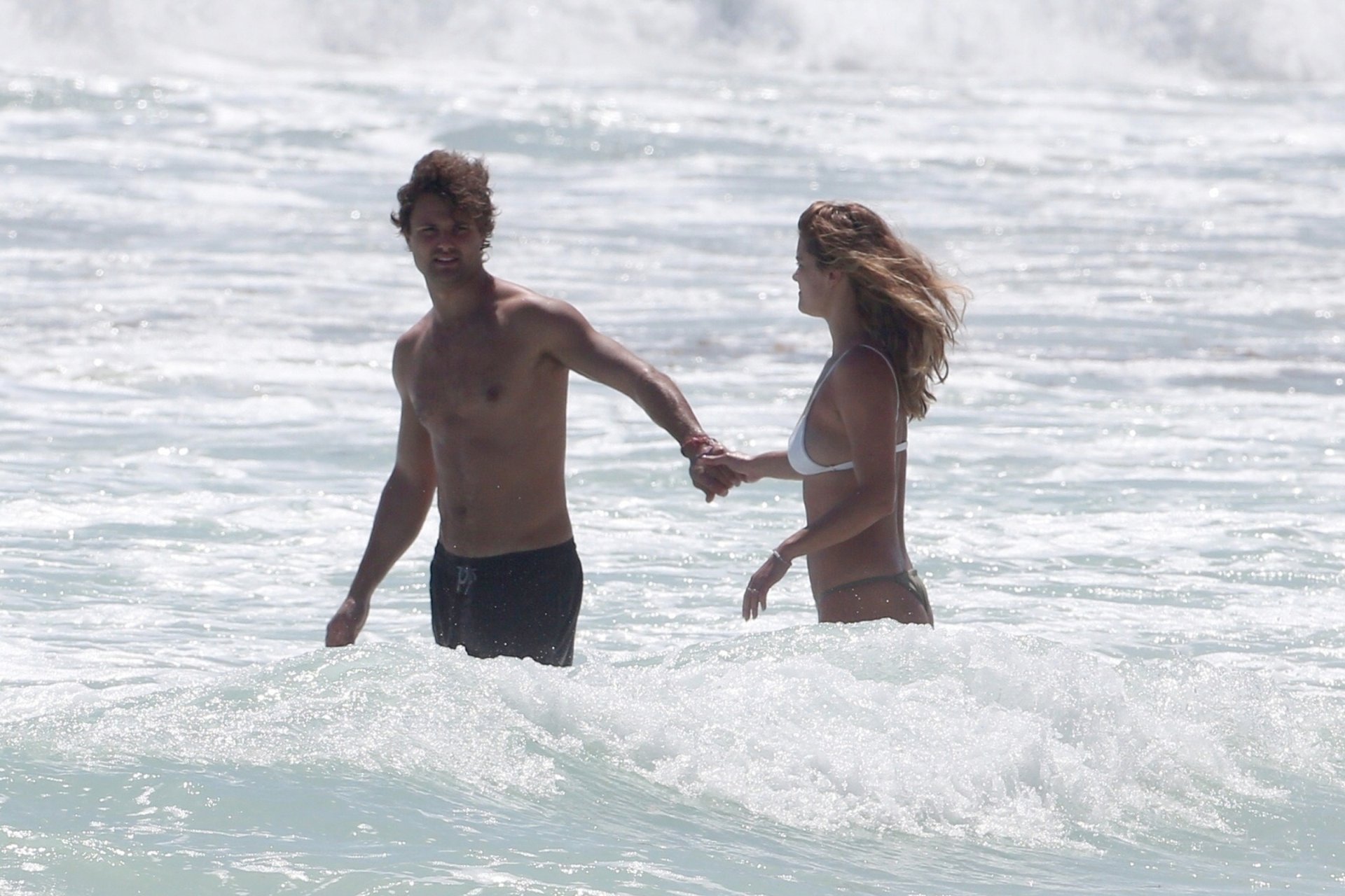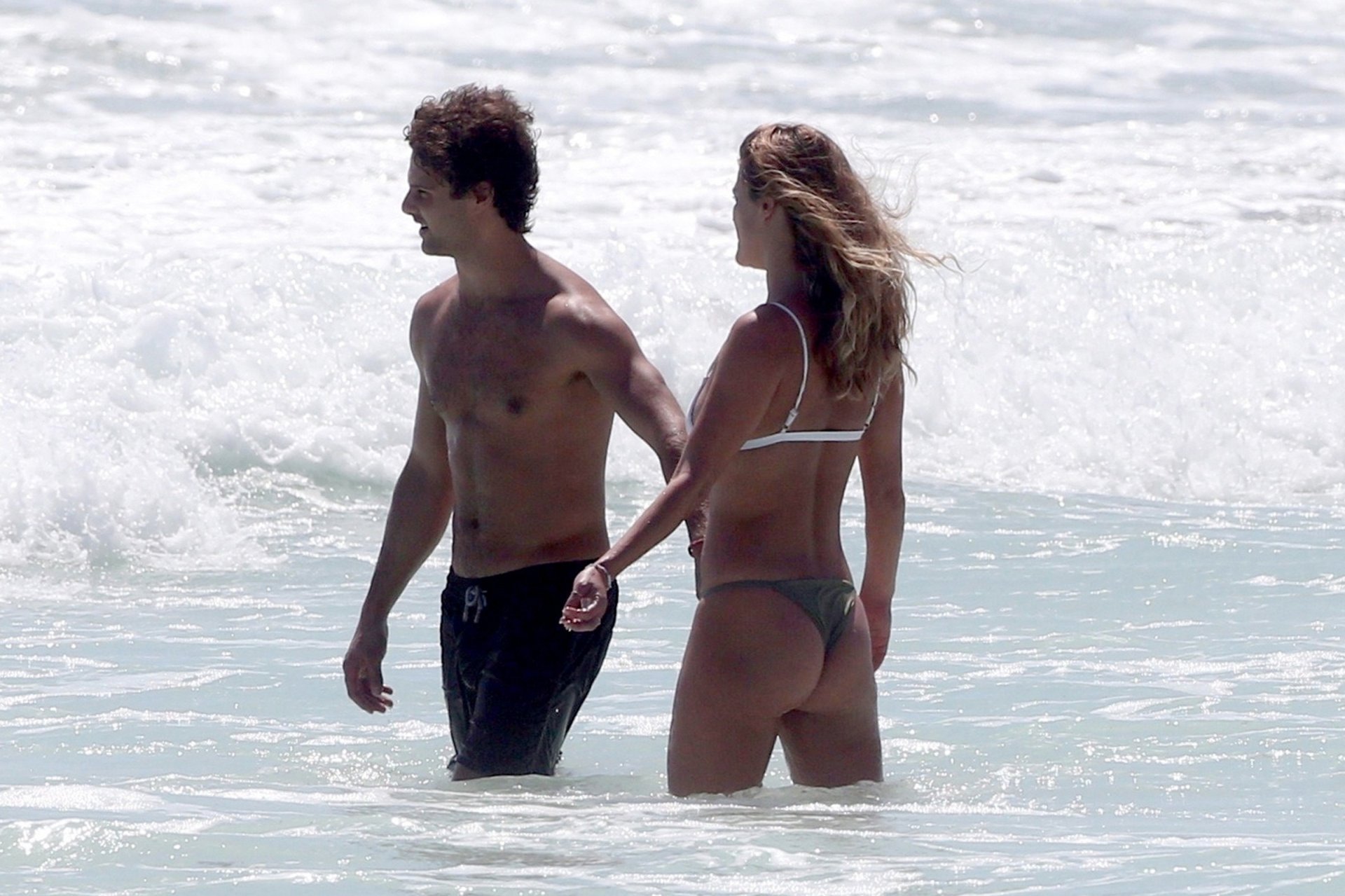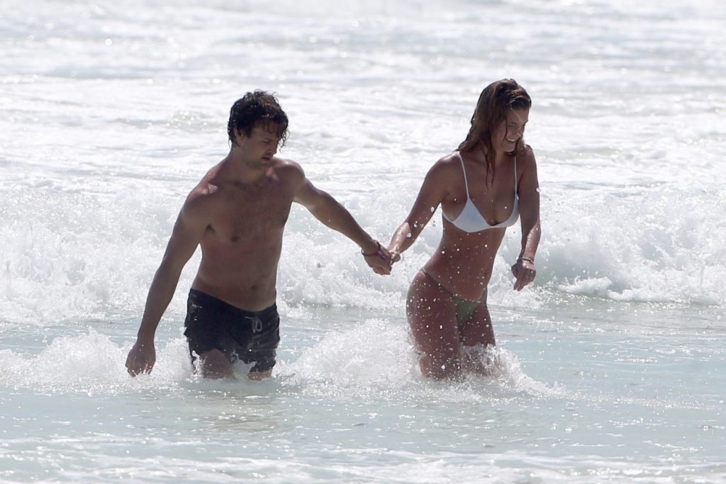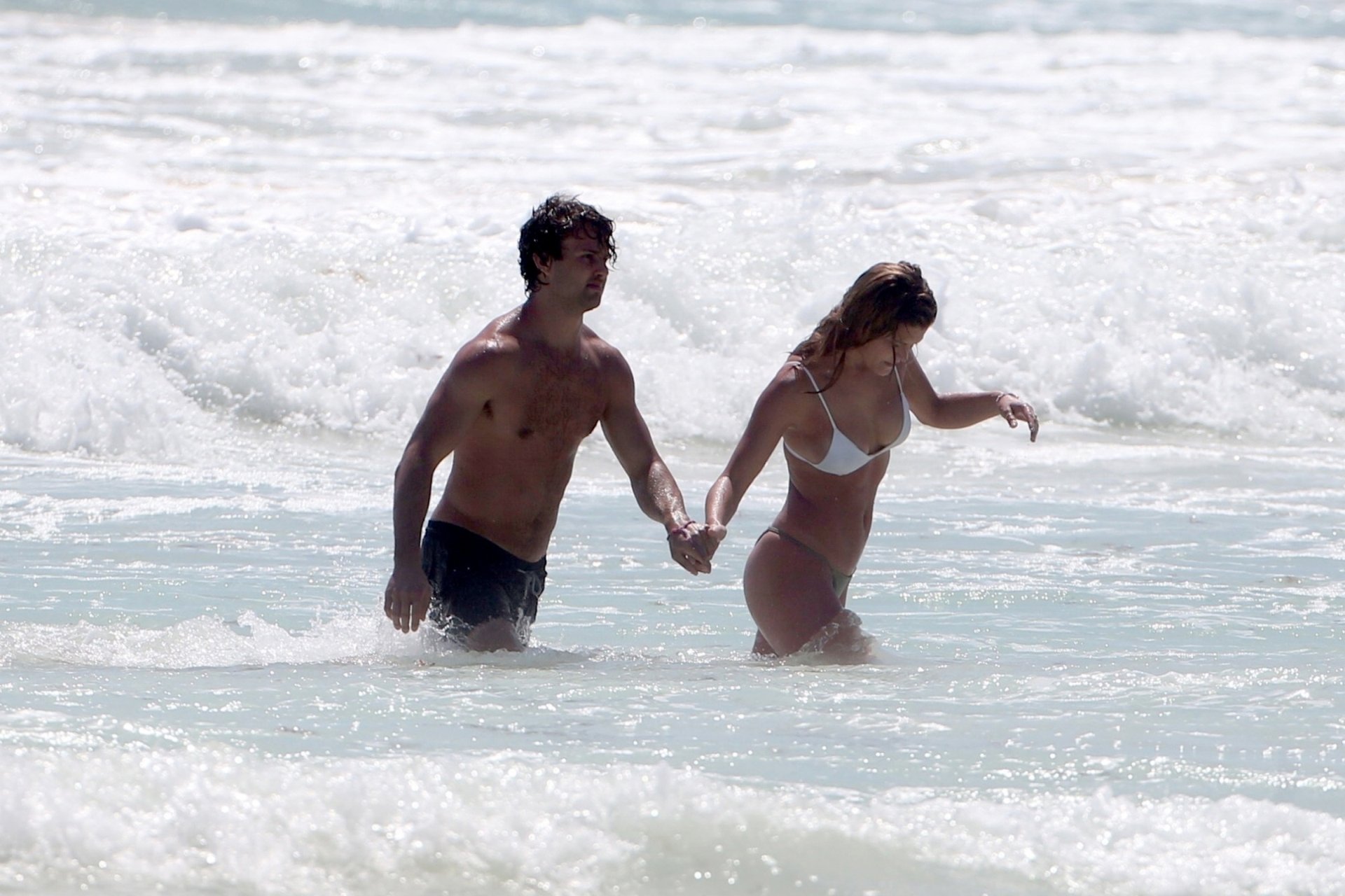Le mannequin et actrice Nina Agdal, 25 ans, profite d’une journée avec son homme sur la plage de Tulum, 22/02/2018.