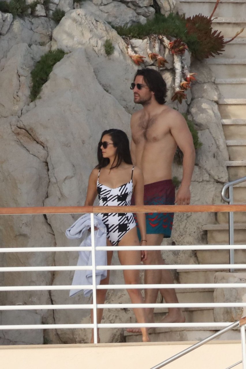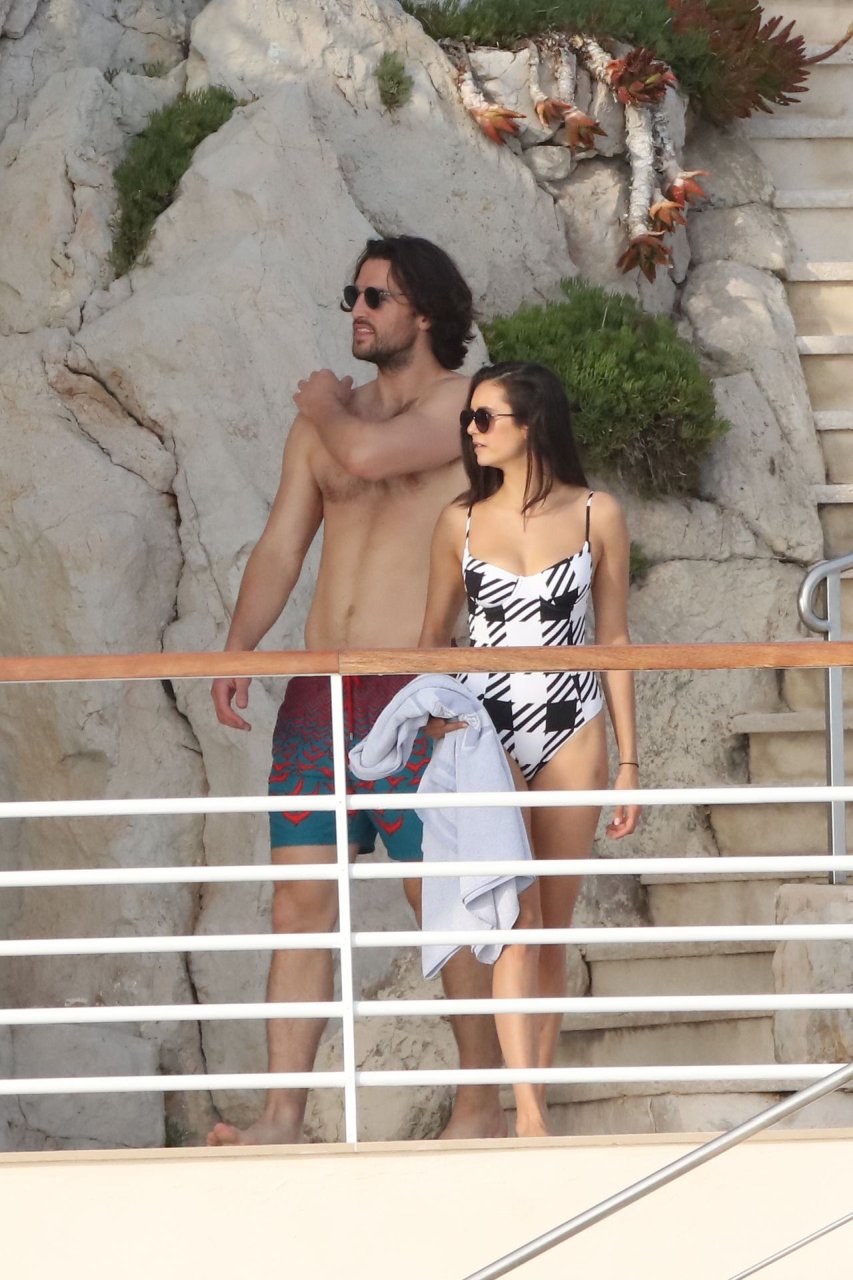 Alors que d’autres stars posent pour les photographes sur le tapis rouge du festival de Cannes, la star de “Vampire Diaries” Nina Dobrev profite d’une journée à l’Hôtel du Cap-Eden-Roc à Antibes avec Grant Mellon. Nina a été photographiée en maillot de bain une pièce blanc-noir, en train de câliner et d’embrasser son petit ami.