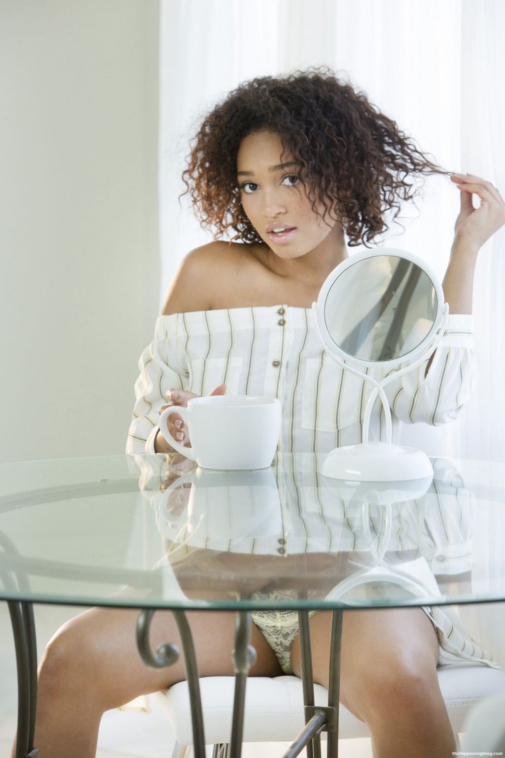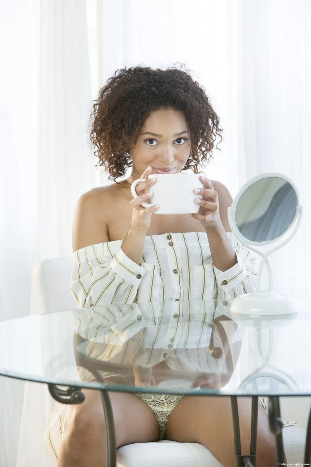 Curly babe Noelle Monique montre son corps nu dans une séance photo “L’Aube” pour Playboy (2017). C’est un bon matin avec une tasse de café et une belle fille !