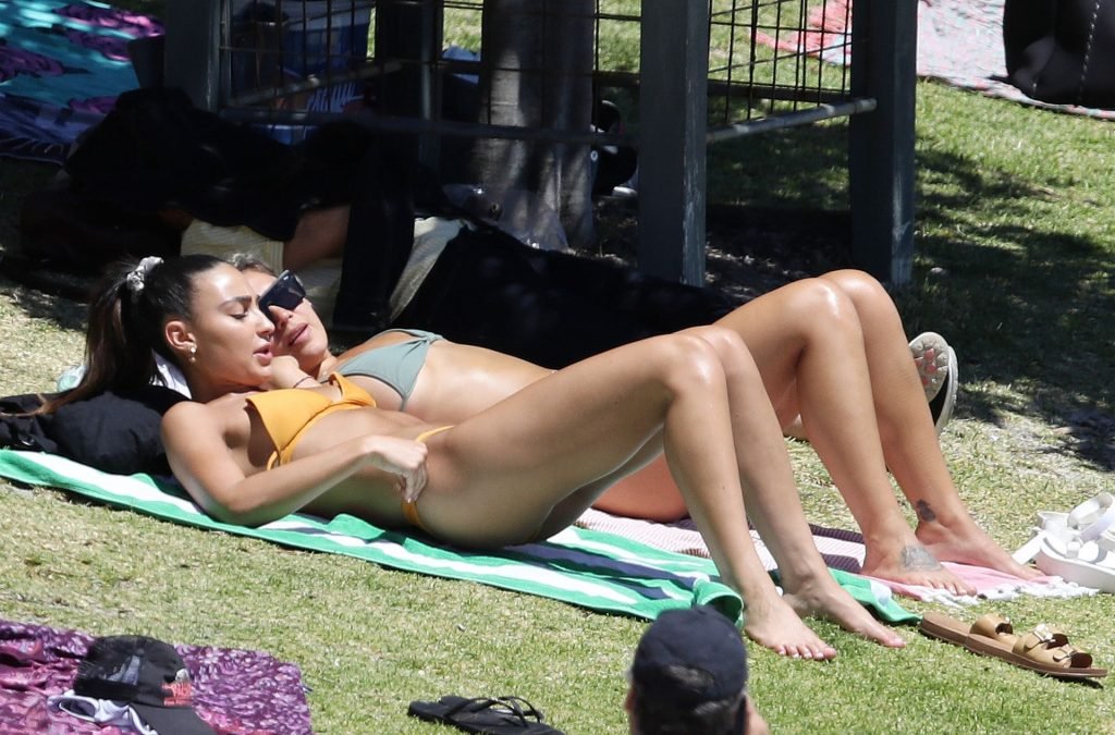Bachelorette rencontre Love Island ! Les stars de la télé-réalité Noni Janur et Tayla Damir ont été photographiées en train de profiter d’un bain froid à Sydney, le 27/10/2019.