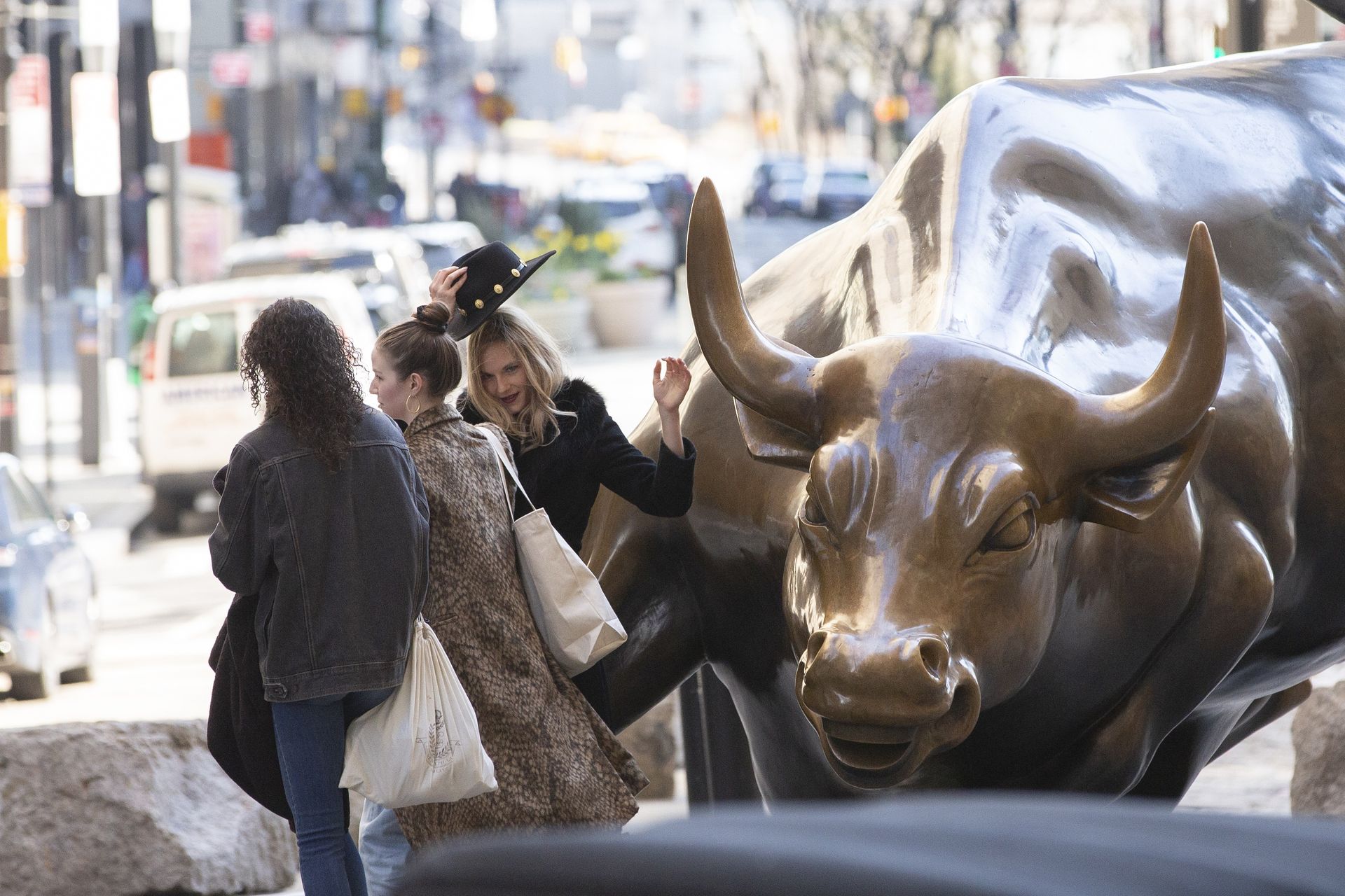 Avec la quarantaine en vigueur et les rues vides, personne n’était là pour empêcher la cowgirl insouciante d’enfourcher l’icône en bronze du quartier financier. Lorsqu’elle a aperçu un photographe du Post, la cavalière du taureau s’est enfuie avec un ami qui prenait des photos avec un iPhone.