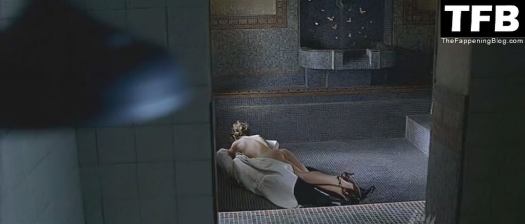 La star de “Hitman” Olga Kurylenko se tient dans une pièce carrelée pendant qu’un homme la déshabille, montrant ses seins, ses fesses et son pubis alors qu’elle est nue, portant seulement une paire de talons. Elle s’allonge ensuite par terre, écartant un peu les jambes tandis que l’homme s’allonge avec elle et elle se retourne au-dessus de lui.