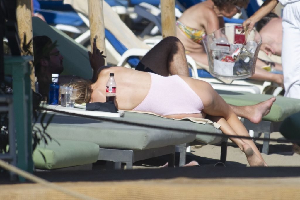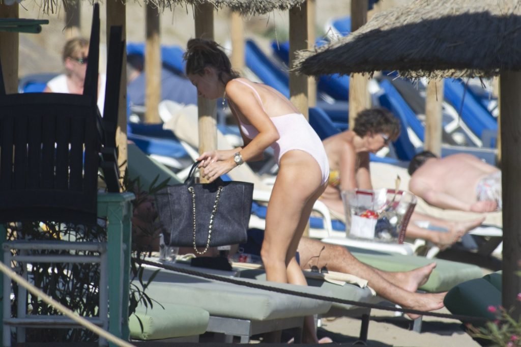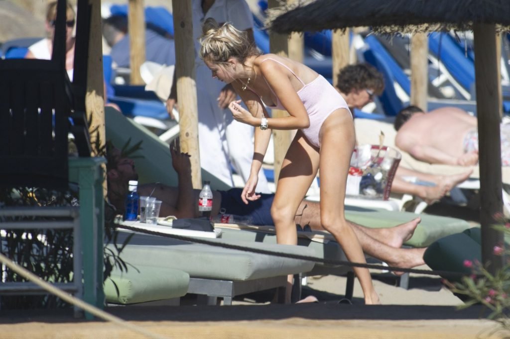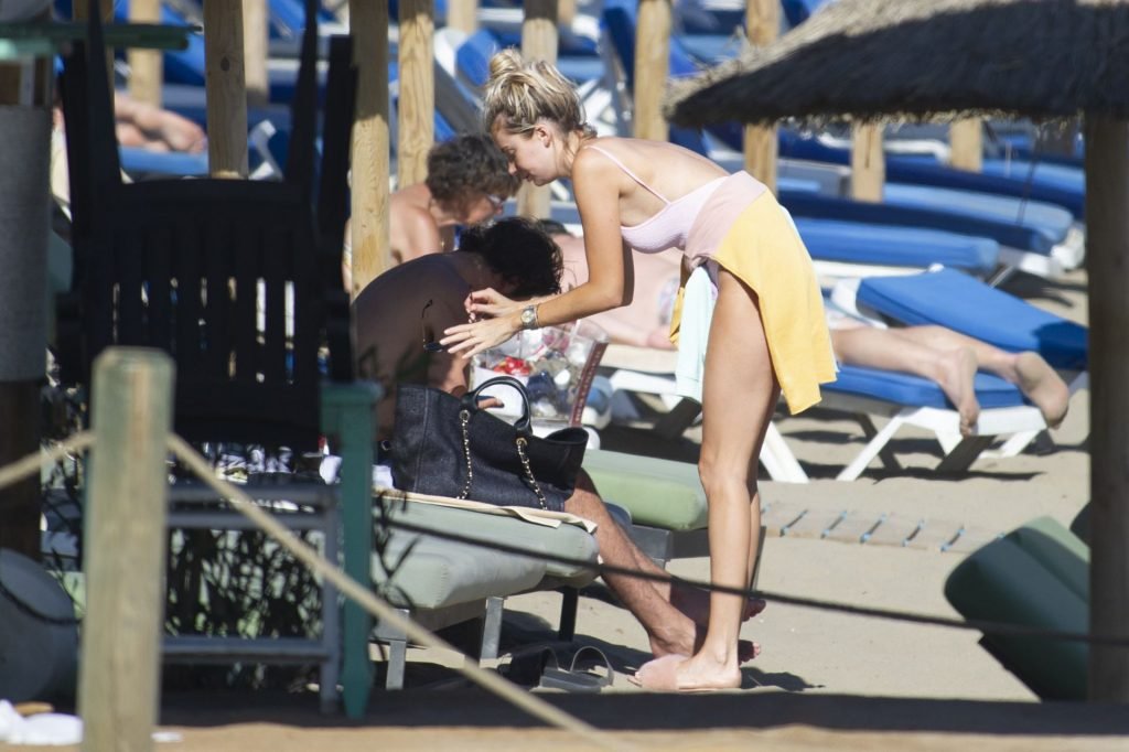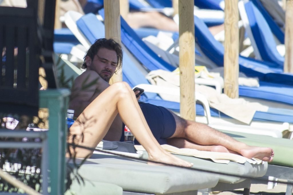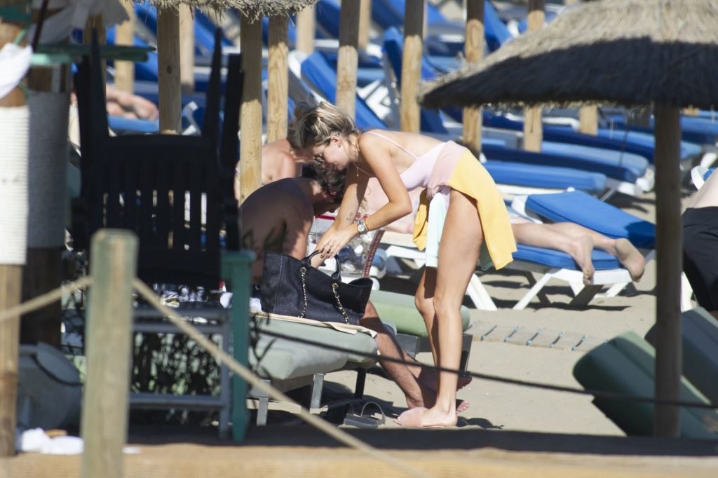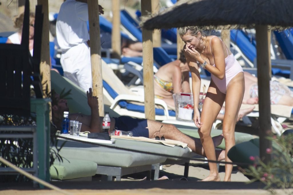 La star anglaise de la télé-réalité Olivia Attwood et son petit ami, le footballeur Bradley Dack, sont vus sur une plage à Marbella, le 06/10/2019.