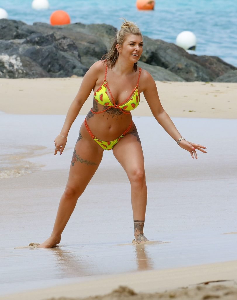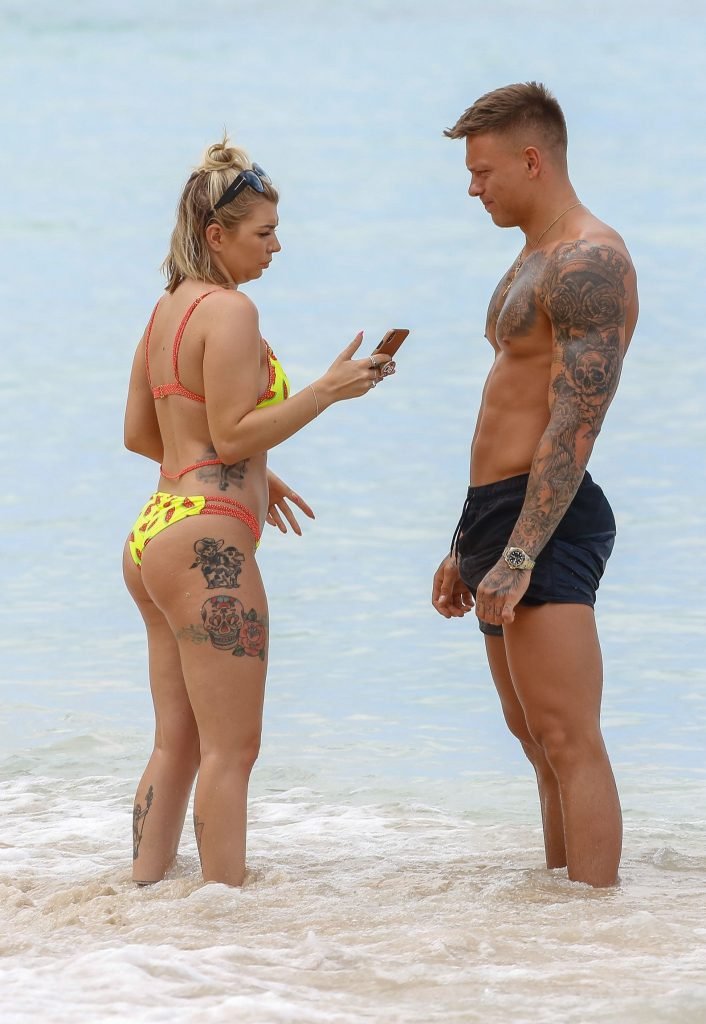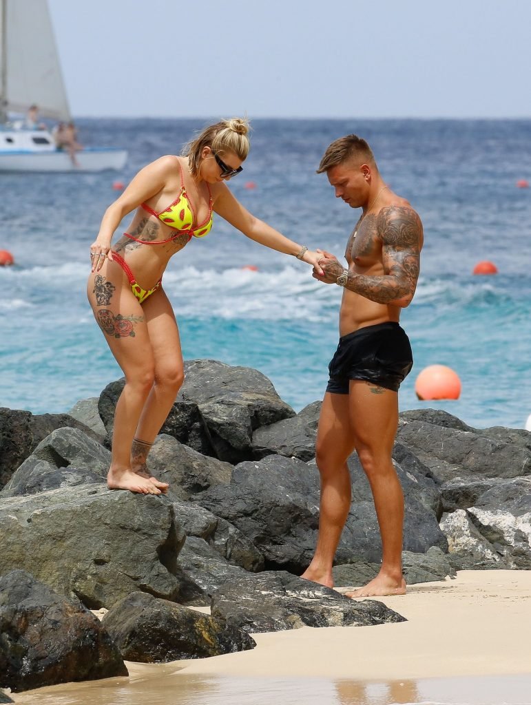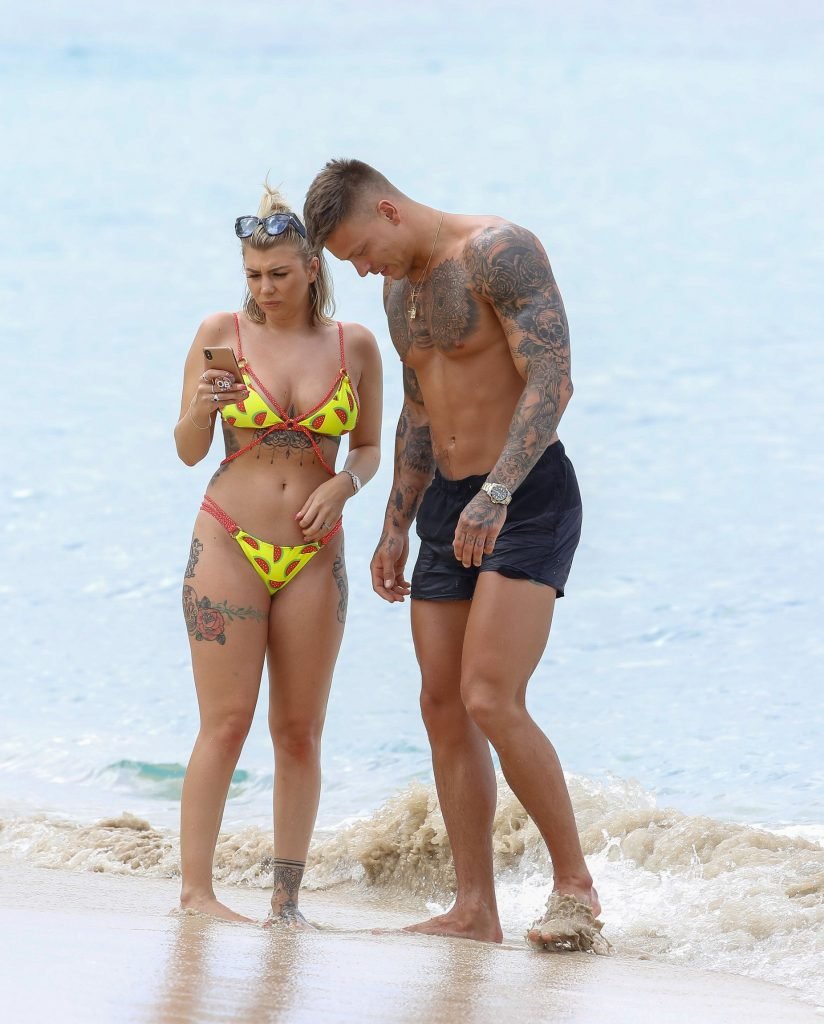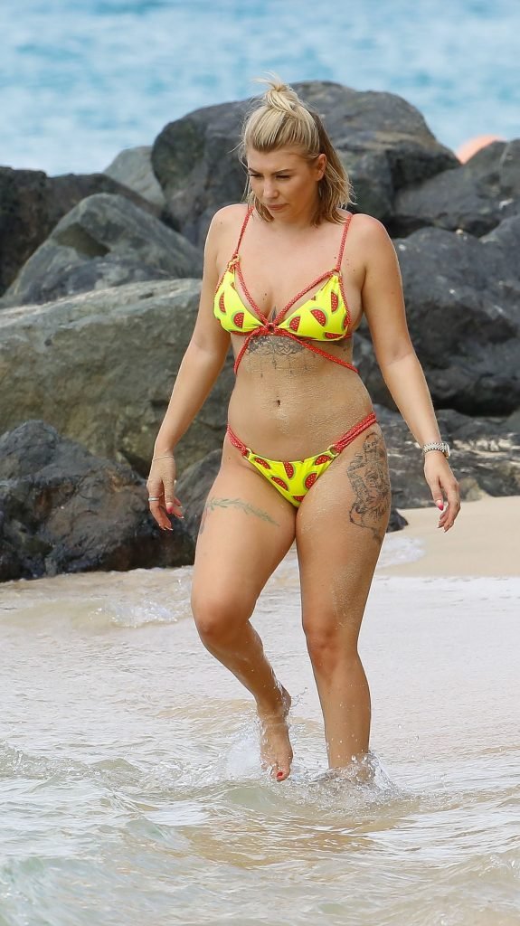 La star de la télévision Olivia Buckland (25 ans) et son compagnon Alex Bowen ont été aperçus avec d’autres amis en vacances à la Barbade, le 15/03/2018. Le couple amoureux a pris quelques photos sur la plage pour leur collection. Cette fois, Olivia a frappé les paparazzis avec un bikini jaune orné de pastèques.