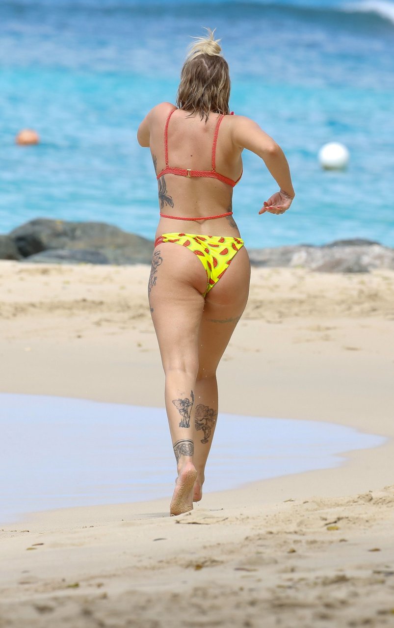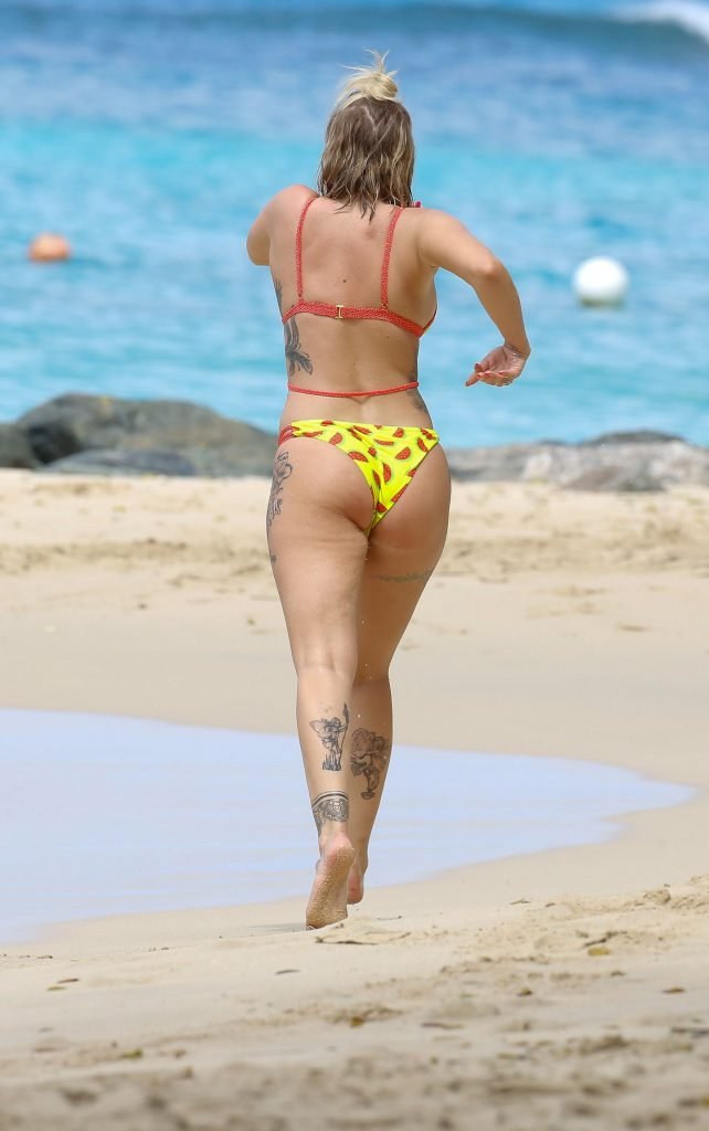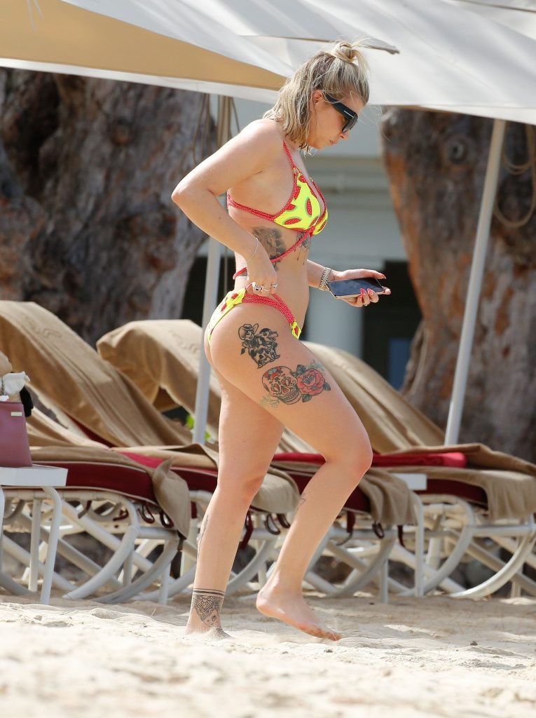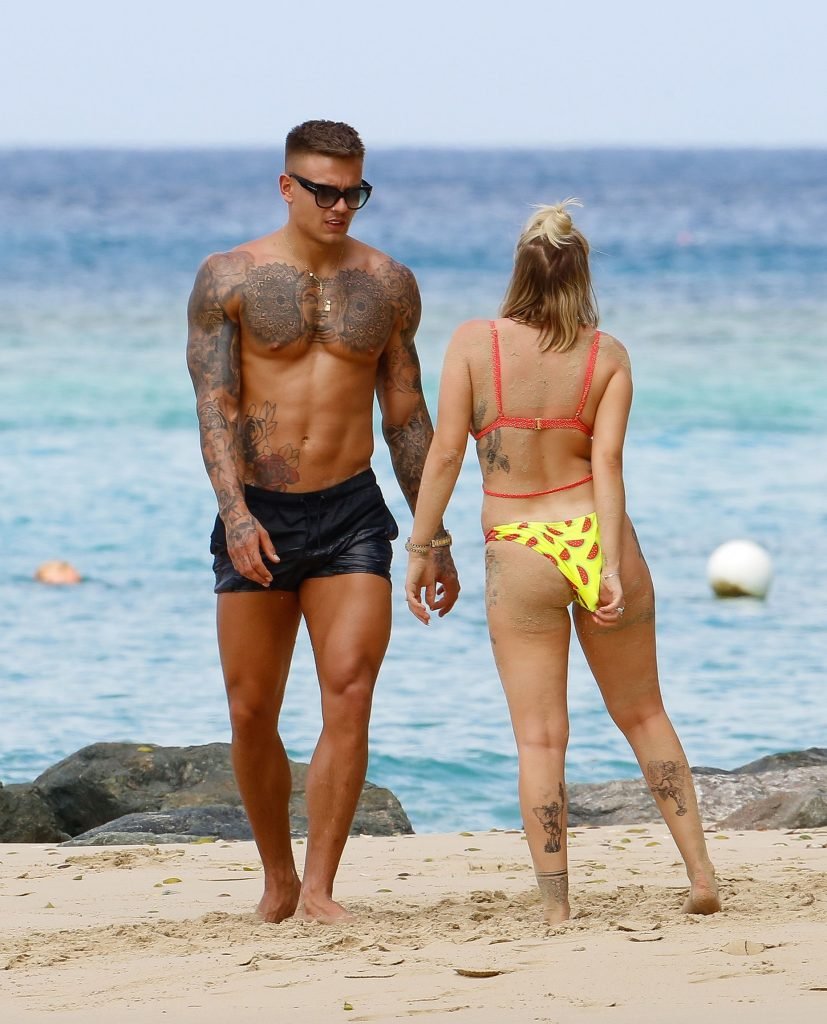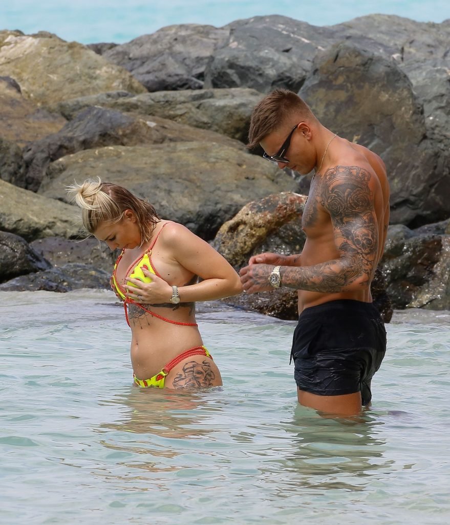 La star de la télévision Olivia Buckland (25 ans) et son compagnon Alex Bowen ont été aperçus avec d’autres amis en vacances à la Barbade, le 15/03/2018. Le couple amoureux a pris quelques photos sur la plage pour leur collection. Cette fois, Olivia a frappé les paparazzis avec un bikini jaune orné de pastèques.