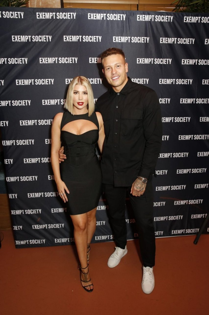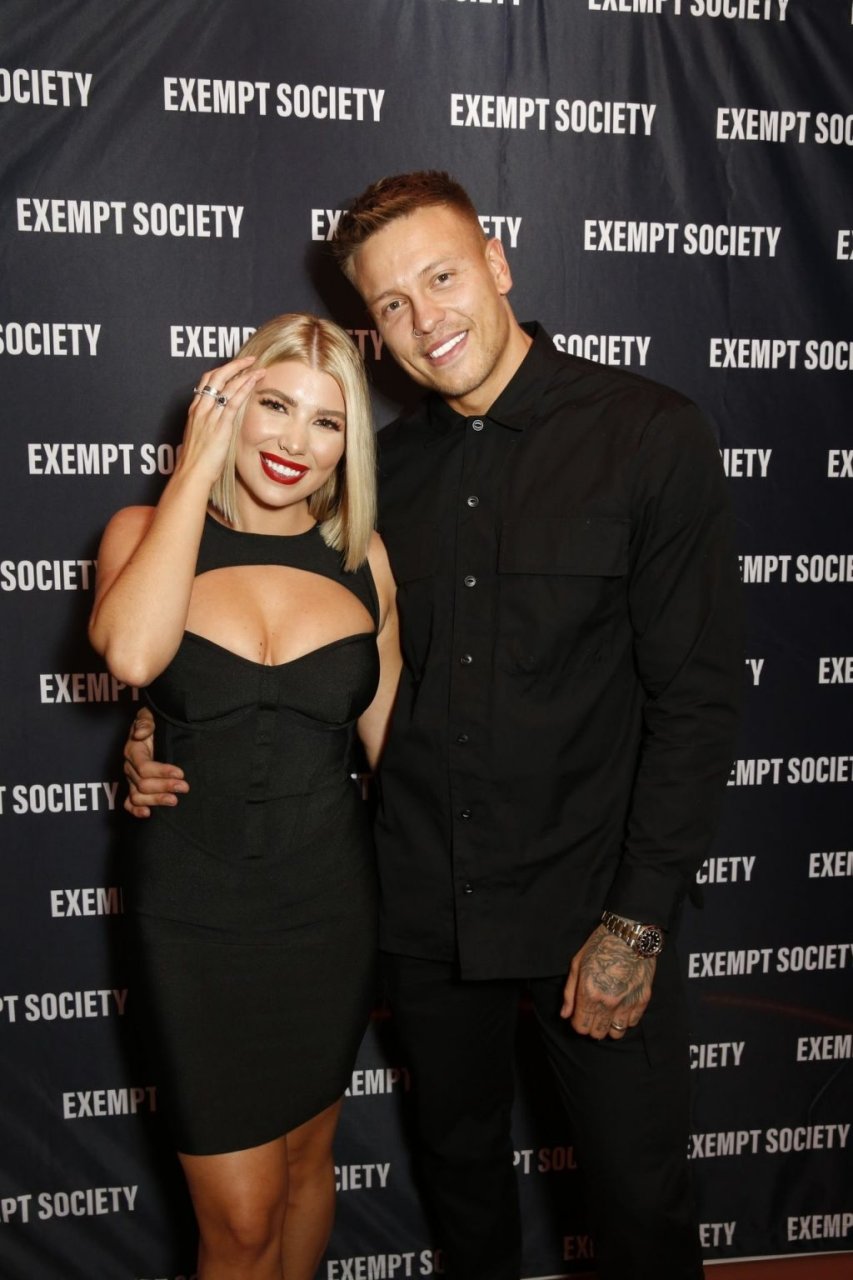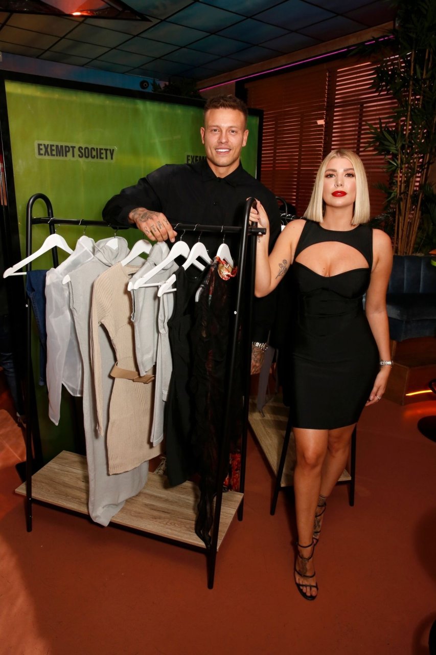 Exempt Society, une marque d’Olivia Buckland et Alex Bowen, célèbre sa collection studio au Nikki’s Bar Shoreditch à Londres, le 09/11/2019.