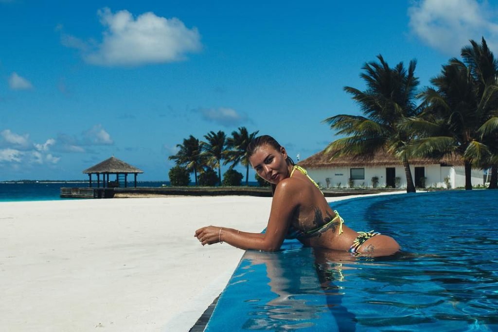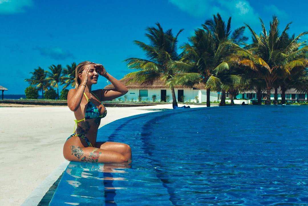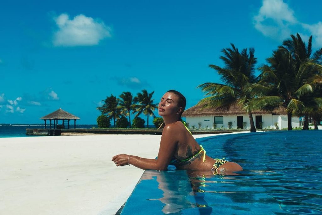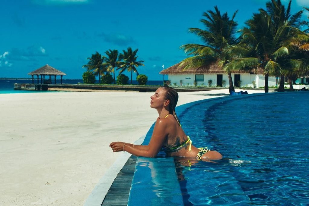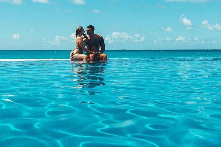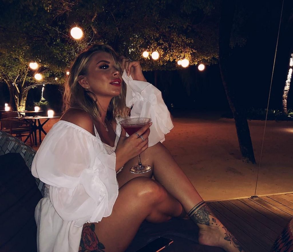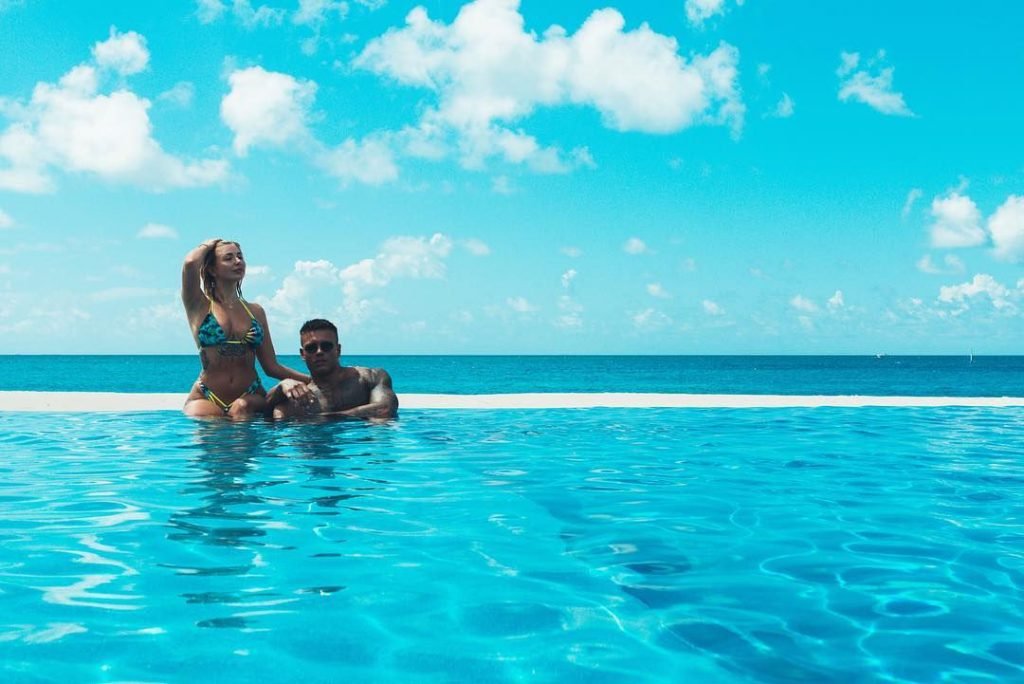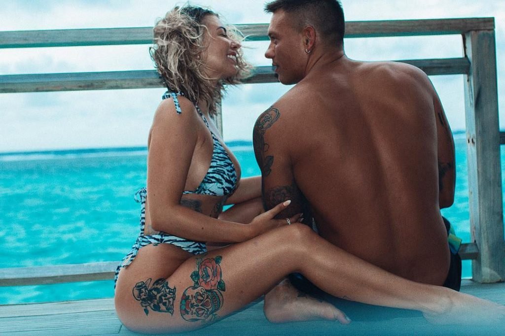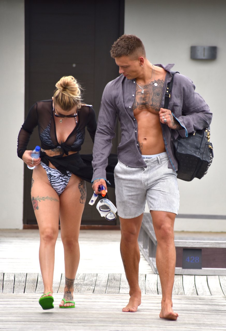 Olivia Buckland et Alex Bowen font une promenade romantique sur la jetée lors de leur lune de miel aux Maldives, 30/09/2018. Olivia Buckland Bowen est une star anglaise de la télévision et mannequin de 24 ans.