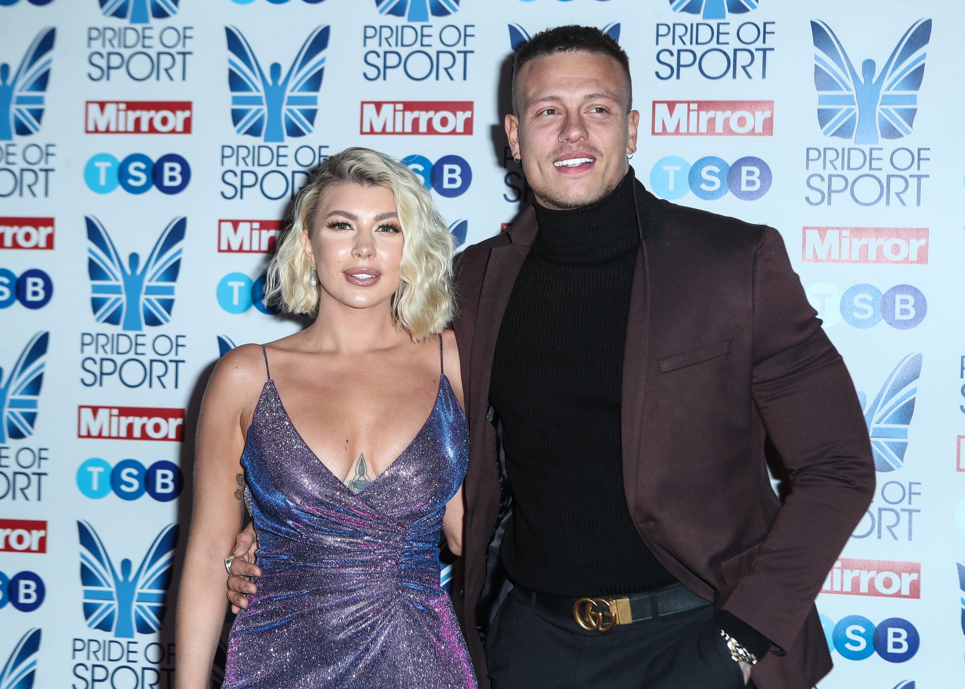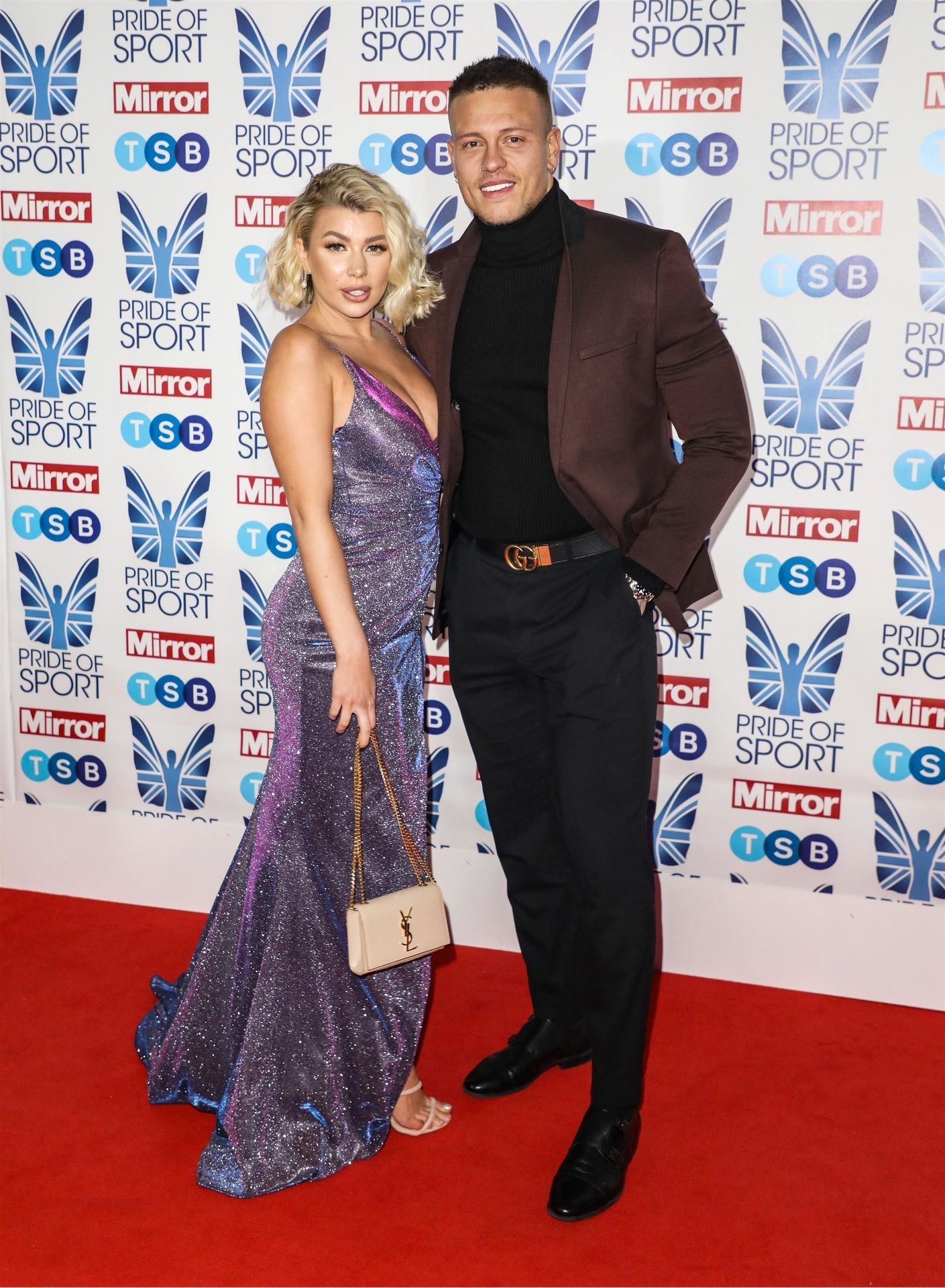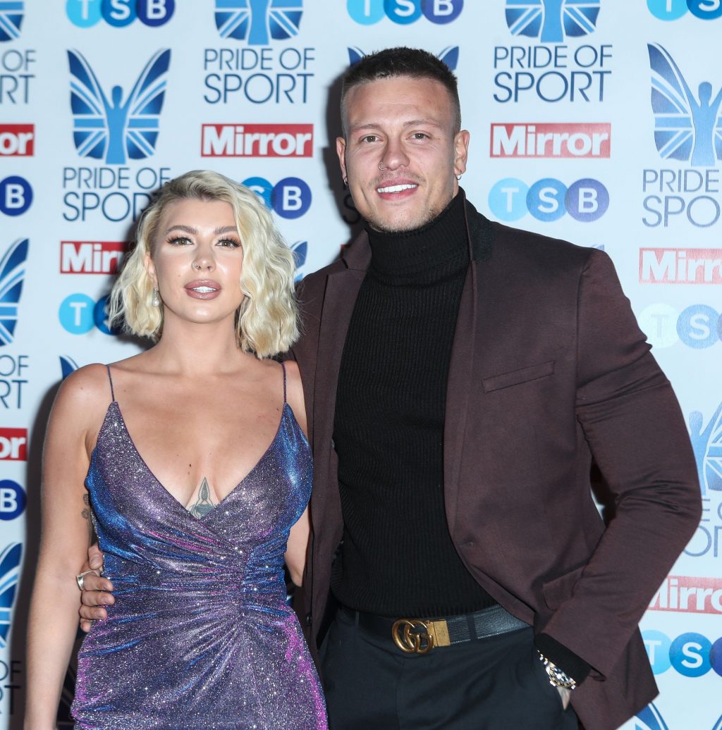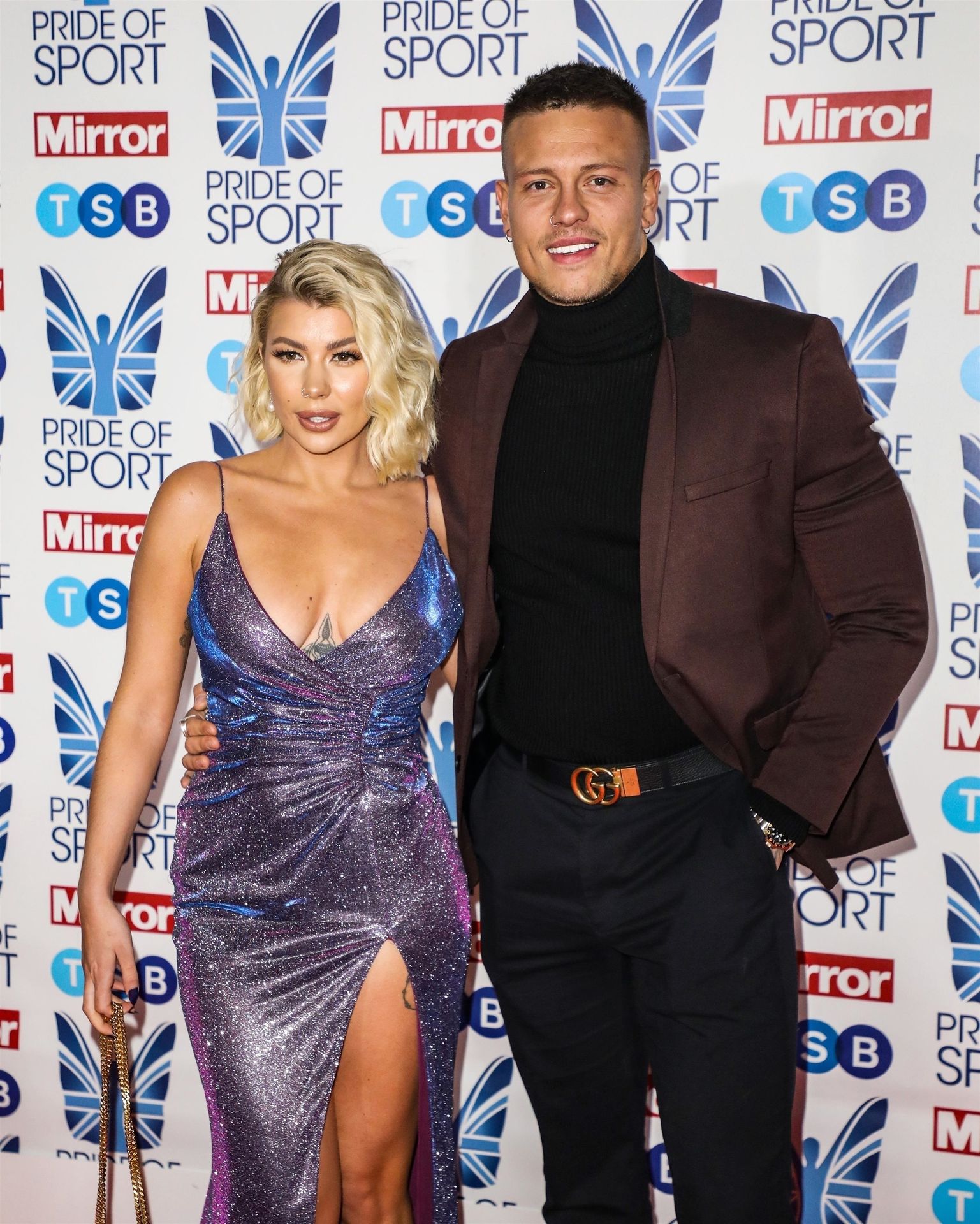 Les stars de la télé-réalité Olivia Buckland et Alex Bowen arrivent pour les Daily Mirror Pride of Sport Awards 2019 à l’hôtel Grosvenor House à Londres, le 12/05/2019.