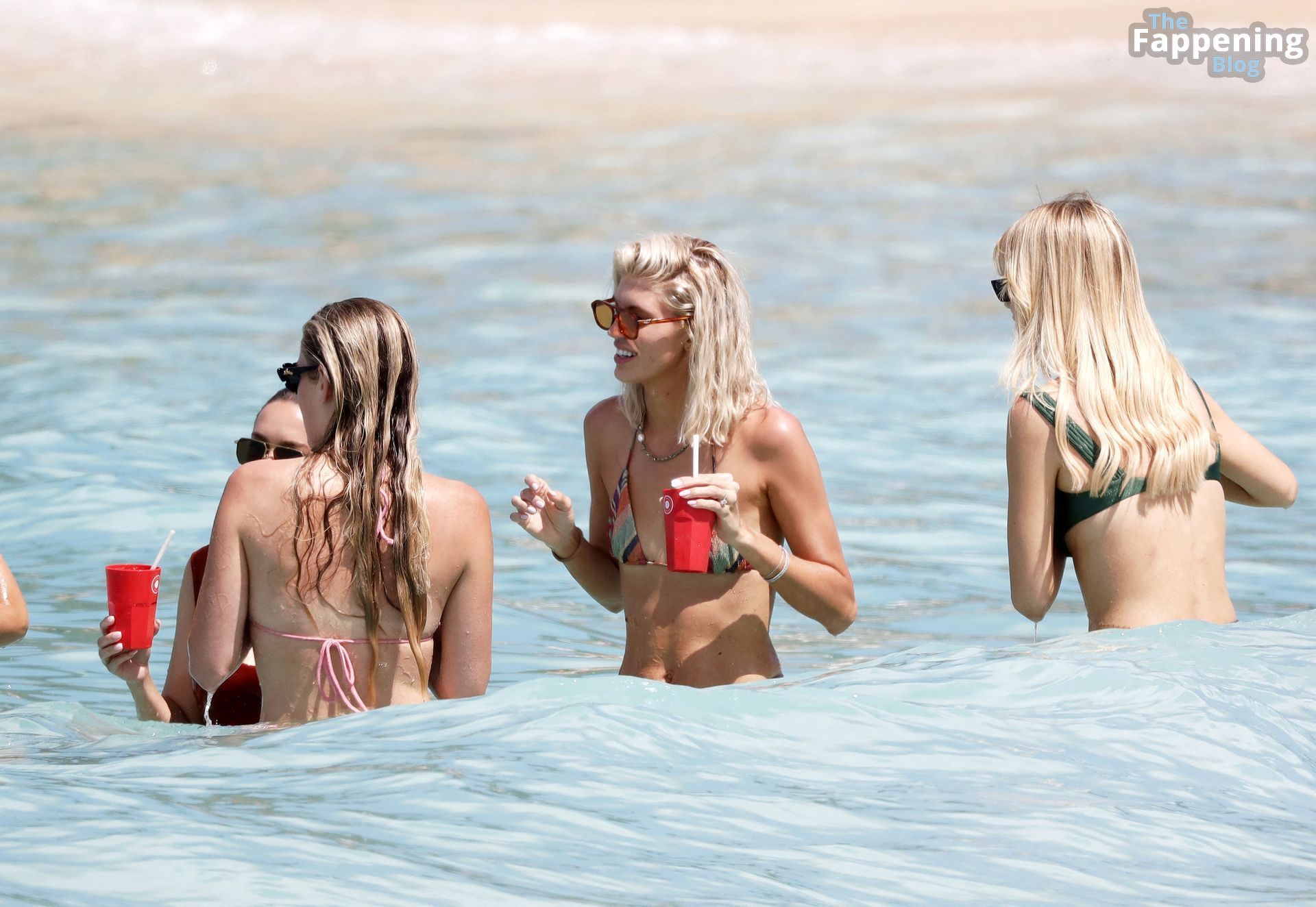 La reine de beauté de 31 ans, qui doit bientôt épouser son compagnon joueur de la NFL Christian McCaffrey, a attiré tous les regards dans un bikini bleu et blanc à motifs espiègles, alors qu’elle et la sublime mannequin Victoria’s Secret Devon Windsor profitaient du soleil et sirotaient dans des gobelets en plastique. Elle a attaché ses cheveux bruns en un chignon lâche et a complété son look avec des lunettes de soleil Chanel, tandis que le groupe riait et discutait.