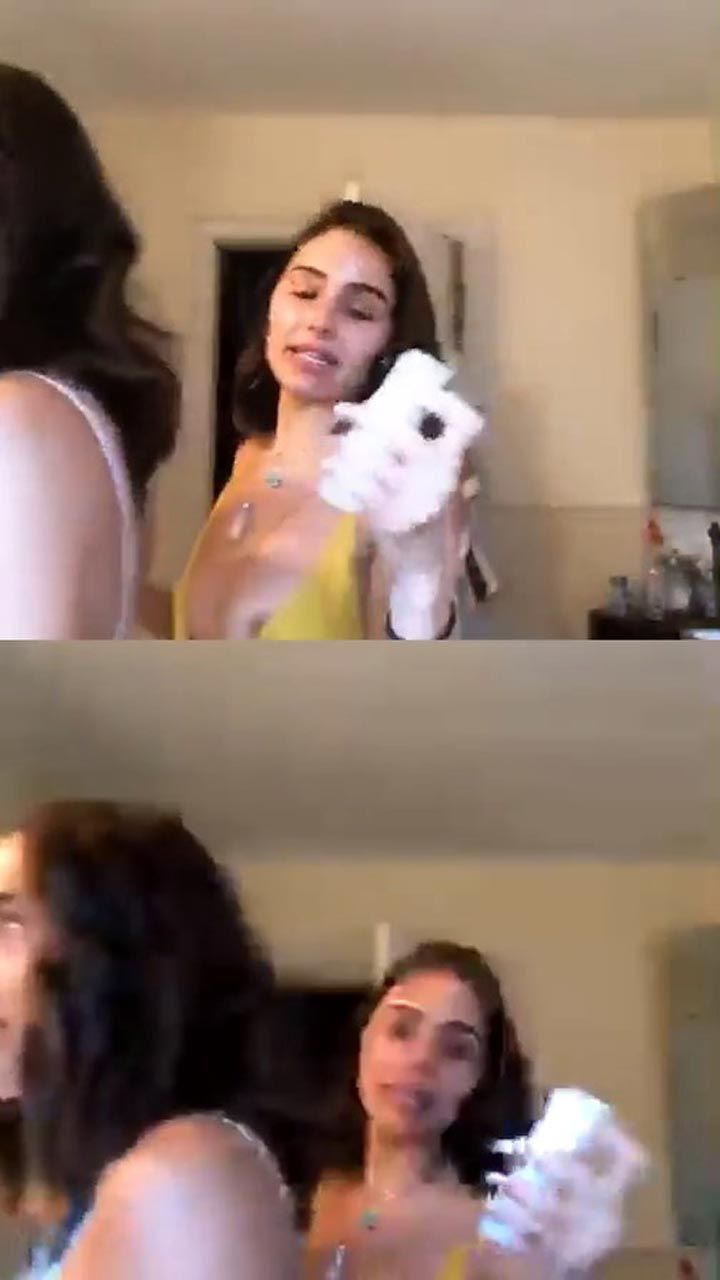 Check out one of the most famous American models and former Miss Universe Olivia Culpo nip slip video and pics! Olivia and her sister Sophia Culpo made an Instagram live for their fans; these two were doing makeup, hair and answered the questions! Olivia wore a loose yellow dress, so her tits slipped so many times! Two hot sisters in your bed, can you imagine?