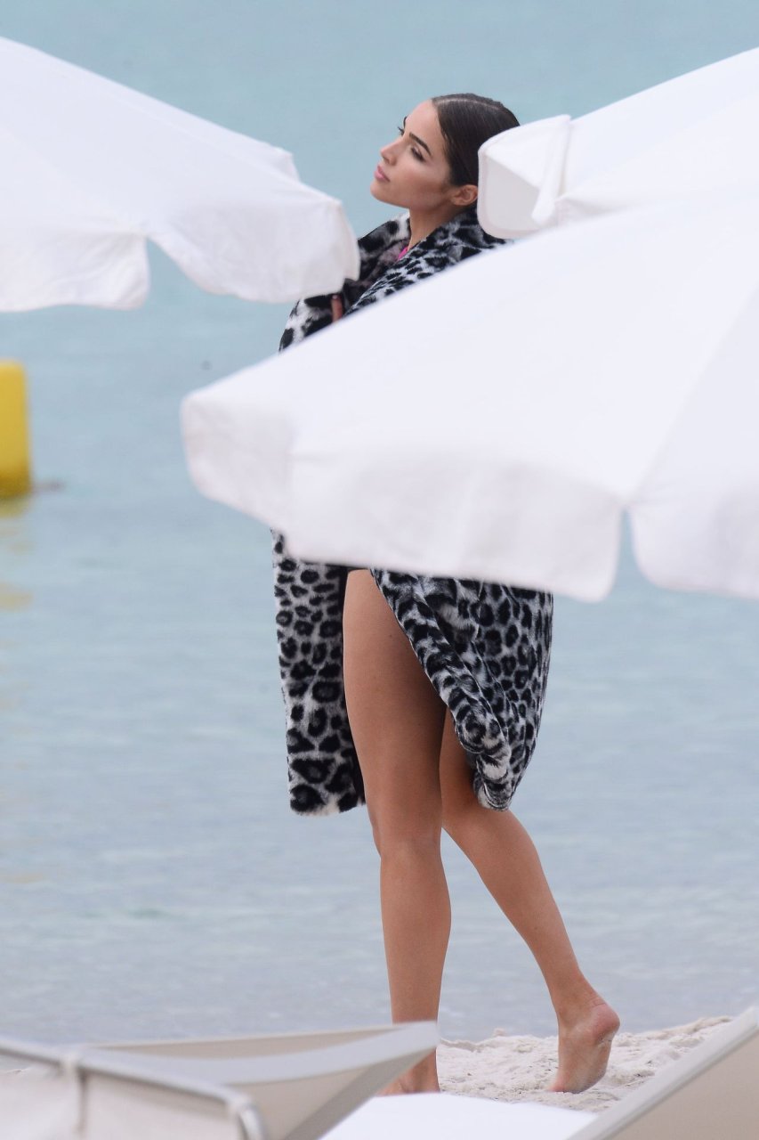 Le mannequin Olivia Culpo profite du magnifique paysage de Cannes alors qu’elle pose pour une séance photo sur la plage, le 23/05/2019. Le mannequin sexy est parfait en photo alors qu’elle exhibe différents types d’imprimés animaliers !