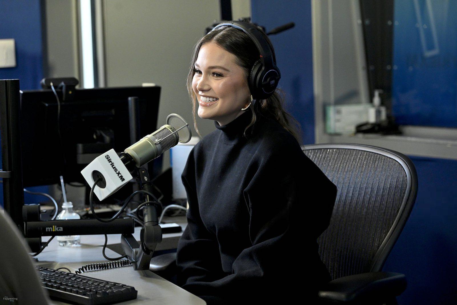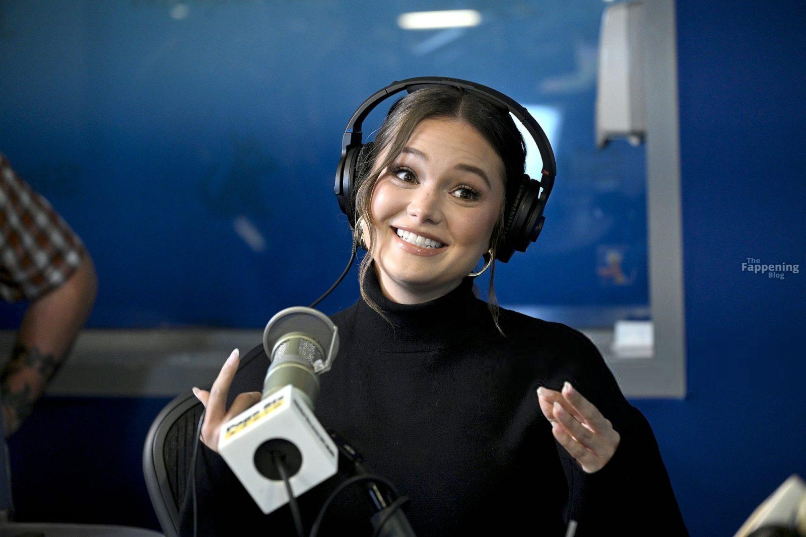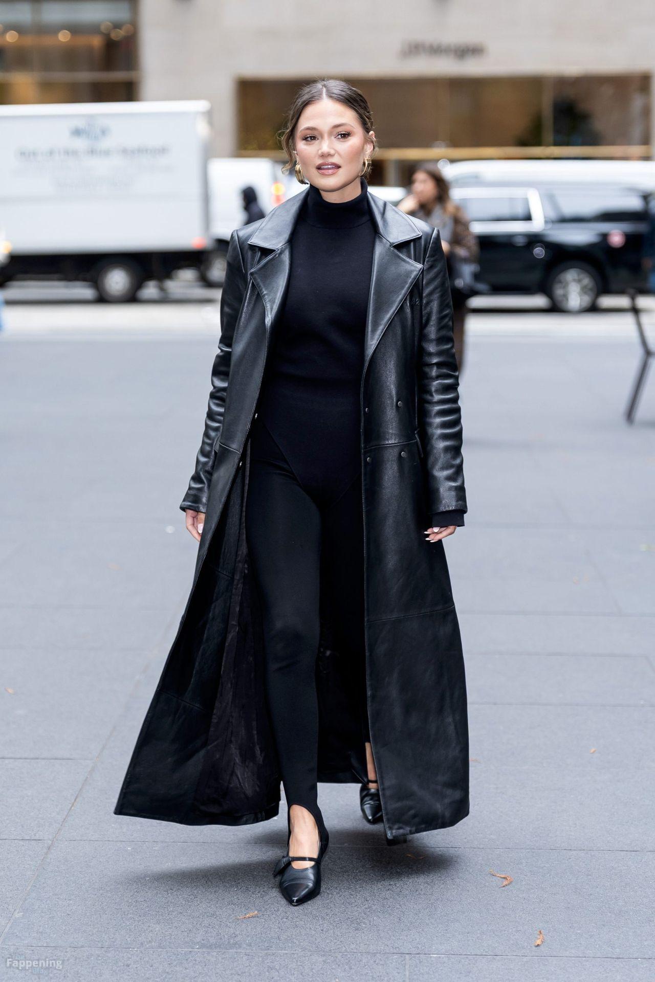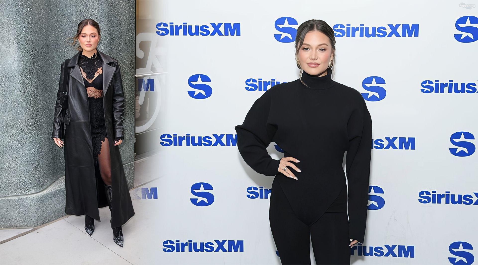 Olivia Holt éblouit à New York, défilant dans un body en dentelle transparent et un trench en cuir noir. Admirez ses jambes et son décolleté dans Live with Kelly & Mark à New York.
