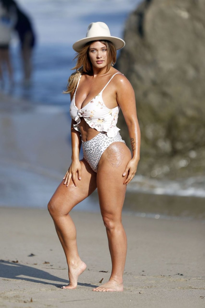 Le mannequin Wilhelmina et influenceuse Olivia June met en valeur ses courbes dans un deux-pièces révélateur dépareillé alors qu’elle pose avec énergie pour une séance photo sur la plage de Malibu, 08/07/2019.
