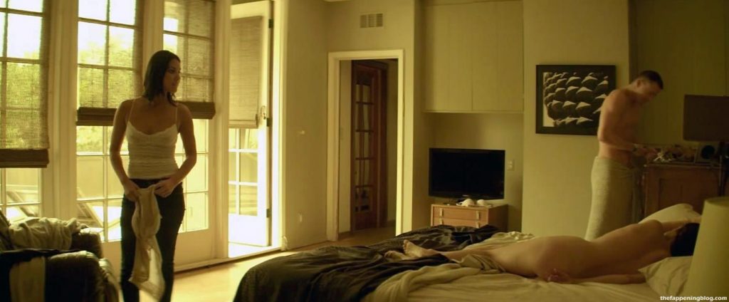 The first scene is from a movie called ‘Magic Mike’. Olivia Munn makes her nude debut when we see her being dressed topless in a bedroom while talking to a man who comes by. Olivia then stands in a tight white camisole, staring at a nude girl sitting on the bunk, her buttocks exposed.