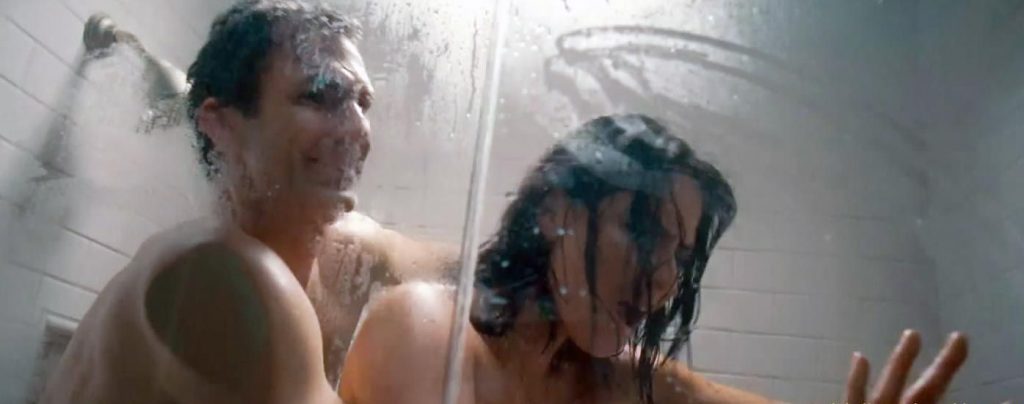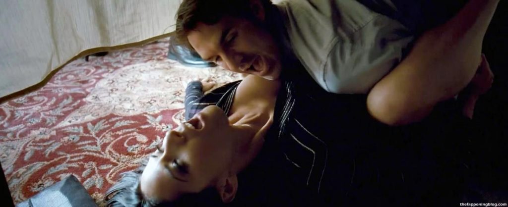 The second scene that I have to show you is from the ‘Babymakers’ movie. Olivia Munn has sex with a man in this montage, first in the bathroom, then in a car with him, first on all fours on a living room floor, then beneath a table at a wedding, and finally in bed with him, her breasts nearly visible as he lays on top of her.
