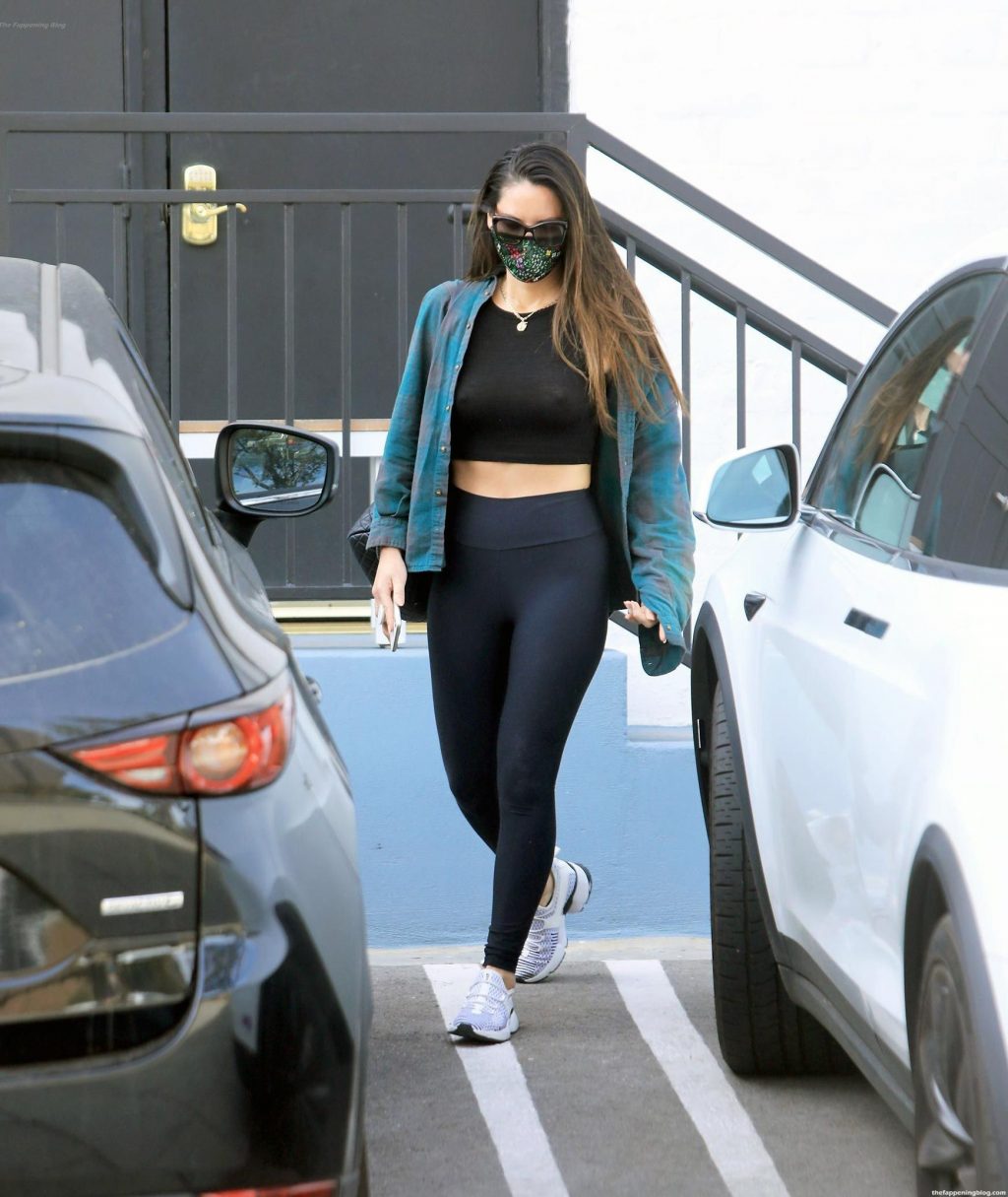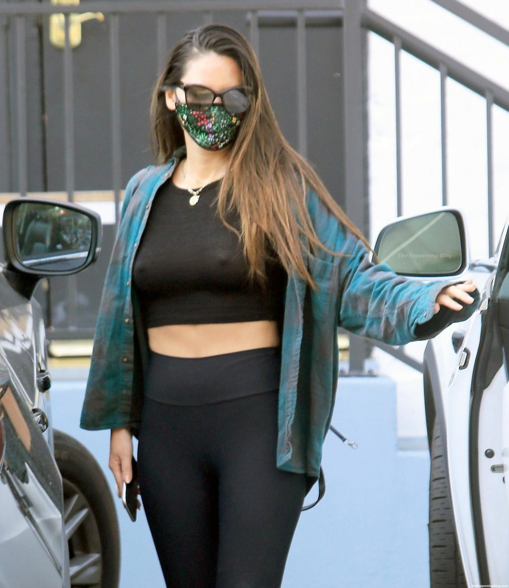 Olivia Munn wore a pair of tight and thin black leggings and a sultry black crop top to her morning workout in Beverly Hills, showcasing her incredible figure and hard nipples!