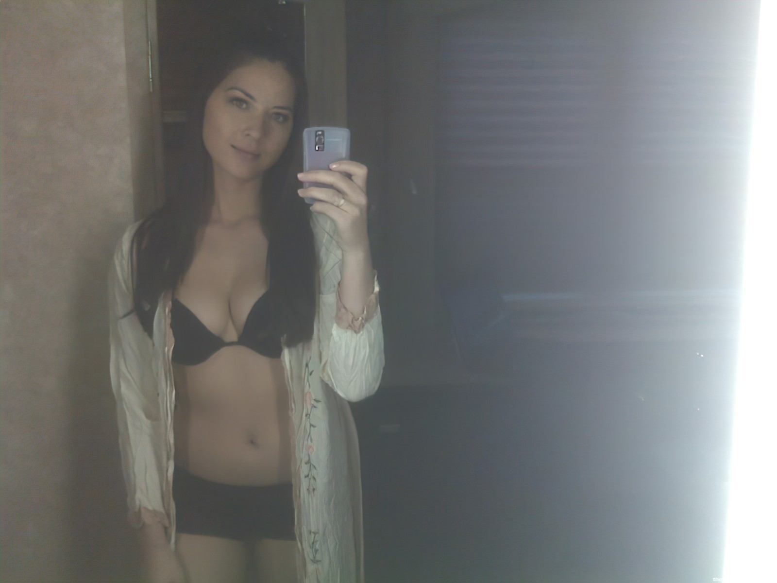 Guys, you have to see these! Here is a small collection of three very sexy Olivia Munn hot pics! She posed in a pink robe and some sexy bikini bottoms! She was wearing the top in one photo, but as soon as the guy in the photo came around – she lost it and stayed in just the bottoms! I wish I could have seen her fully topless!