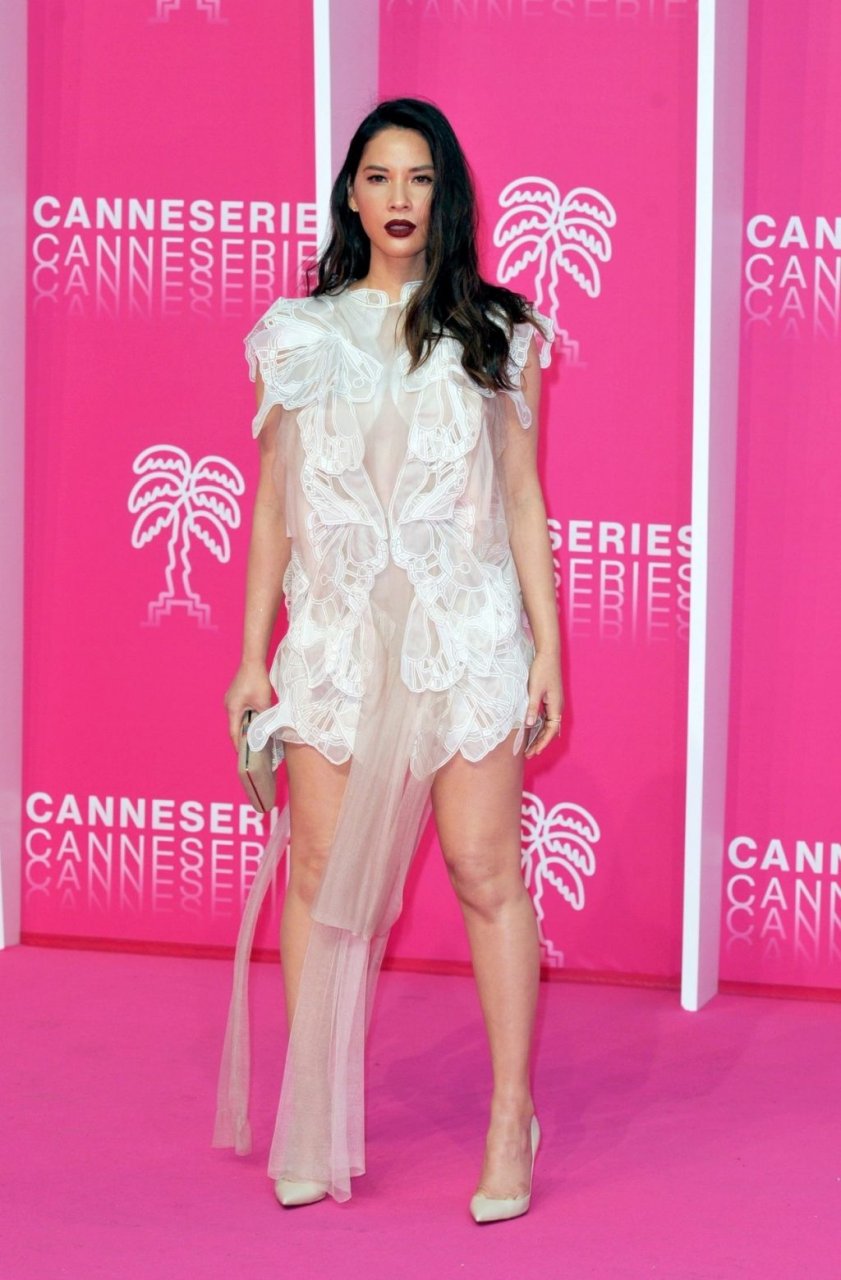 Olivia Munn, aux longues jambes, pose pour un photocall lors du festival Canneseries Cannes International Series 2019 au Palais des Festivals, 08/04/2019.