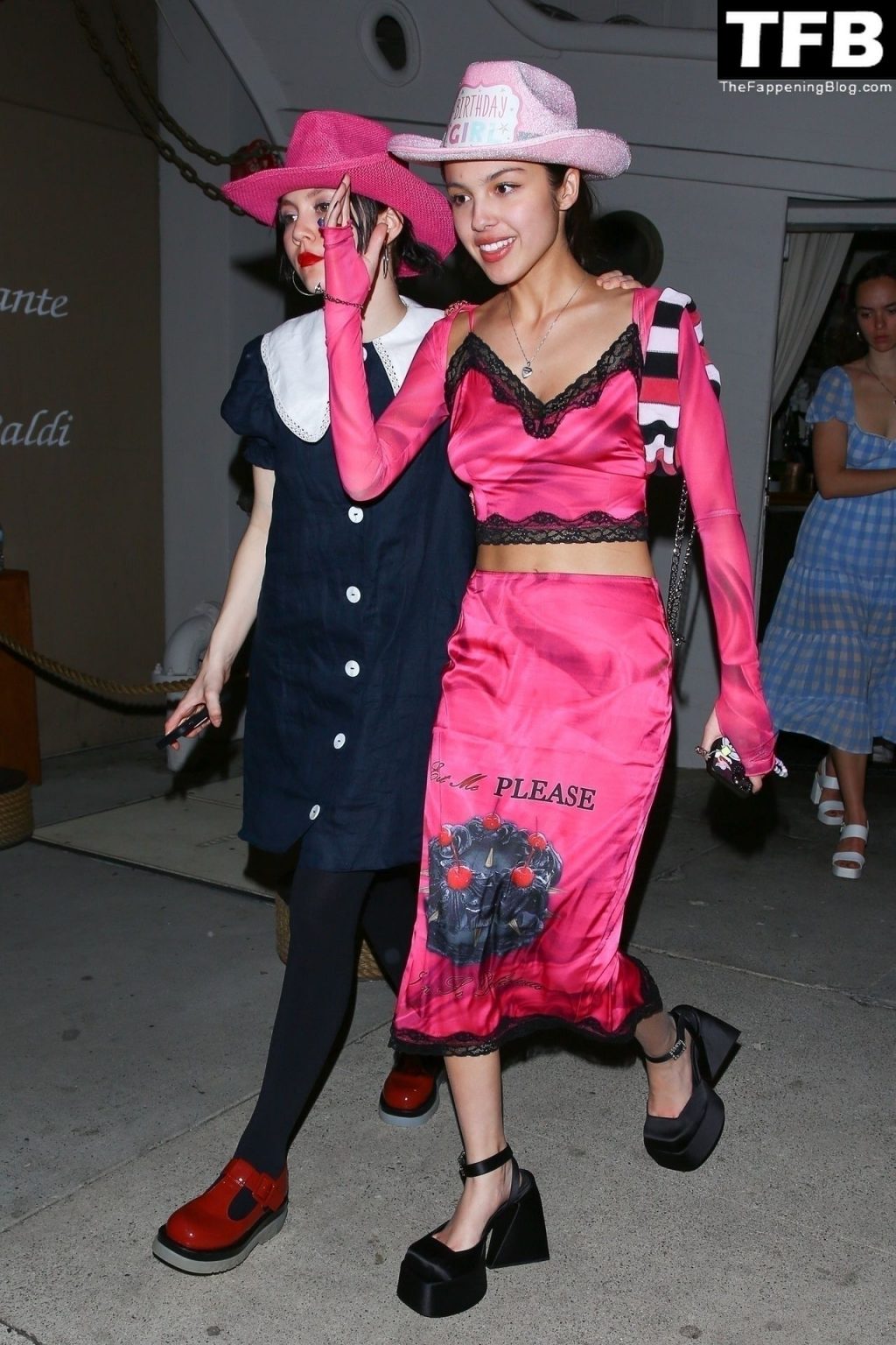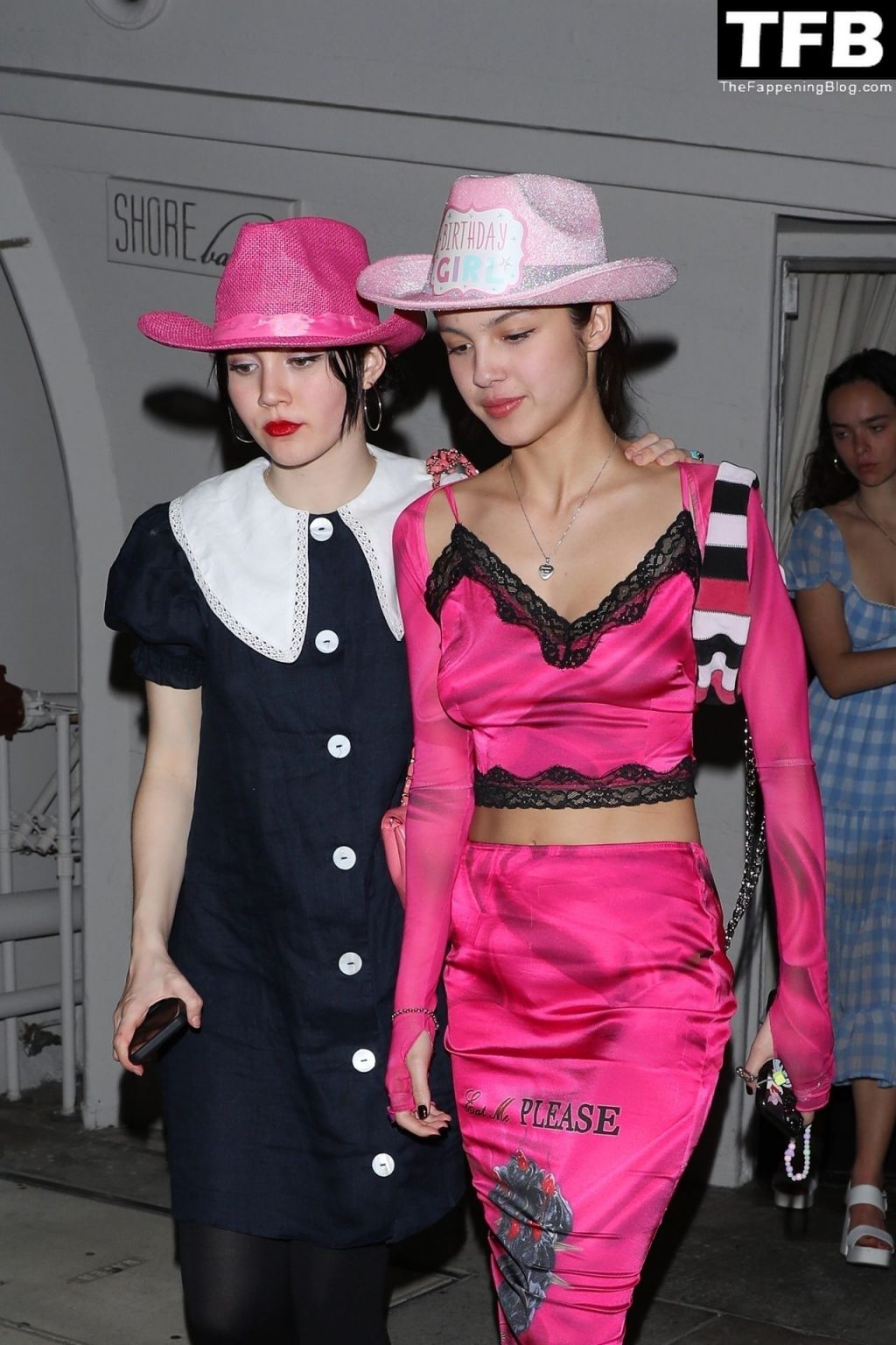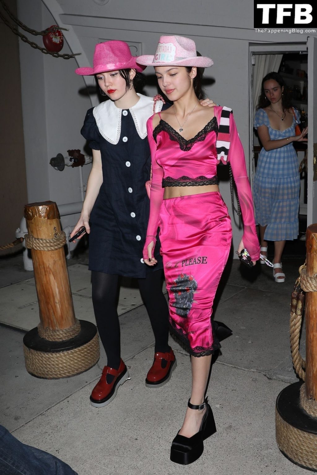 Le groupe a été vu en train de rire et de sourire en entrant et en sortant. La chanteuse, qui vient d’avoir 19 ans, est arrivée à 23h15 et a quitté le bar à 1h20 du matin. Olivia porte un chapeau rose sur lequel est écrit « Birthday Girl », un haut rose vif et une longue jupe rose vif assortie sur laquelle est inscrit « Eat Me Please I’m So Delicious ».