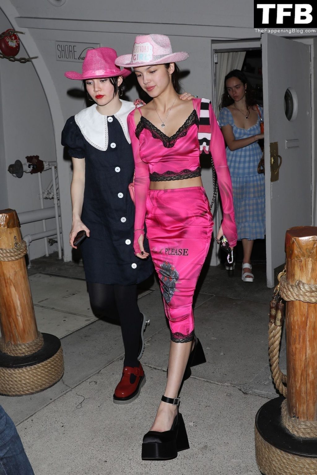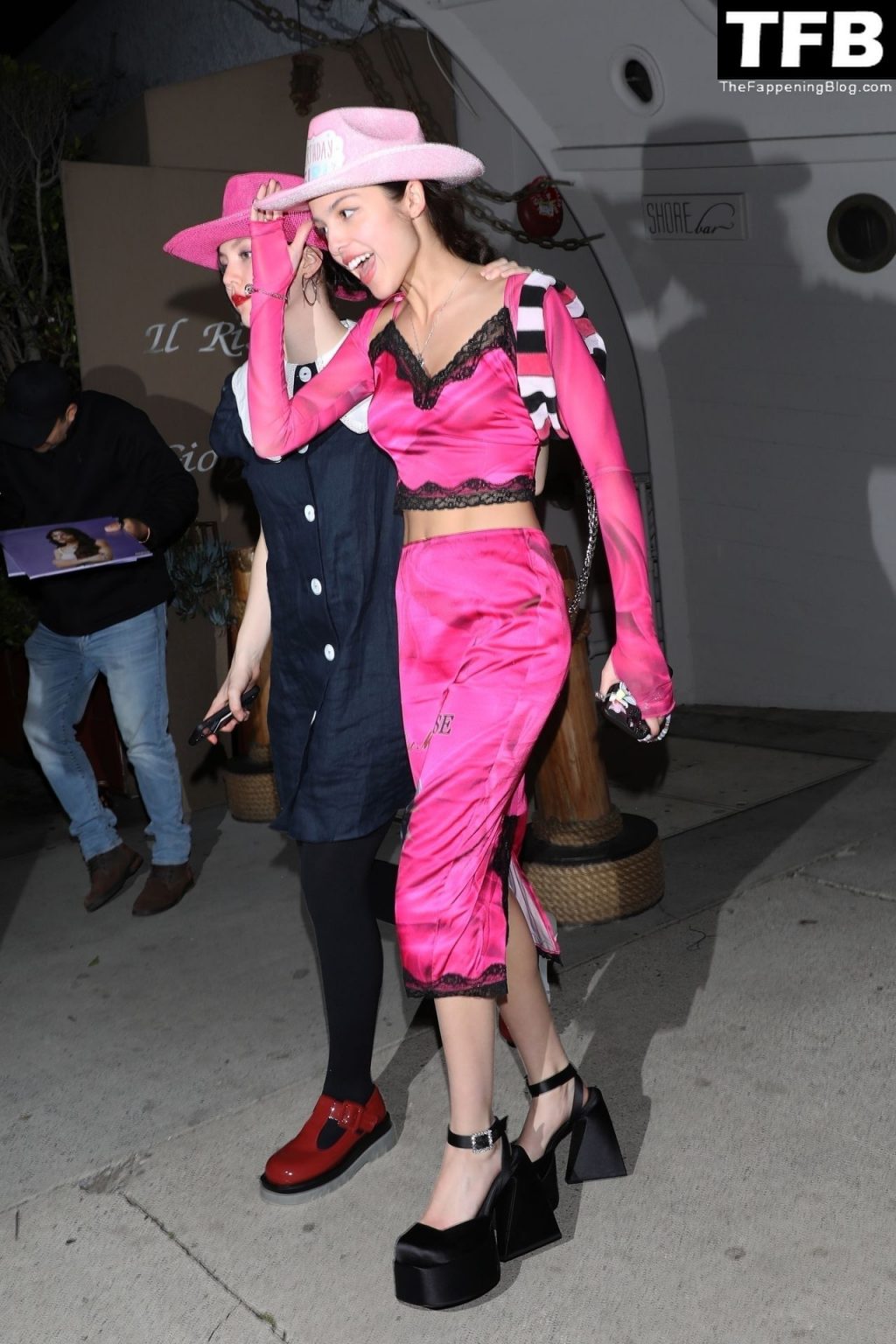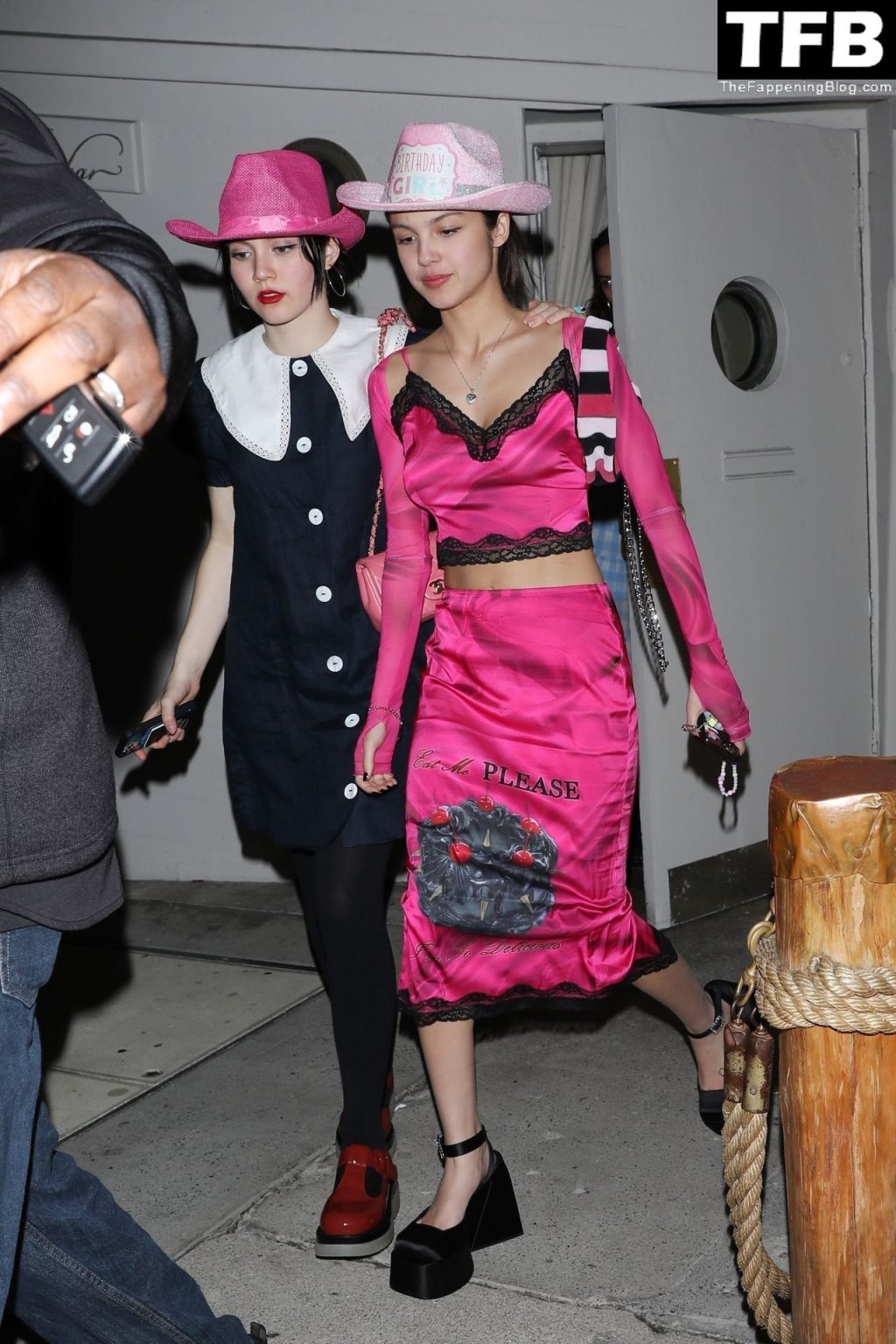 Le groupe a été vu en train de rire et de sourire en entrant et en sortant. La chanteuse, qui vient d’avoir 19 ans, est arrivée à 23h15 et a quitté le bar à 1h20 du matin. Olivia porte un chapeau rose sur lequel est écrit « Birthday Girl », un haut rose vif et une longue jupe rose vif assortie sur laquelle est inscrit « Eat Me Please I’m So Delicious ».
