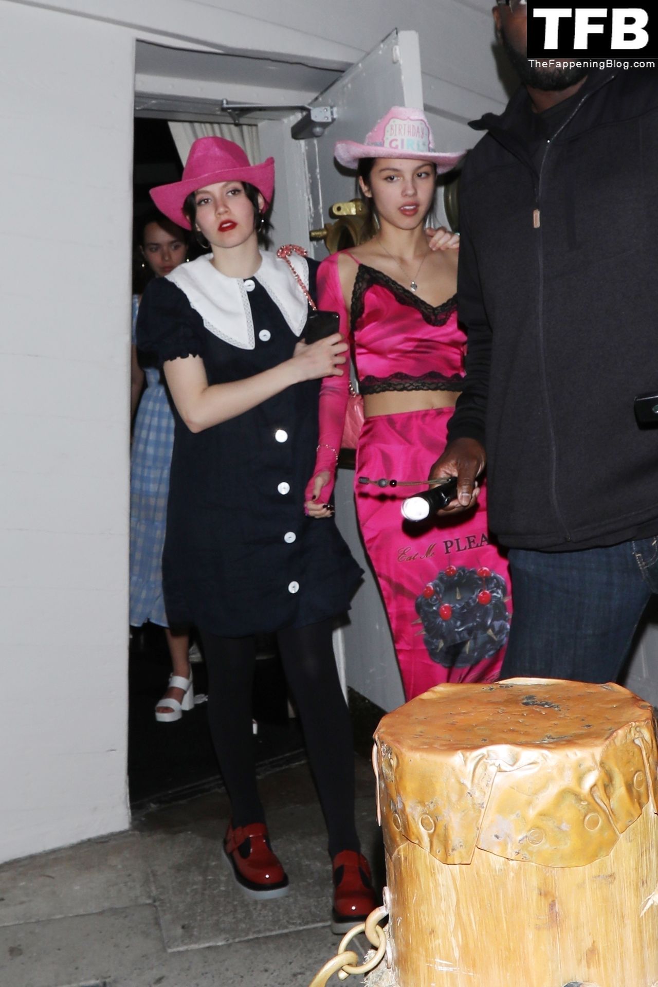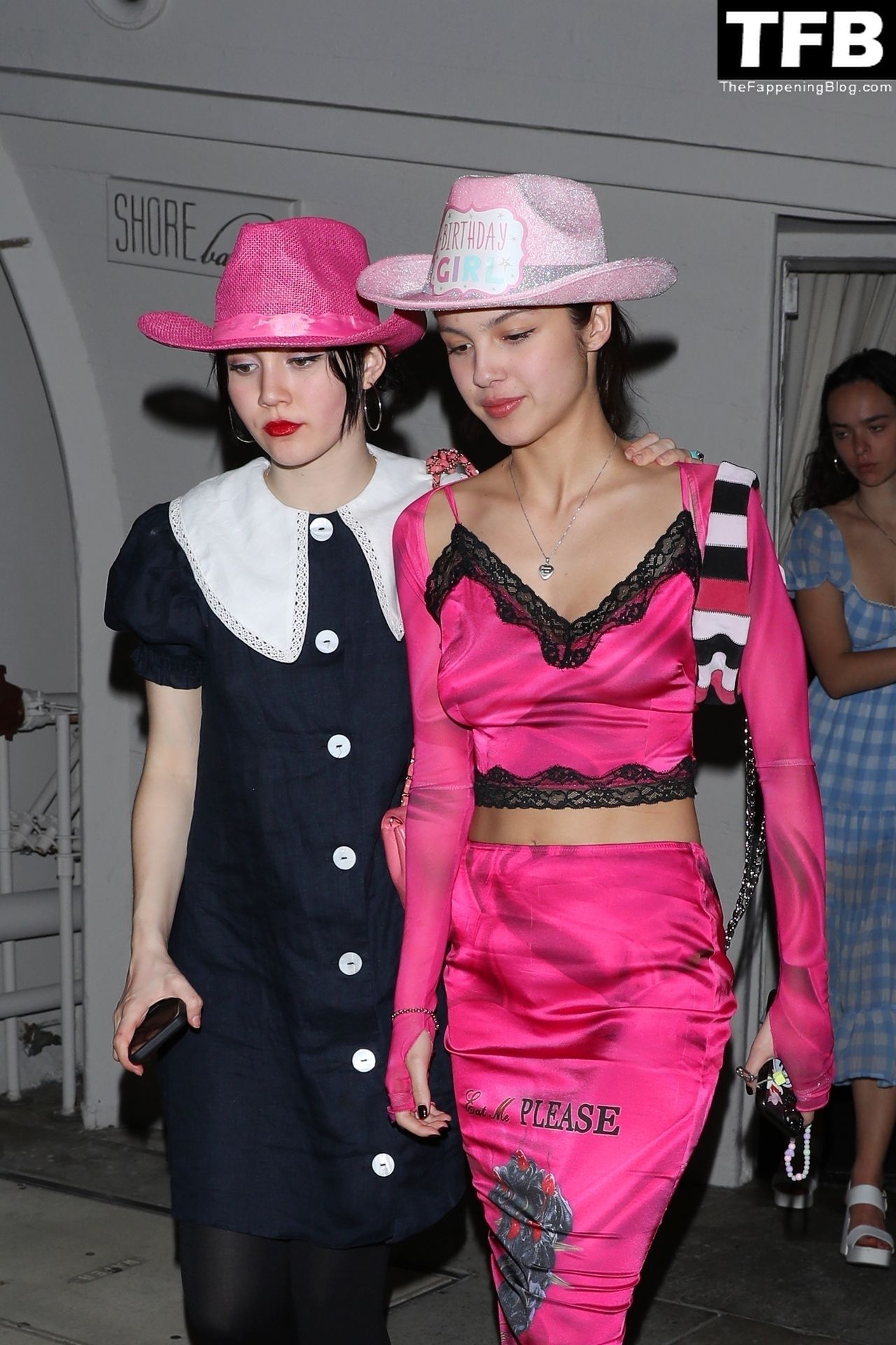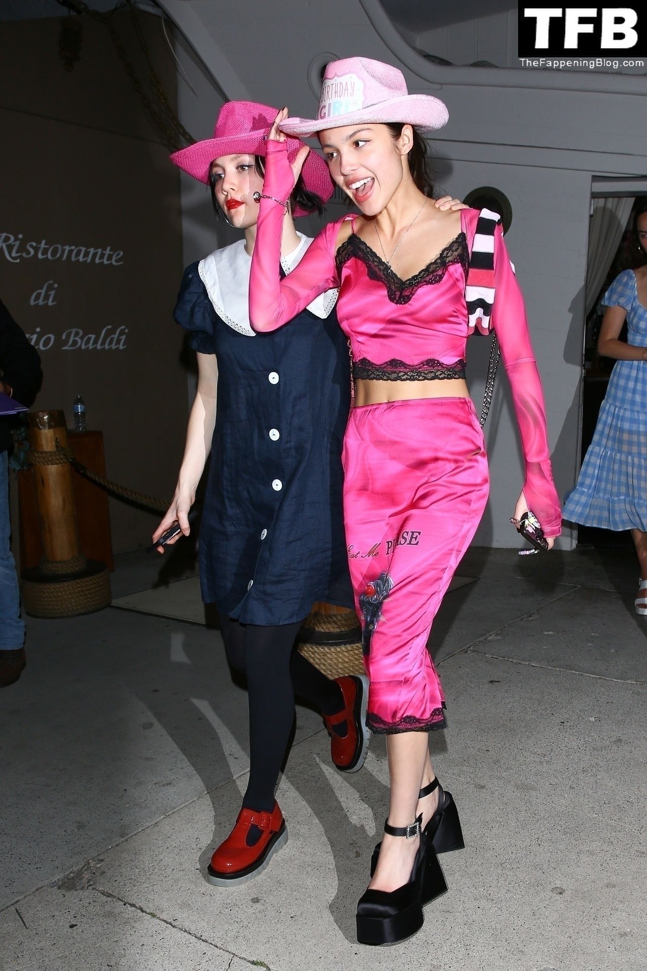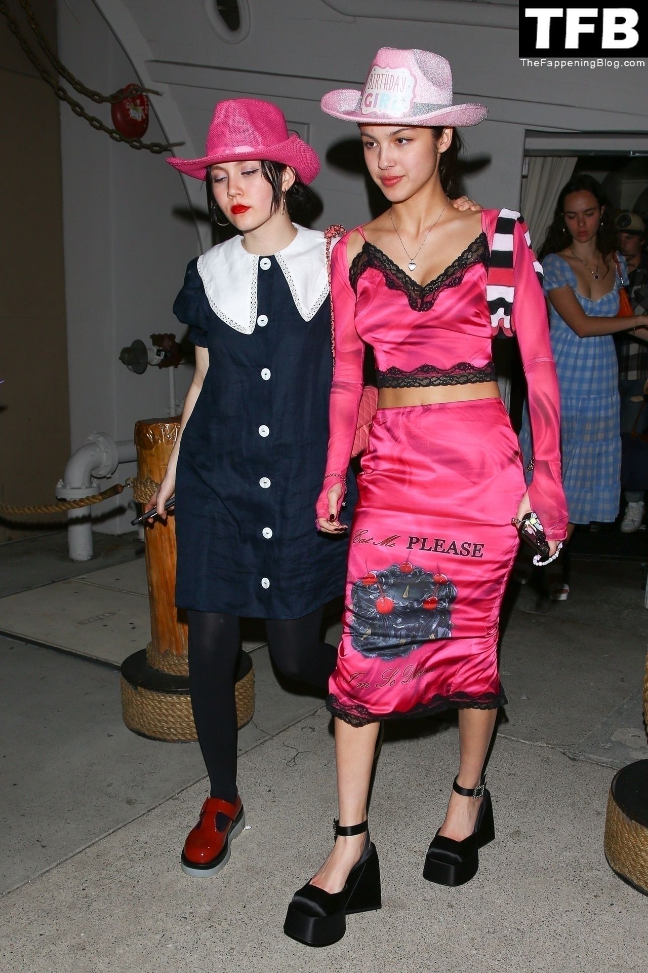 Le groupe a été vu en train de rire et de sourire en entrant et en sortant. La chanteuse, qui vient d’avoir 19 ans, est arrivée à 23h15 et a quitté le bar à 1h20 du matin. Olivia porte un chapeau rose sur lequel est écrit « Birthday Girl », un haut rose vif et une longue jupe rose vif assortie sur laquelle est inscrit « Eat Me Please I’m So Delicious ».