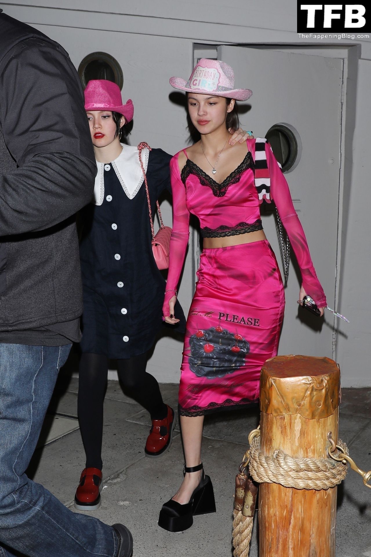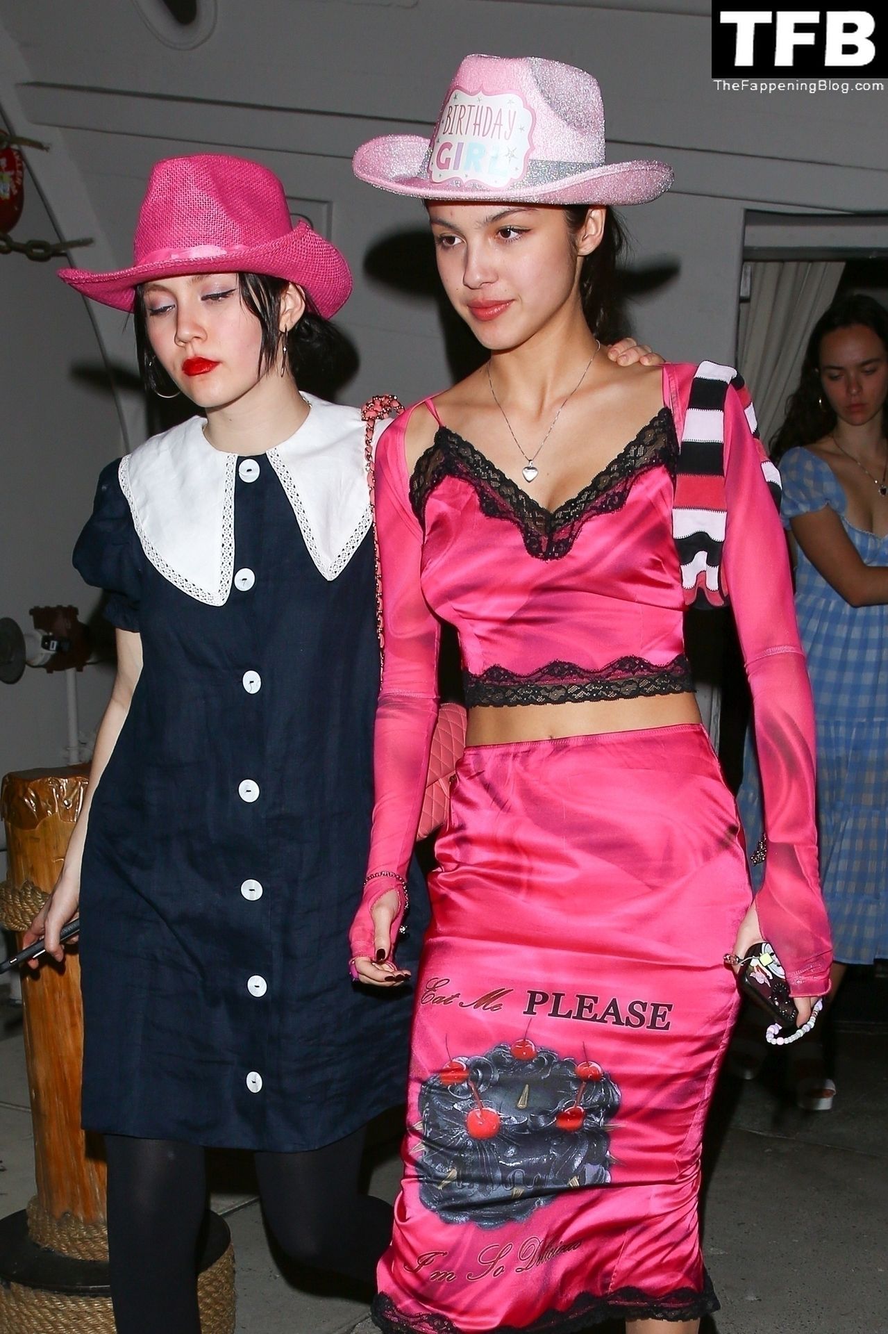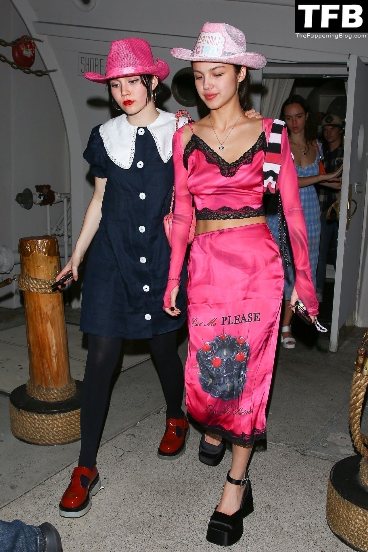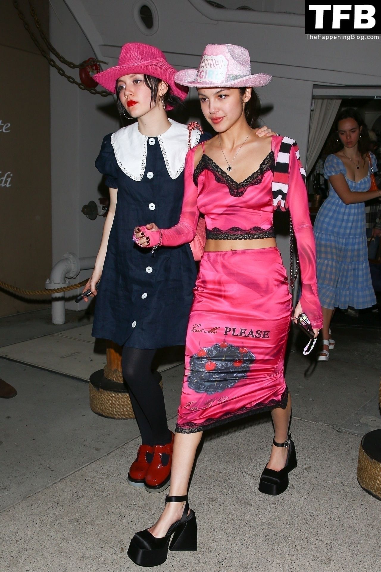 Le groupe a été vu en train de rire et de sourire en entrant et en sortant. La chanteuse, qui vient d’avoir 19 ans, est arrivée à 23h15 et a quitté le bar à 1h20 du matin. Olivia porte un chapeau rose sur lequel est écrit « Birthday Girl », un haut rose vif et une longue jupe rose vif assortie sur laquelle est inscrit « Eat Me Please I’m So Delicious ».