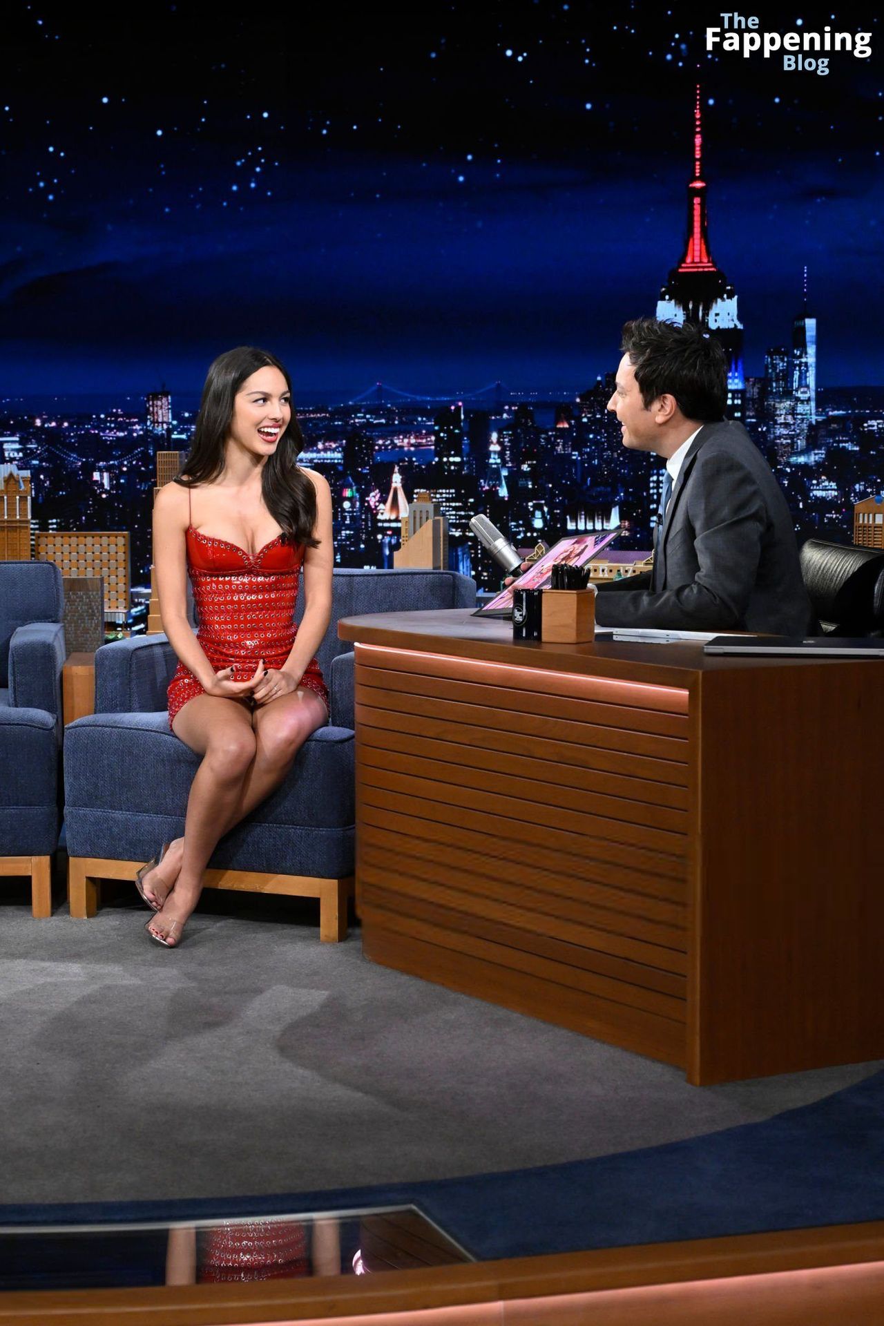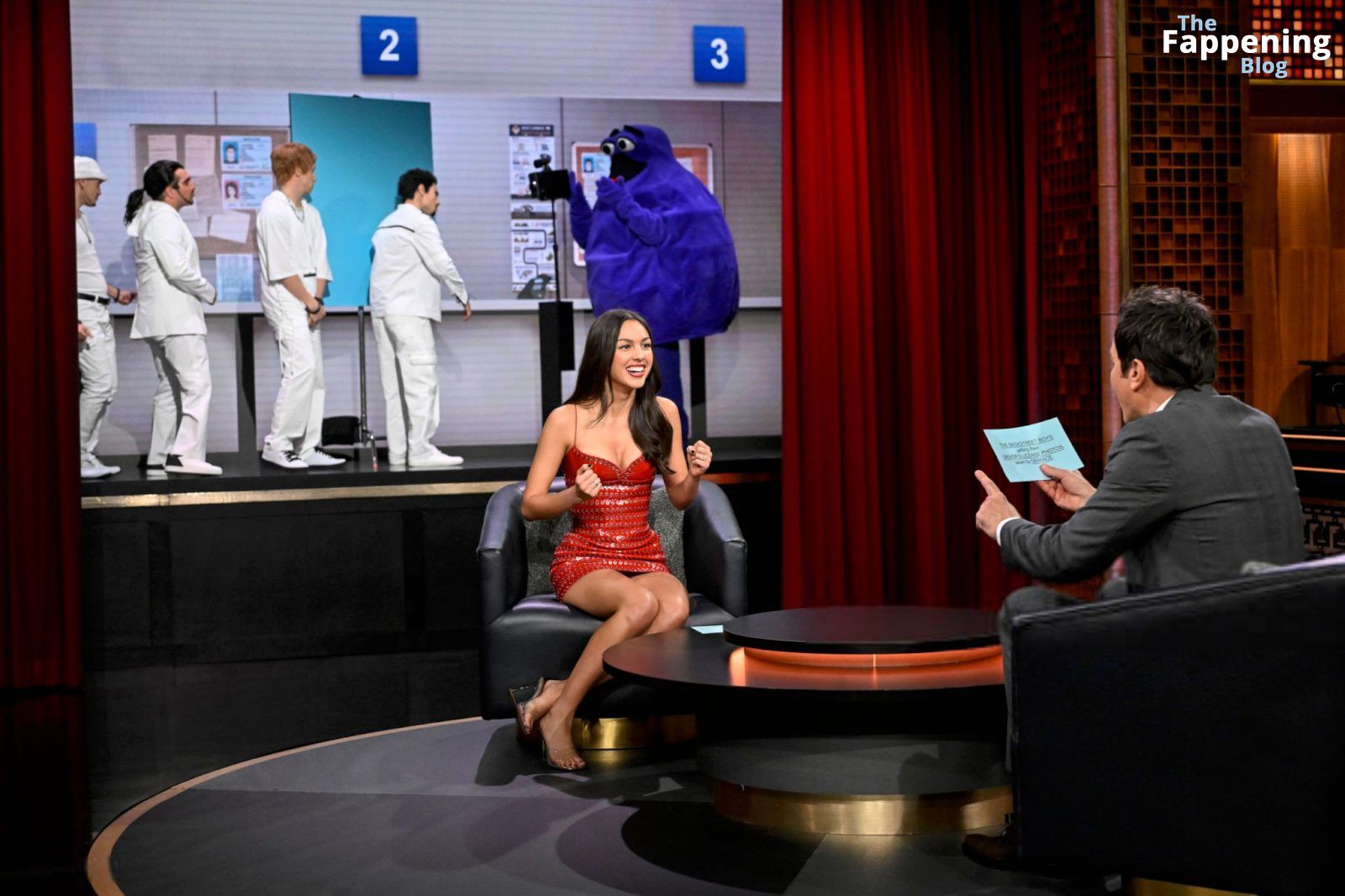 Olivia Rodrigo éblouit au Tonight Show, mettant en valeur son joli décolleté et ses jambes sexy dans une robe rouge.