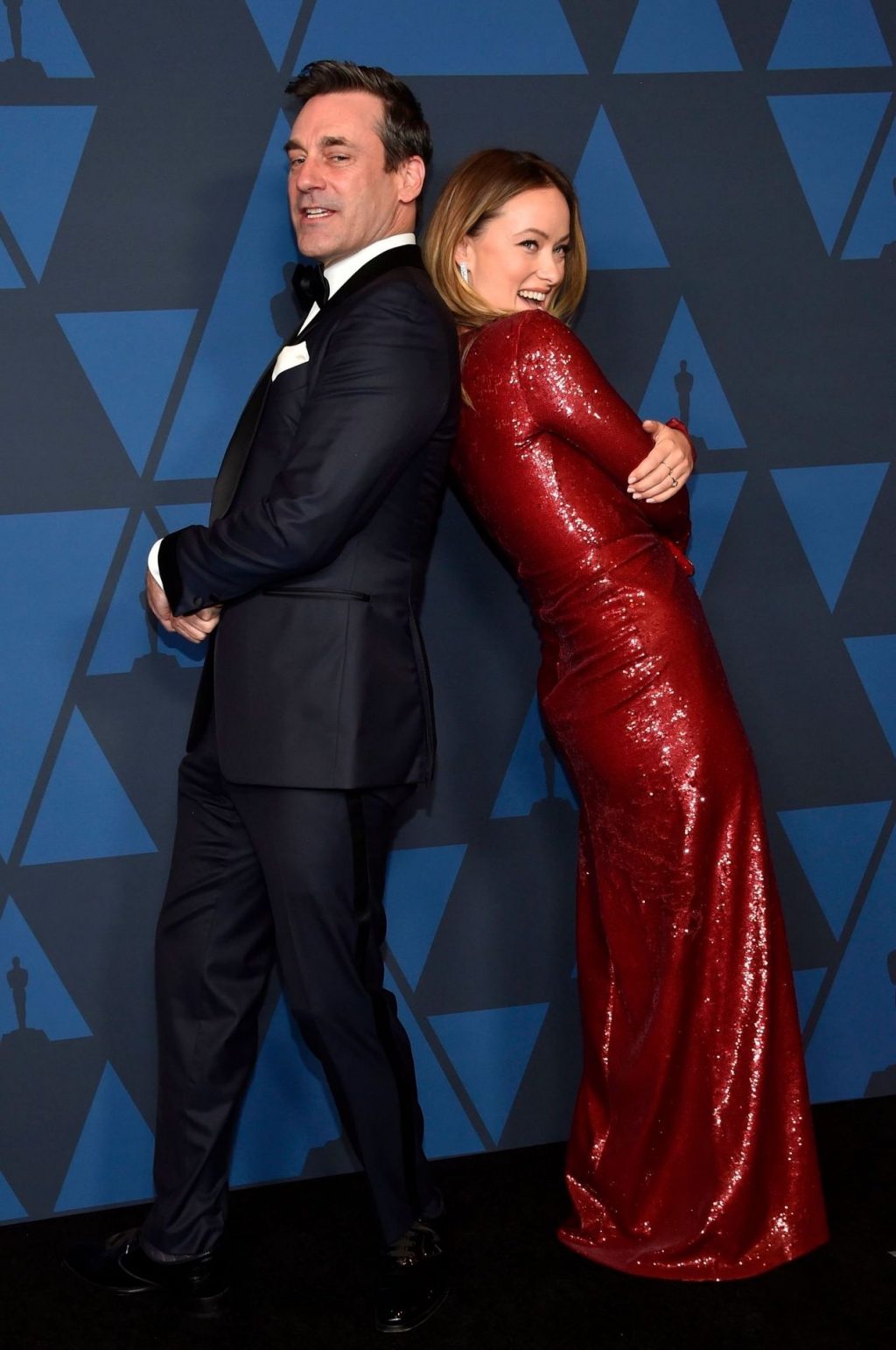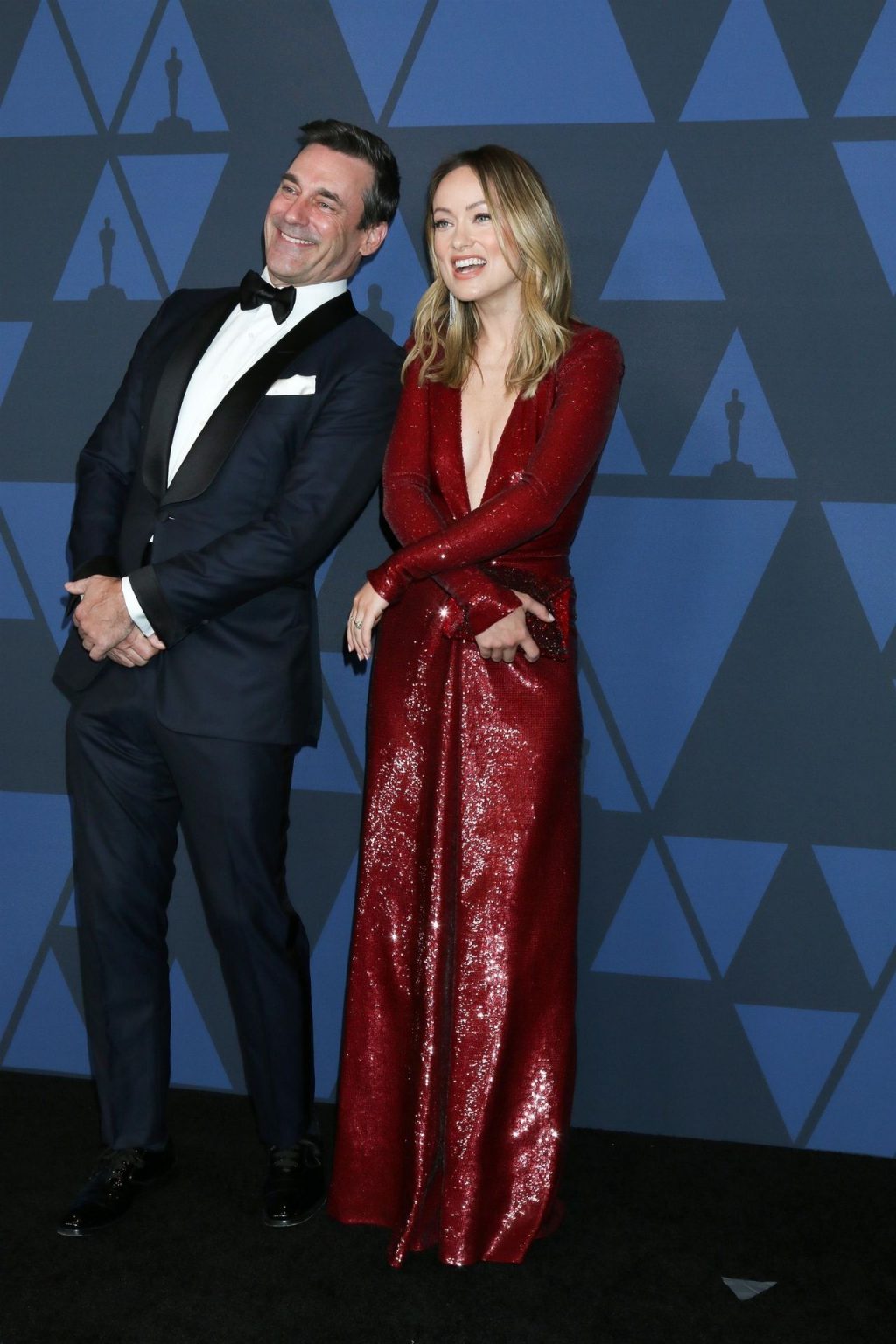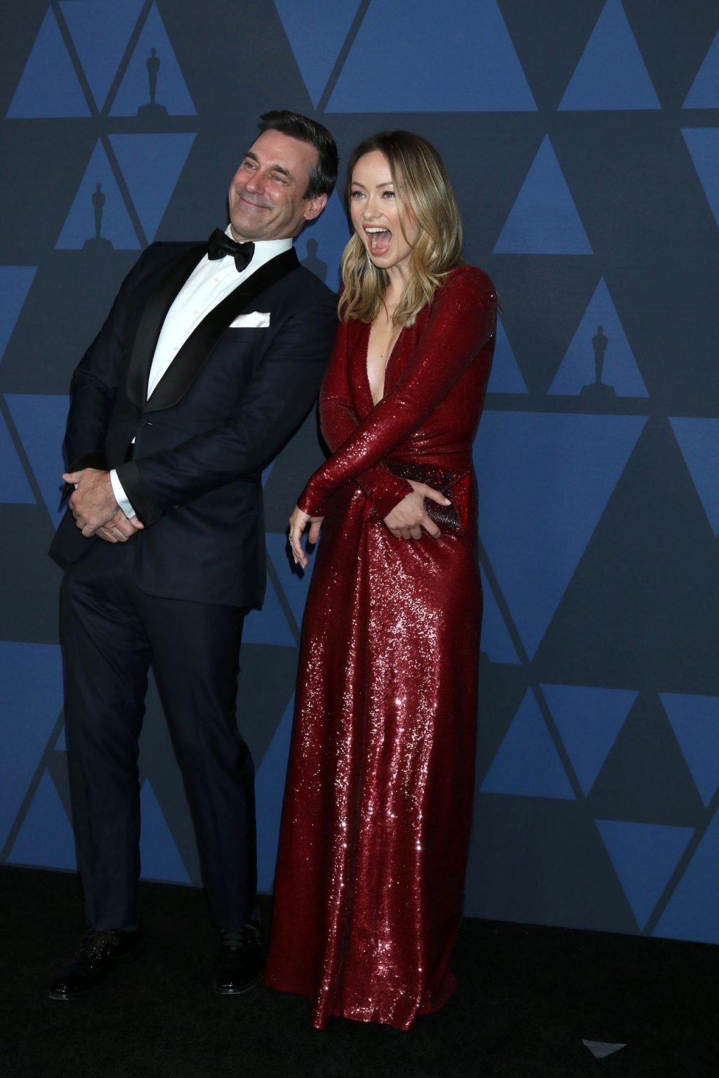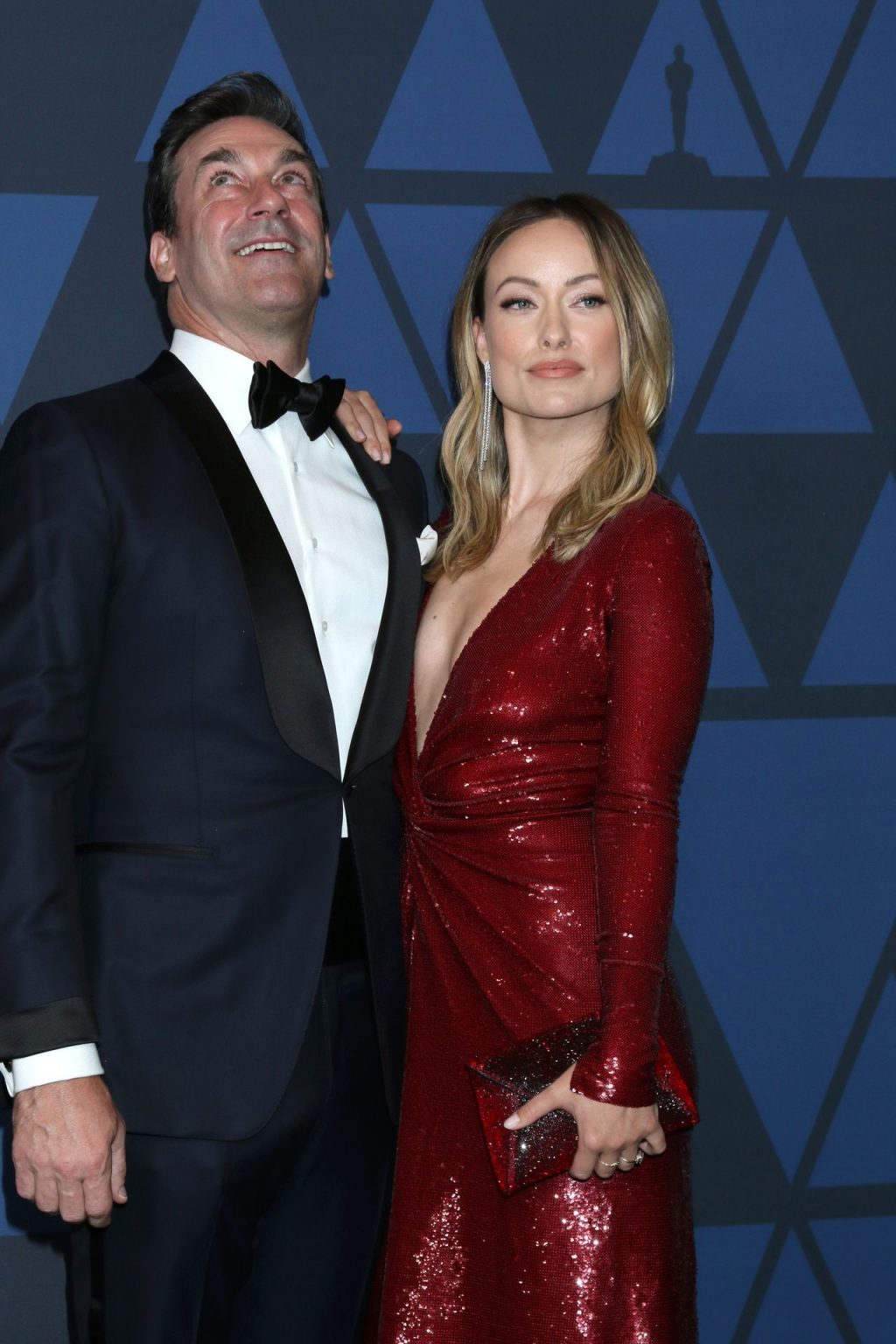 L’actrice Olivia Wilde éblouit dans une robe rouge moulante avec un décolleté plongeant en dînant avec des amis au Chateau Marmont à Hollywood, le 28/10/2019.